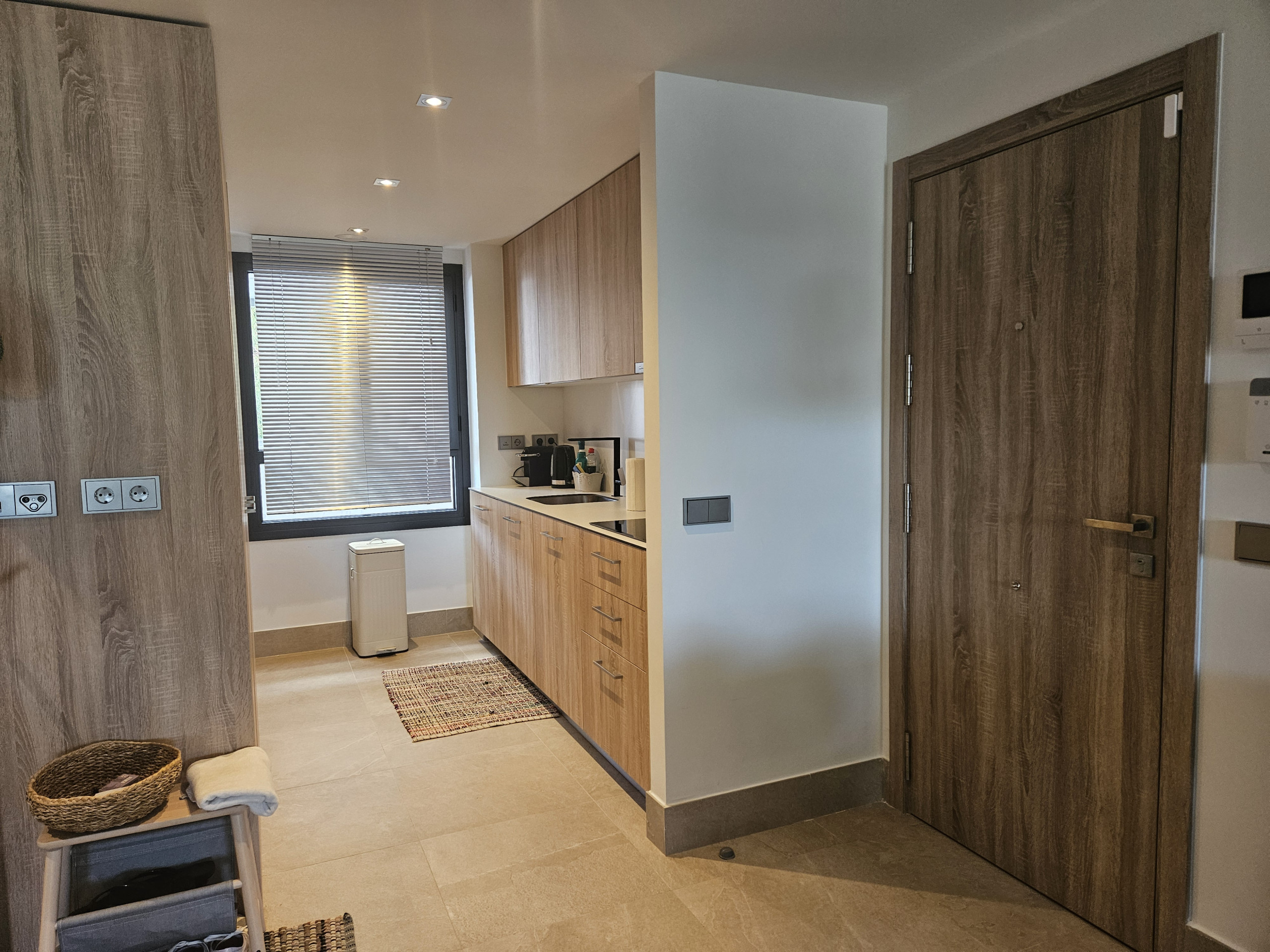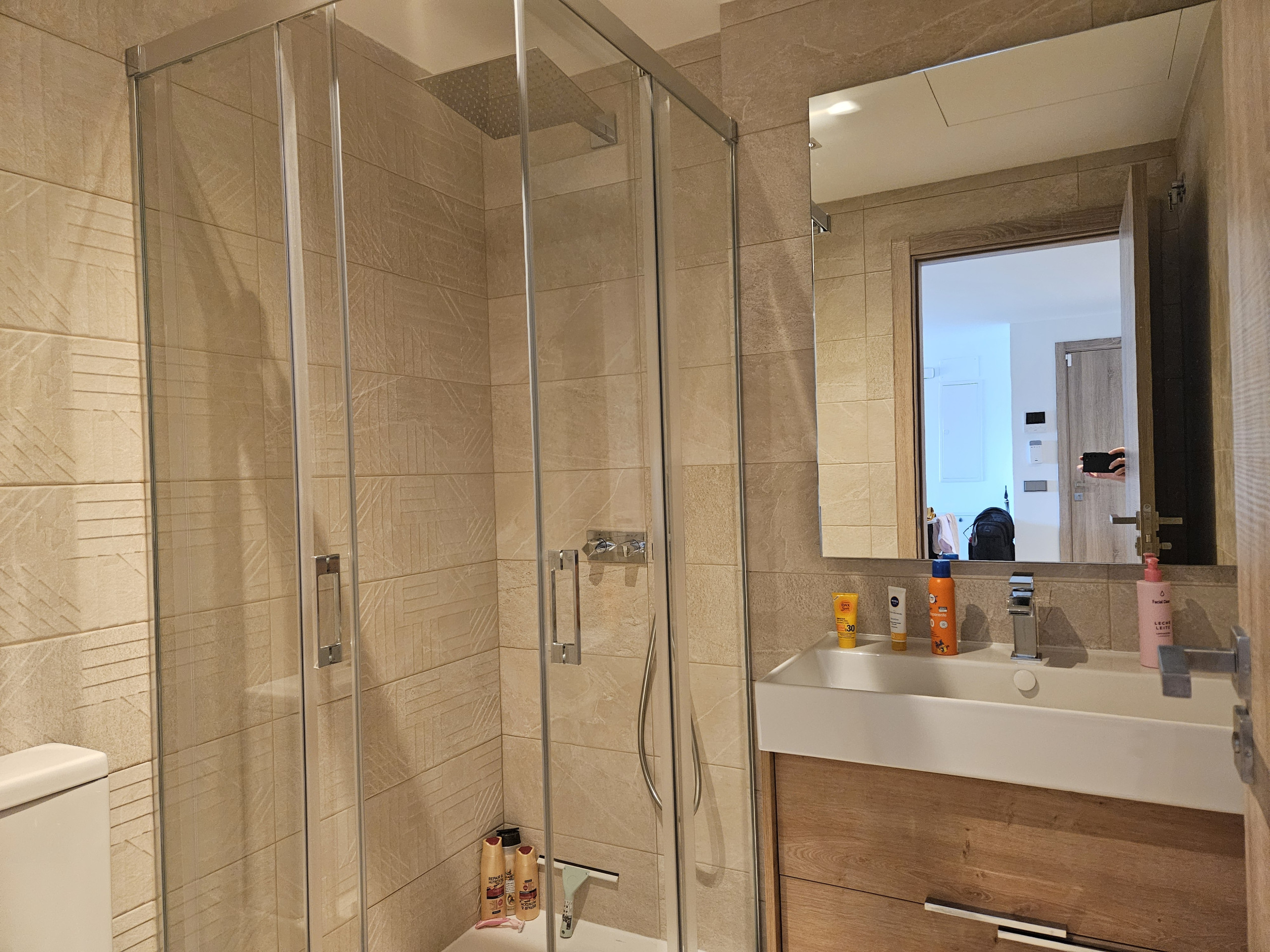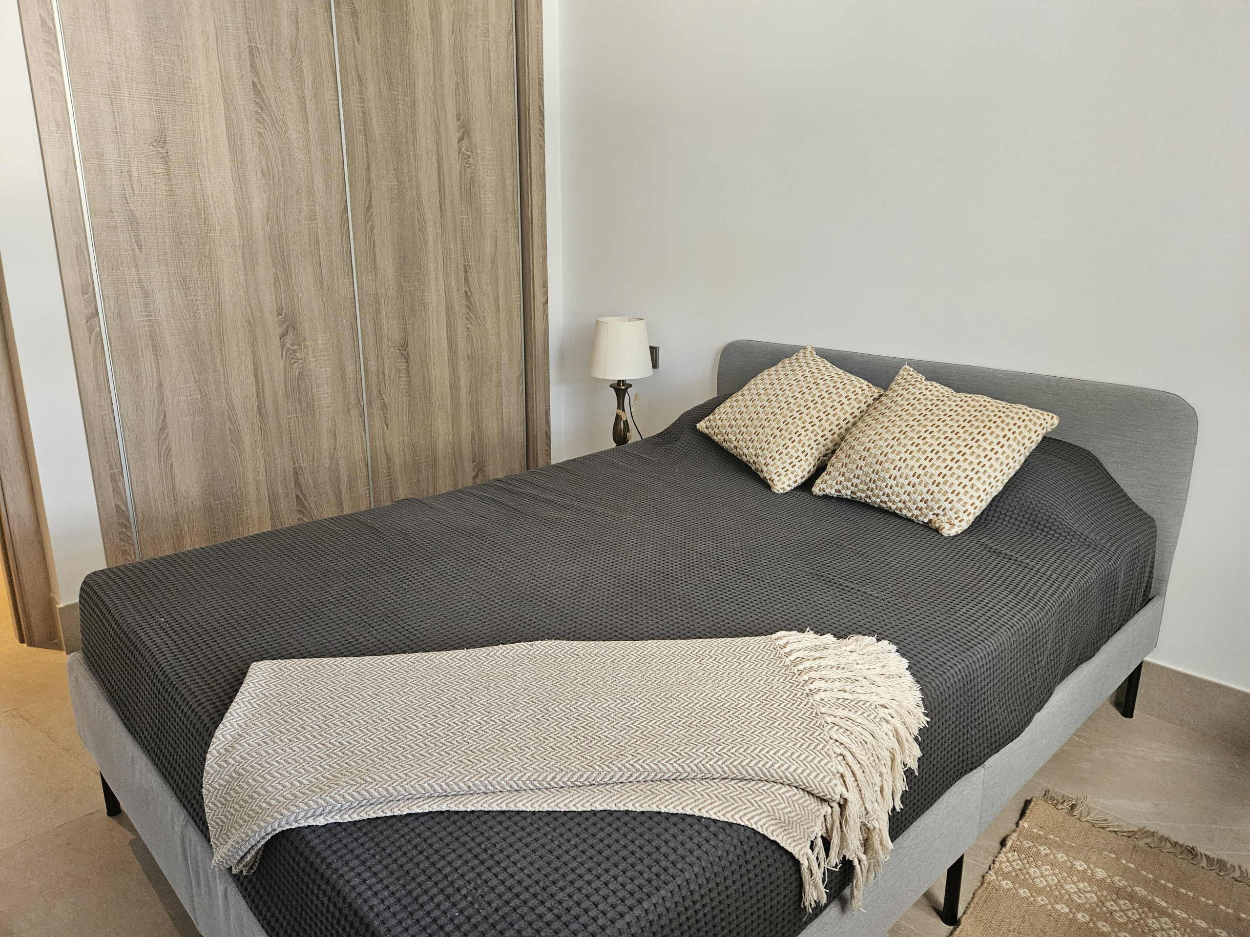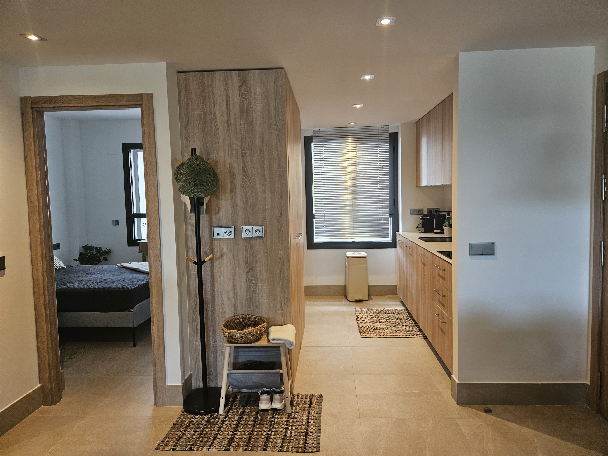 El interior de la propiedad incluye un salón y un área de comedor de buen tamaño, con sofá cama de cuero color crema, televisión de pantalla plana grande y acceso a la terraza principal. Hay una cocina moderna totalmente equipada y el dormitorio tiene una cama doble, con armarios empotrados y un baño completo con ducha grande, secador de pelo y planchas de pelo. La propiedad se beneficia de aire acondicionado frío y caliente en todo el espacio y WiFi gratuito. Dos plazas de aparcamiento en el garaje subterráneo seguro y se admiten mascotas.
