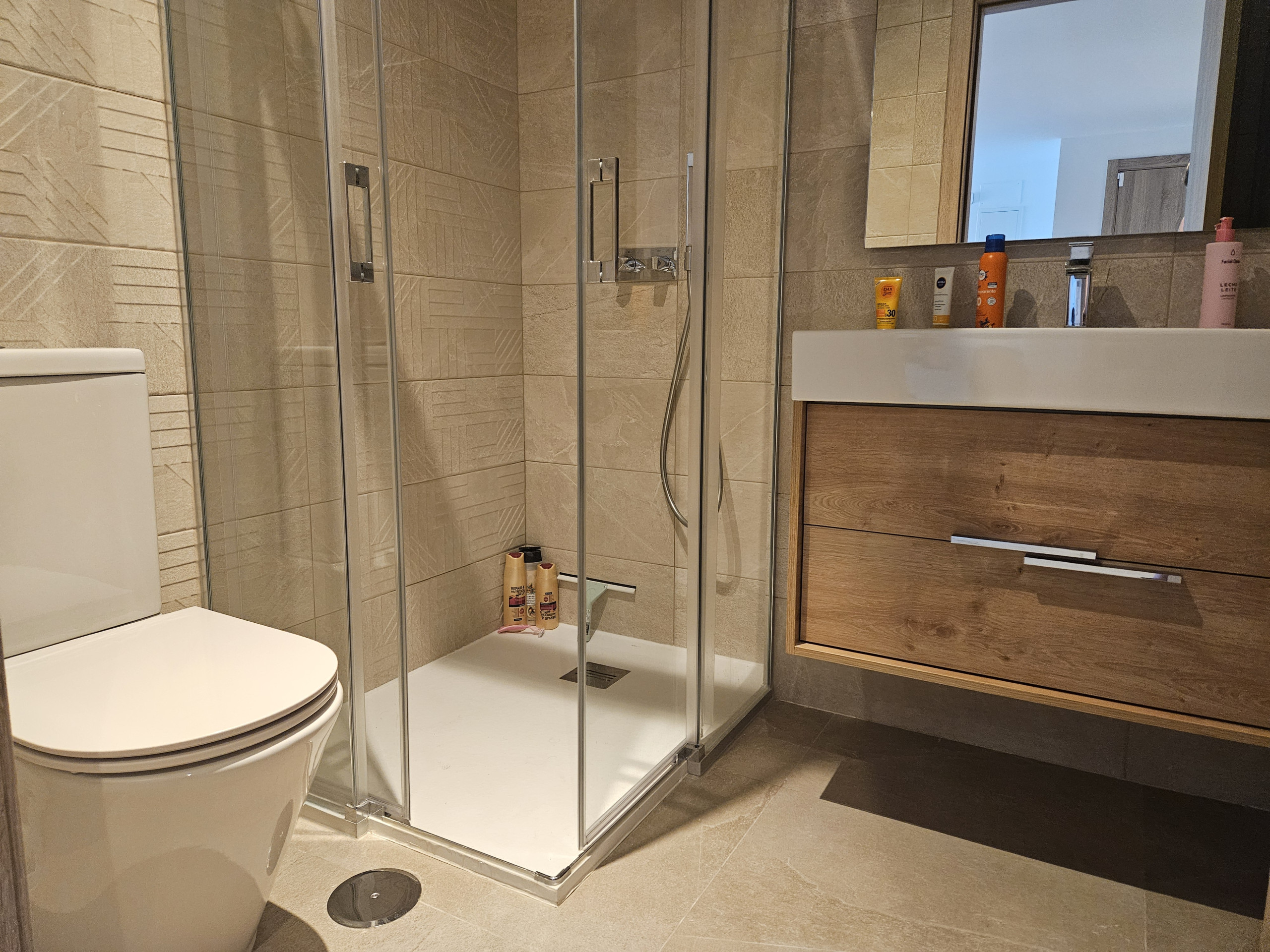 El dormitorio principal se beneficia de una cama de matrimonio, armarios empotrados, un cuarto de baño con ducha en suite y también tiene acceso a la terraza. El dormitorio de invitados ofrece dos camas individuales, armarios empotrados y tiene acceso al cuarto de baño de invitados.