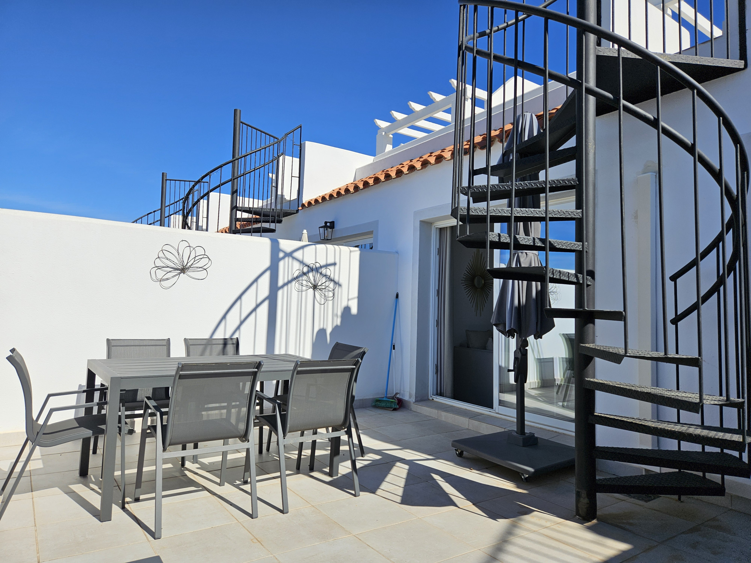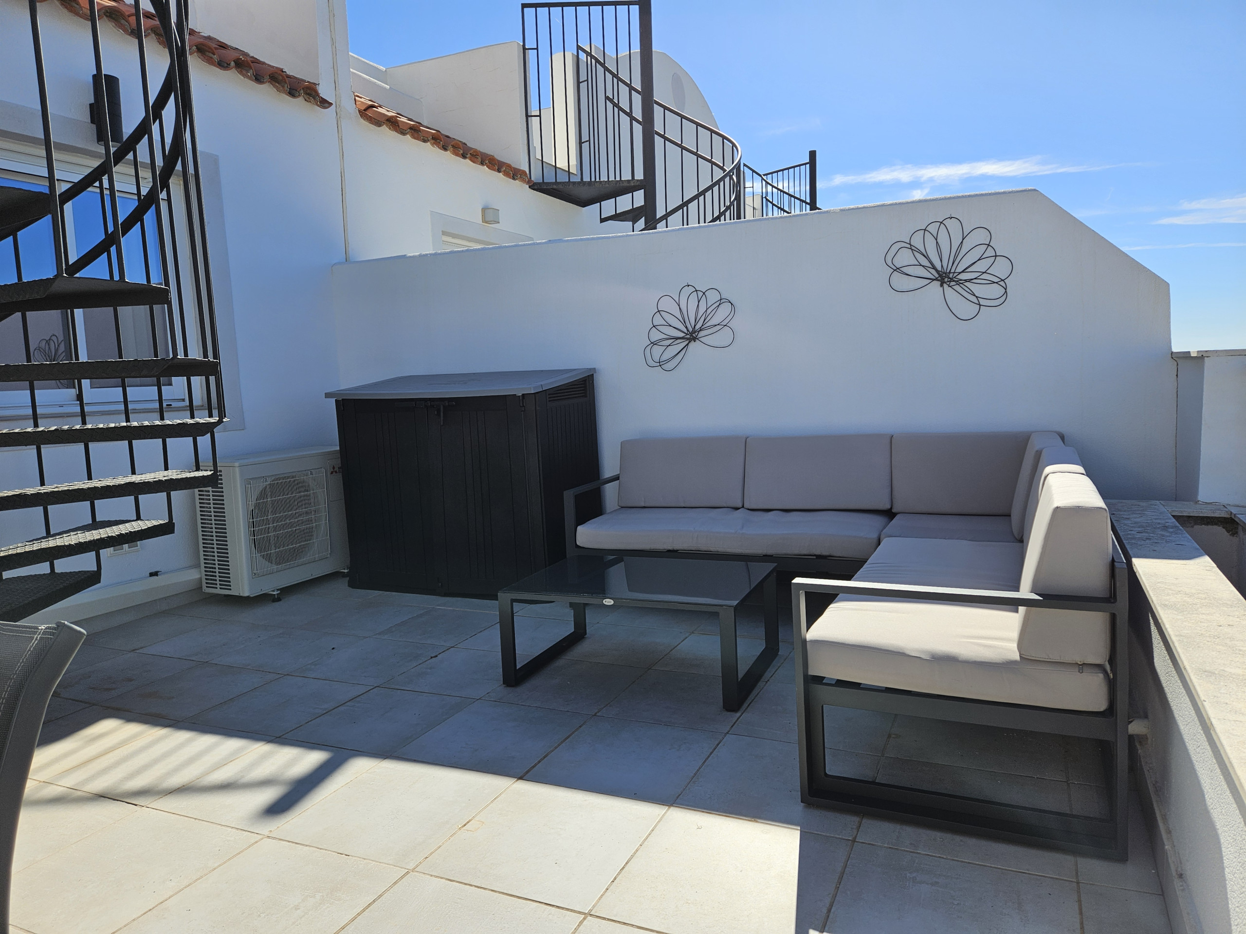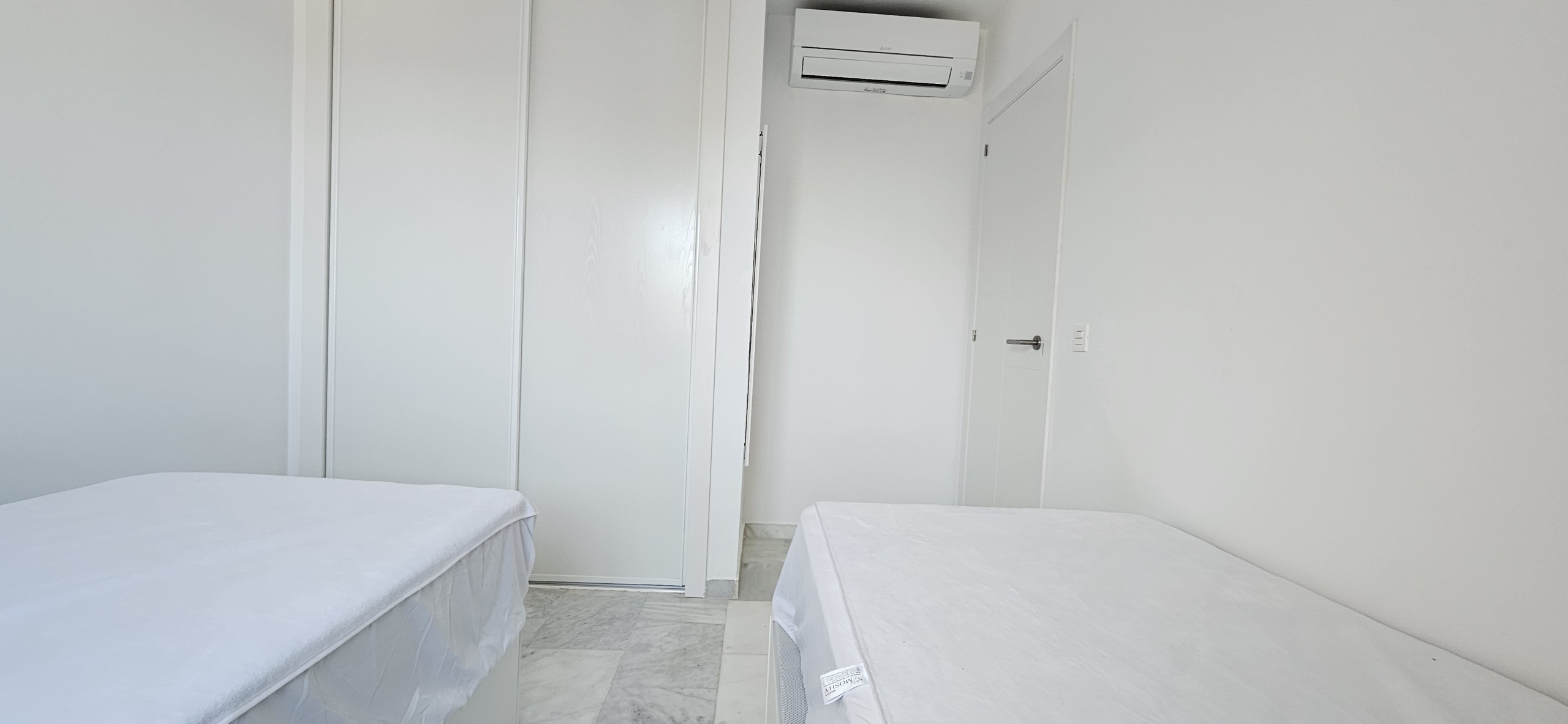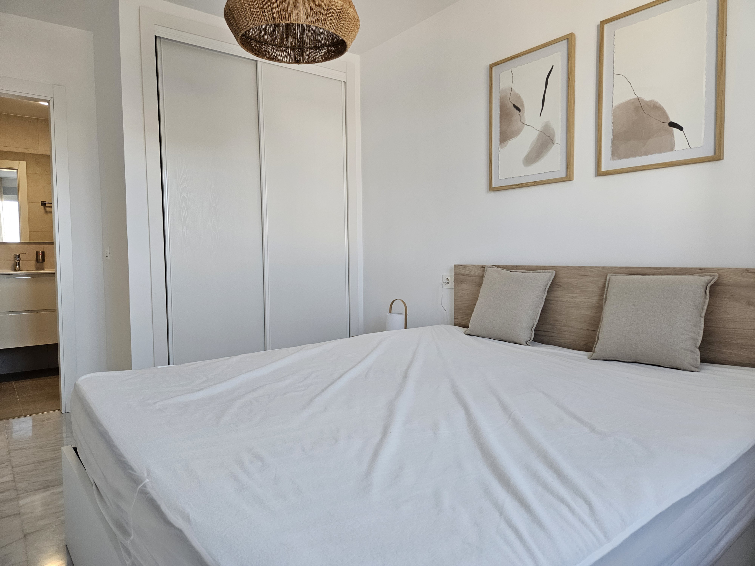 El dormitorio principal se beneficia de una cama de matrimonio, armarios empotrados, un cuarto de baño con ducha en suite y también tiene acceso a la terraza. El dormitorio de invitados ofrece dos camas individuales, armarios empotrados y tiene acceso al cuarto de baño de invitados.