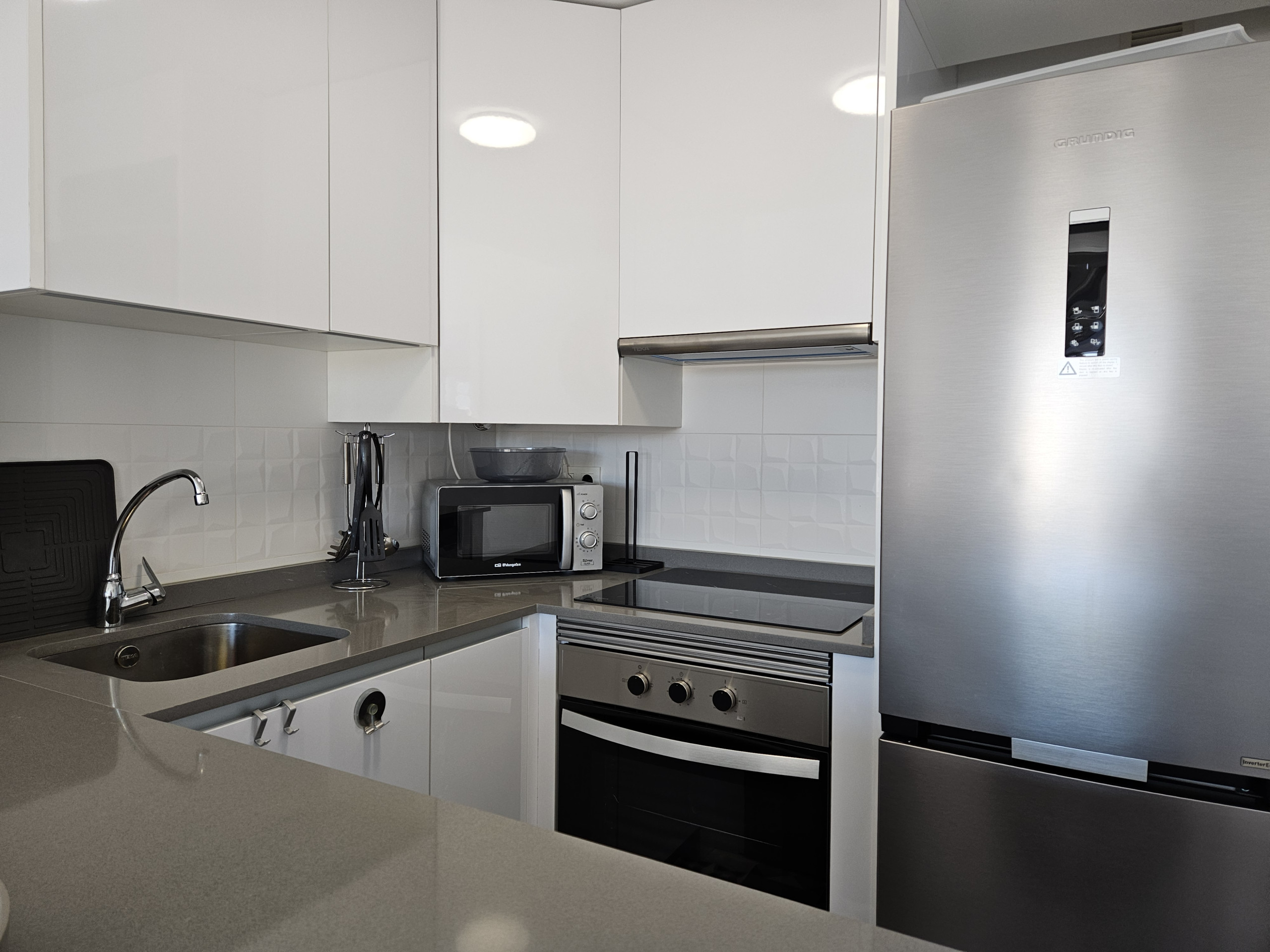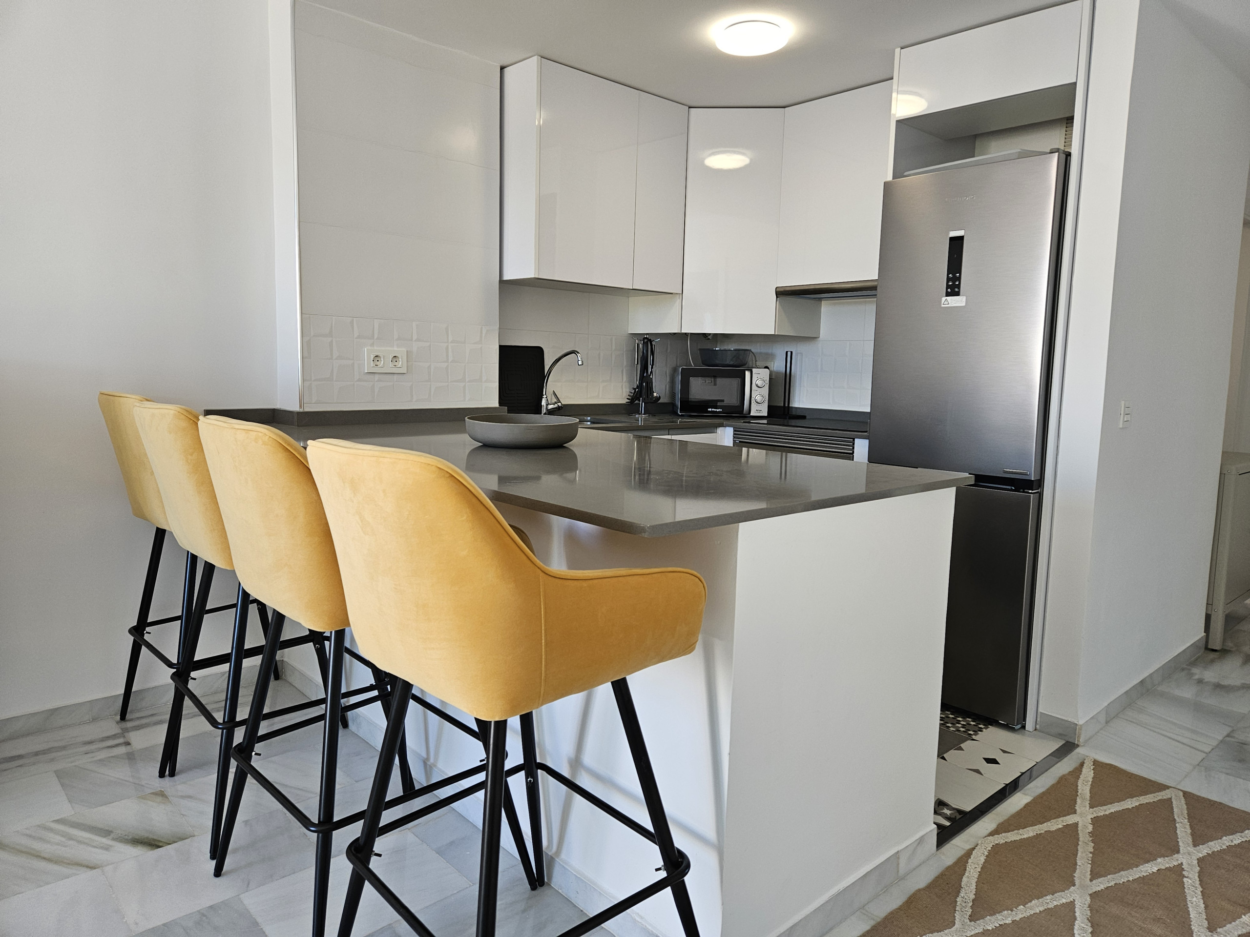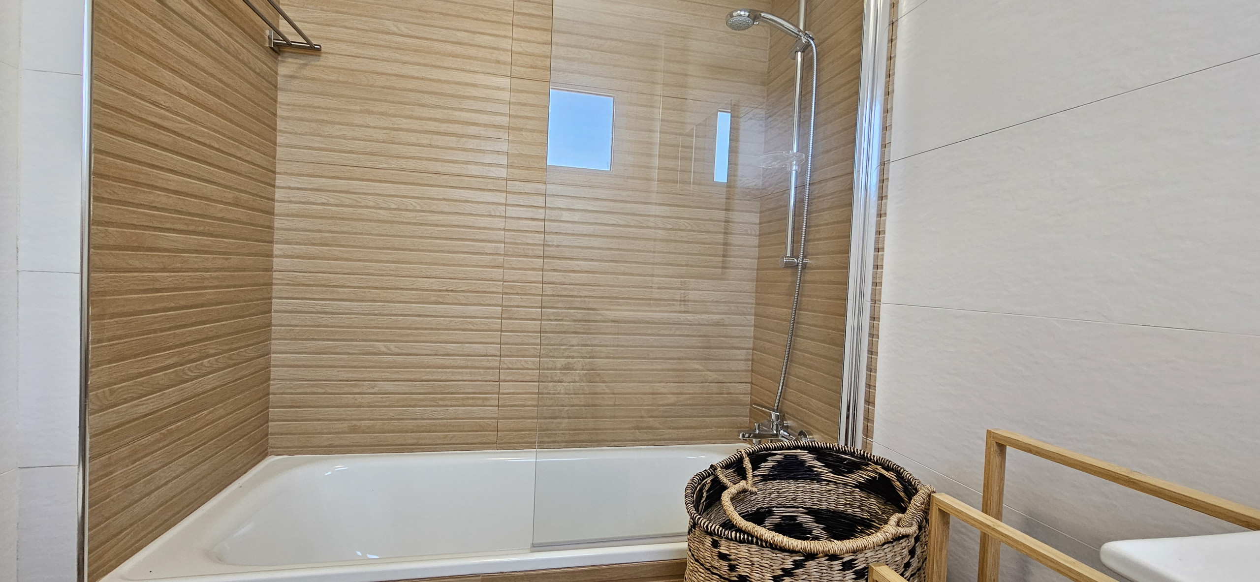 El interior de la propiedad incluye un salón y un área de comedor de buen tamaño, con sofá cama de cuero color crema, televisión de pantalla plana grande y acceso a la terraza principal. Hay una cocina moderna totalmente equipada y el dormitorio tiene una cama doble, con armarios empotrados y un baño completo con ducha grande, secador de pelo y planchas de pelo. La propiedad se beneficia de aire acondicionado frío y caliente en todo el espacio y WiFi gratuito. Dos plazas de aparcamiento en el garaje subterráneo seguro y se admiten mascotas.