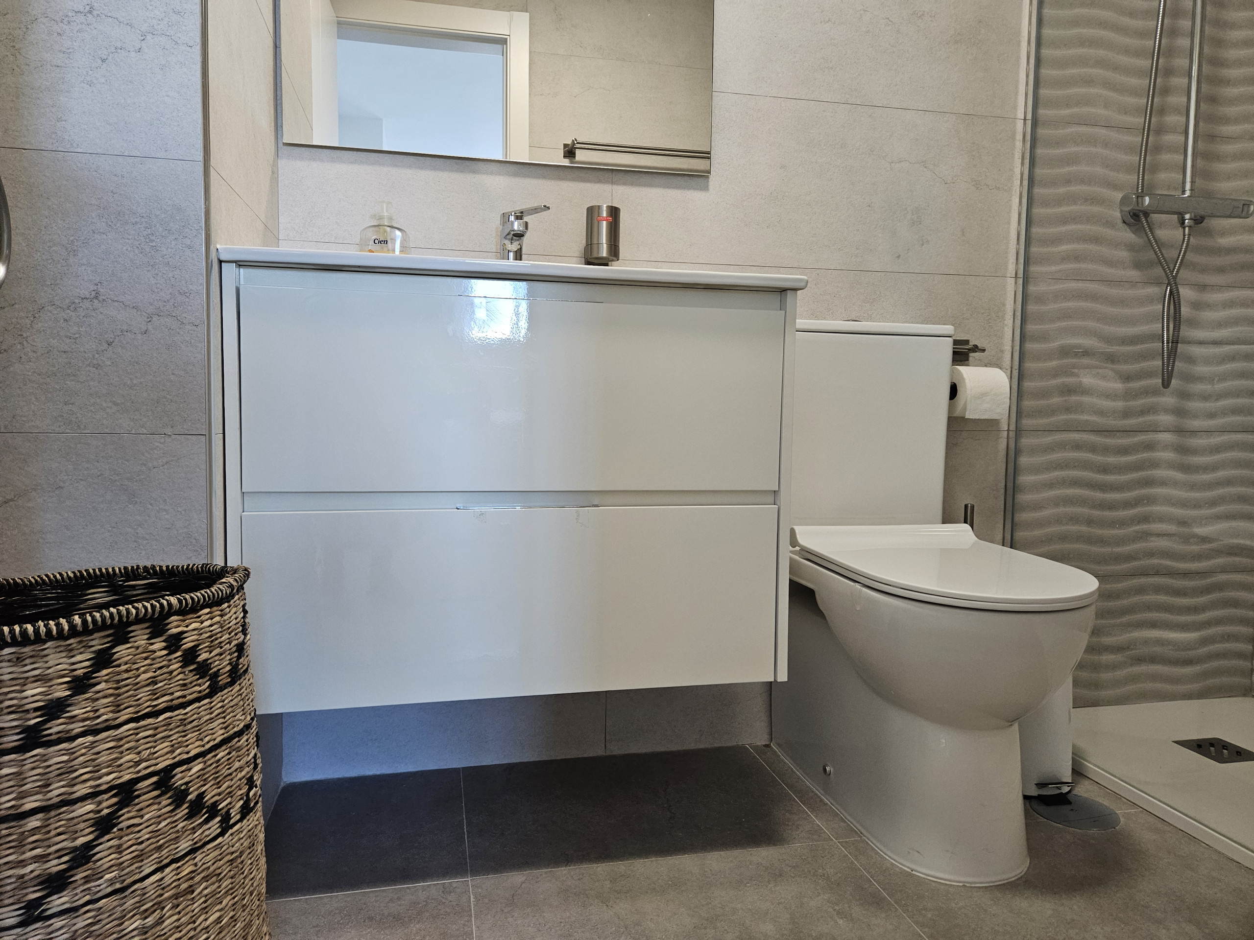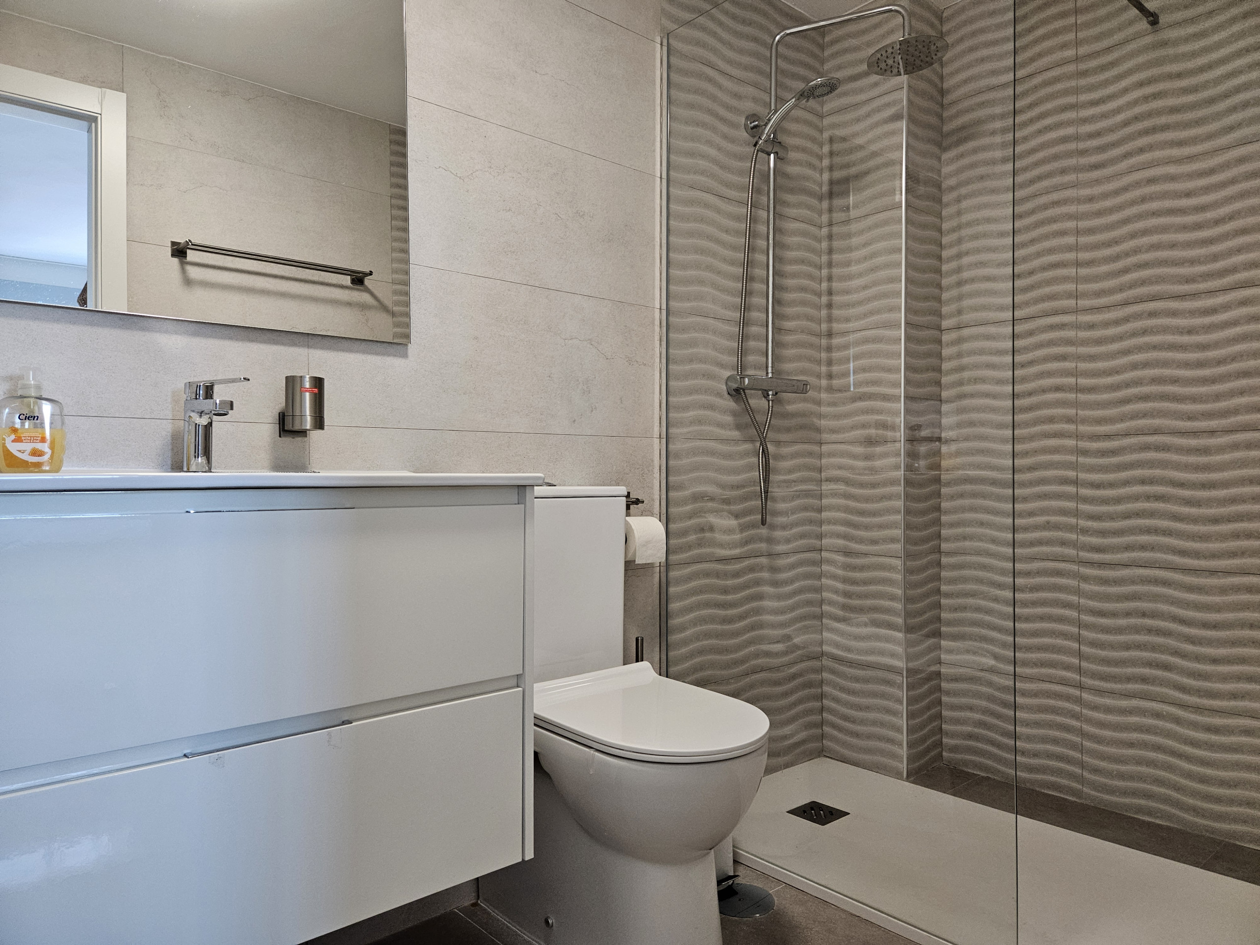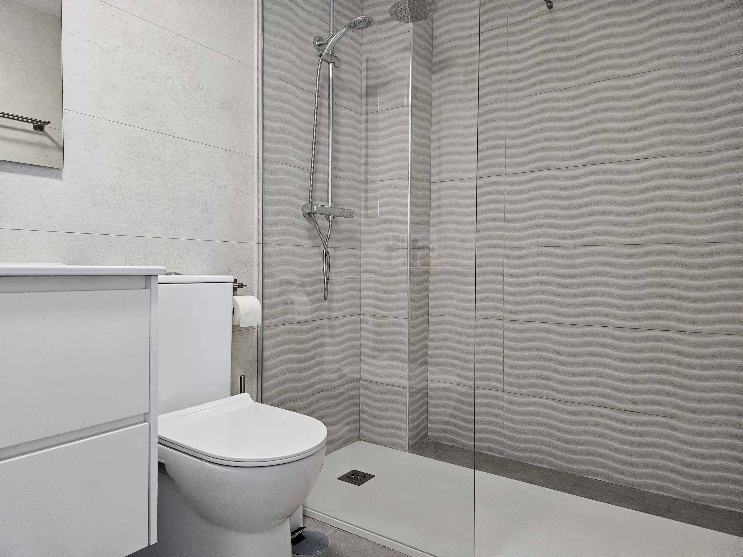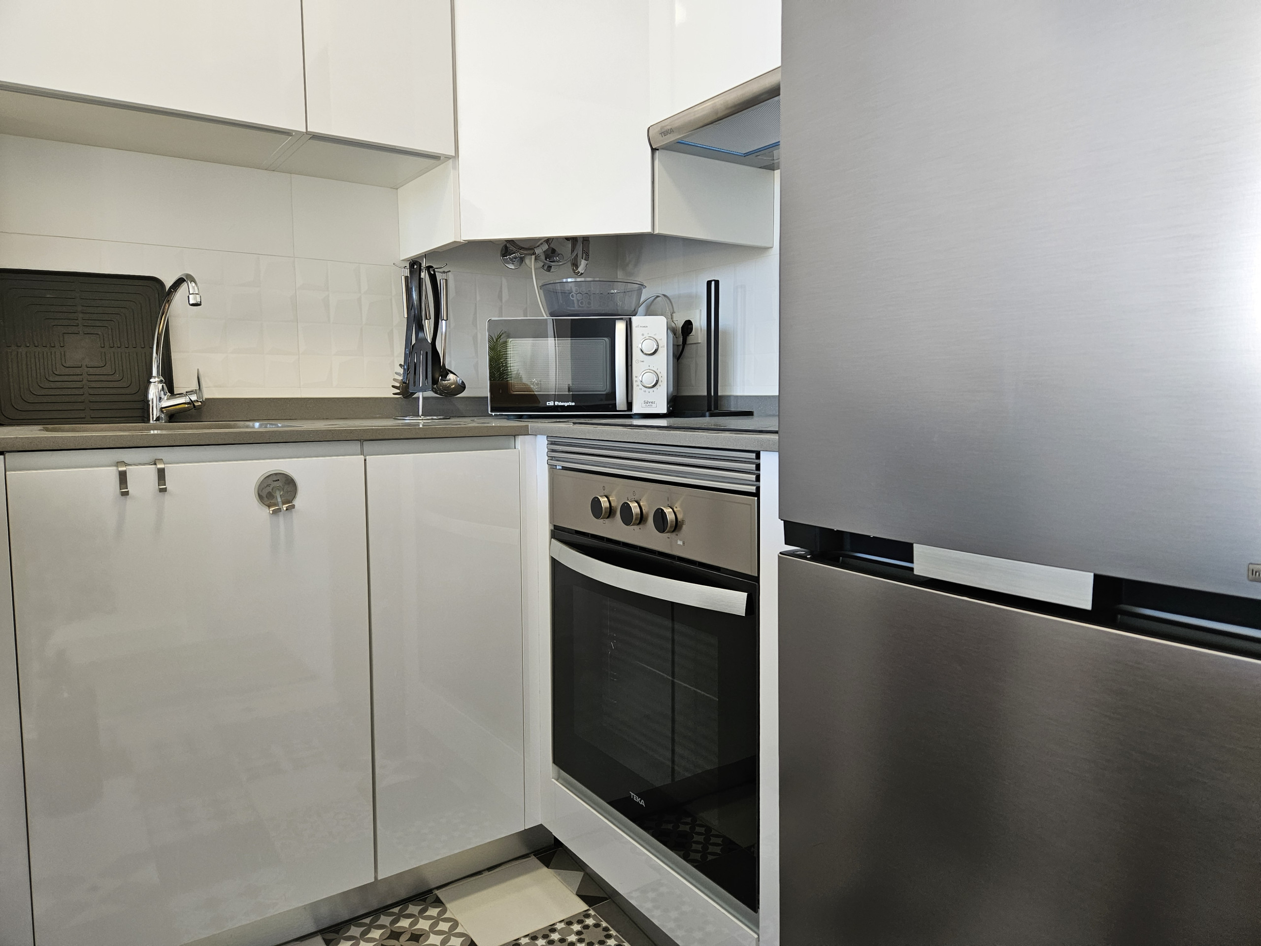 El interior de la propiedad incluye un salón y un área de comedor de buen tamaño, con sofá cama de cuero color crema, televisión de pantalla plana grande y acceso a la terraza principal. Hay una cocina moderna totalmente equipada y el dormitorio tiene una cama doble, con armarios empotrados y un baño completo con ducha grande, secador de pelo y planchas de pelo. La propiedad se beneficia de aire acondicionado frío y caliente en todo el espacio y WiFi gratuito. Dos plazas de aparcamiento en el garaje subterráneo seguro y se admiten mascotas.