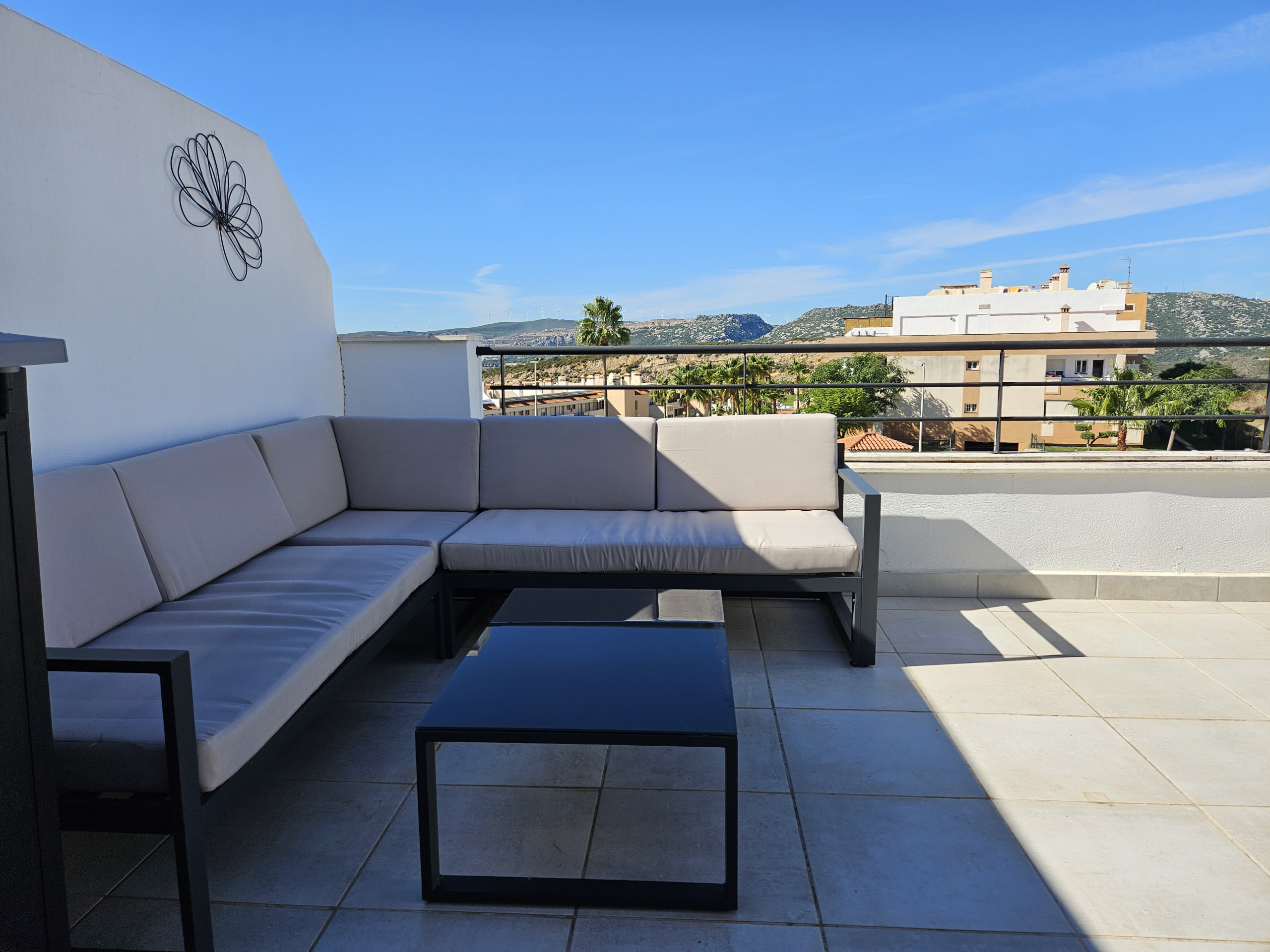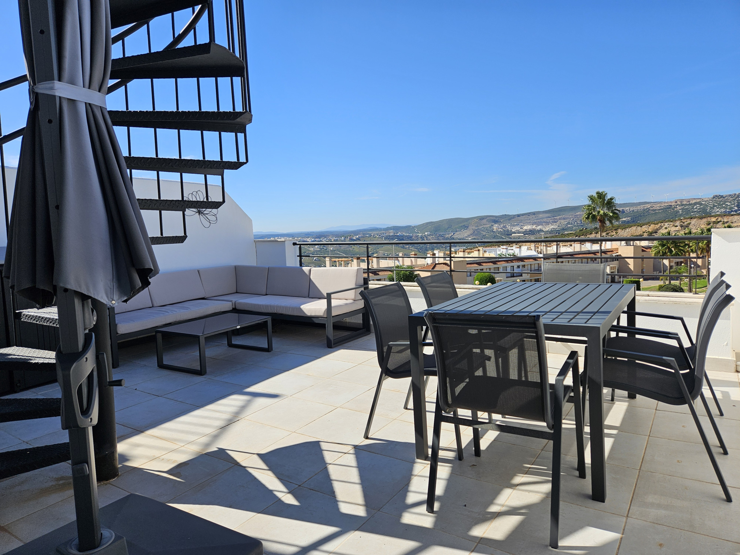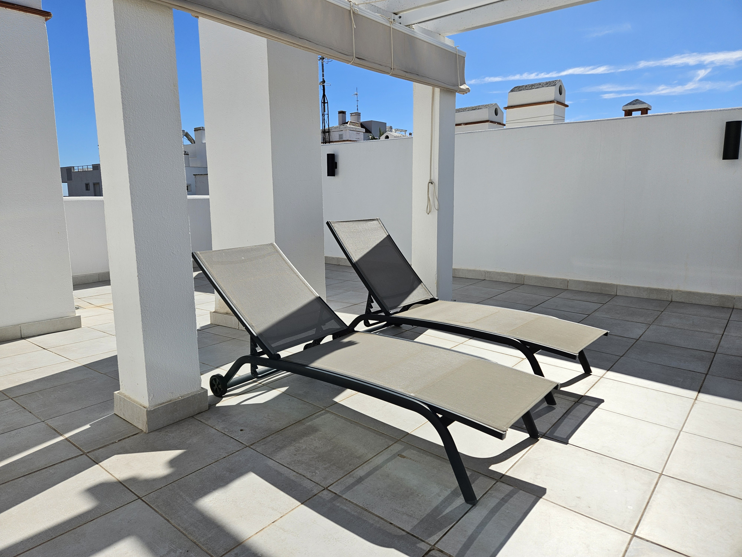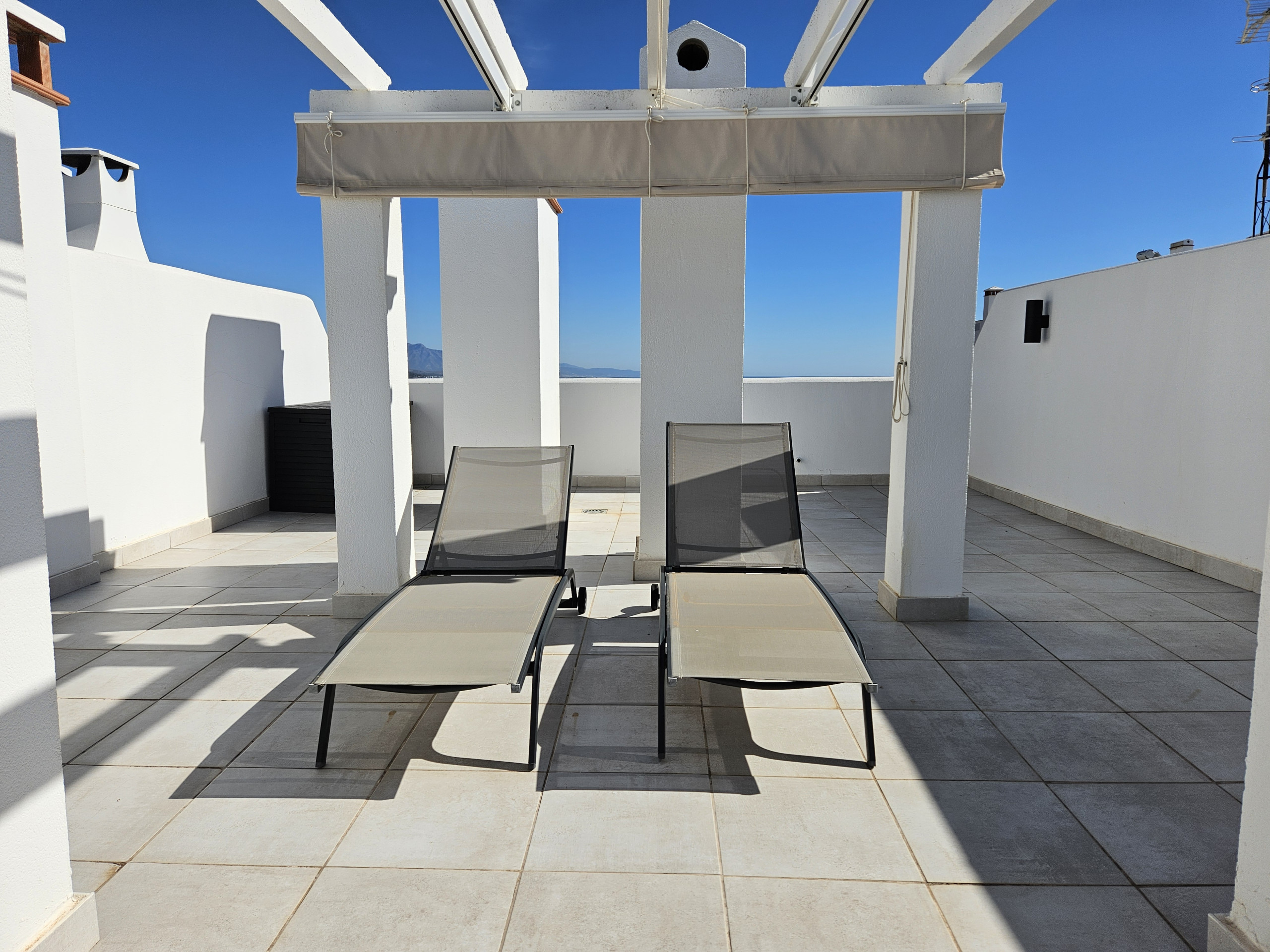 Este nuevo ático de 1 dormitorio es impresionante. Situado justo en la playa de Casares, este espacioso ático tiene unos muebles preciosos, una terraza enorme y una terraza adicional en la azotea con zona de asientos y comedor. La terraza inferior tiene unas vistas increíbles hacia arriba y hacia abajo de la costa, así como de la piscina y los jardines, y hasta África y Gibraltar. Muebles de terraza preciosos que incluyen zona de comedor y asientos, así como una gran barbacoa empotrada e incluso un jacuzzi elevado donde puedes disfrutar de un cóctel con vistas a la costa.