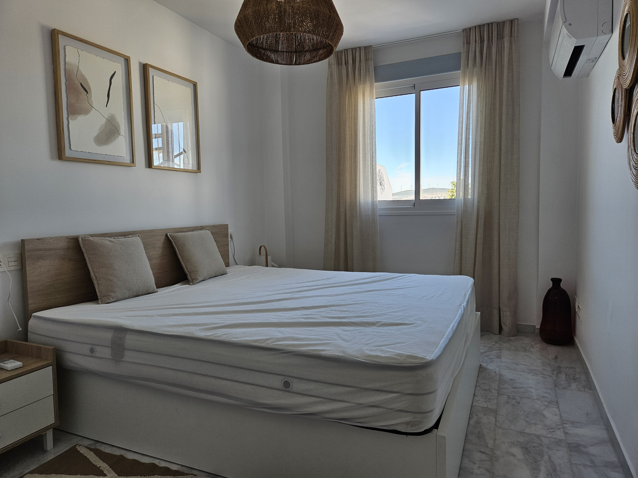 Este elegante apartamento de planta baja de 2 dormitorios en The Terrazas de Cortesin-Seaviews, en el Complejo de Golf Finca Cortesin, es una nueva Promoción Inmobiliaria de apartamentos, áticos, adosados y villas, ubicada en una colina dentro de lo que se considera uno de los mejores Complejos de Golf de Europa. A poco más de 3 km encontrará la playa más cercana, chiringuitos y restaurantes. El complejo de golf Finca Cortesin también ofrece una selección de tres restaurantes además de un bar en el Club de Golf. El apartamento ofrece WiFi gratuita, aire acondicionado con ventilación caliente y fría y una plaza de aparcamiento en el estacionamiento subterráneo del complejo cerrado con vigilancia las 24 horas. También hay acceso a la piscina comunitaria.
