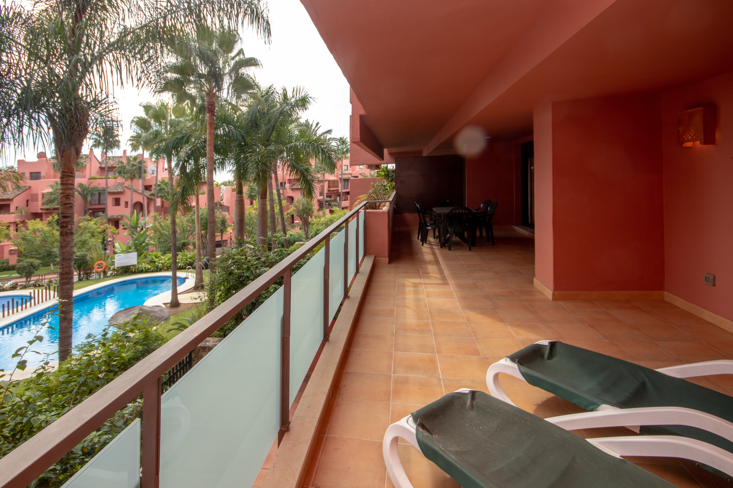 › Estepona › Apartamento de dos dormitorios en primera planta con vistas a la piscina