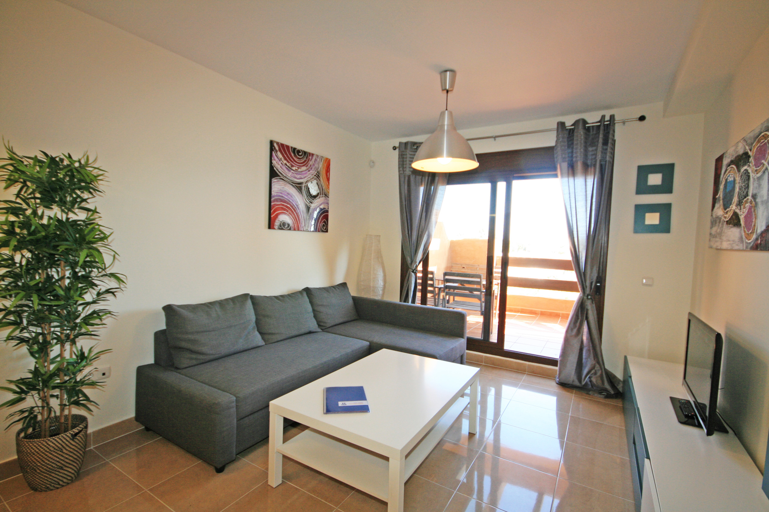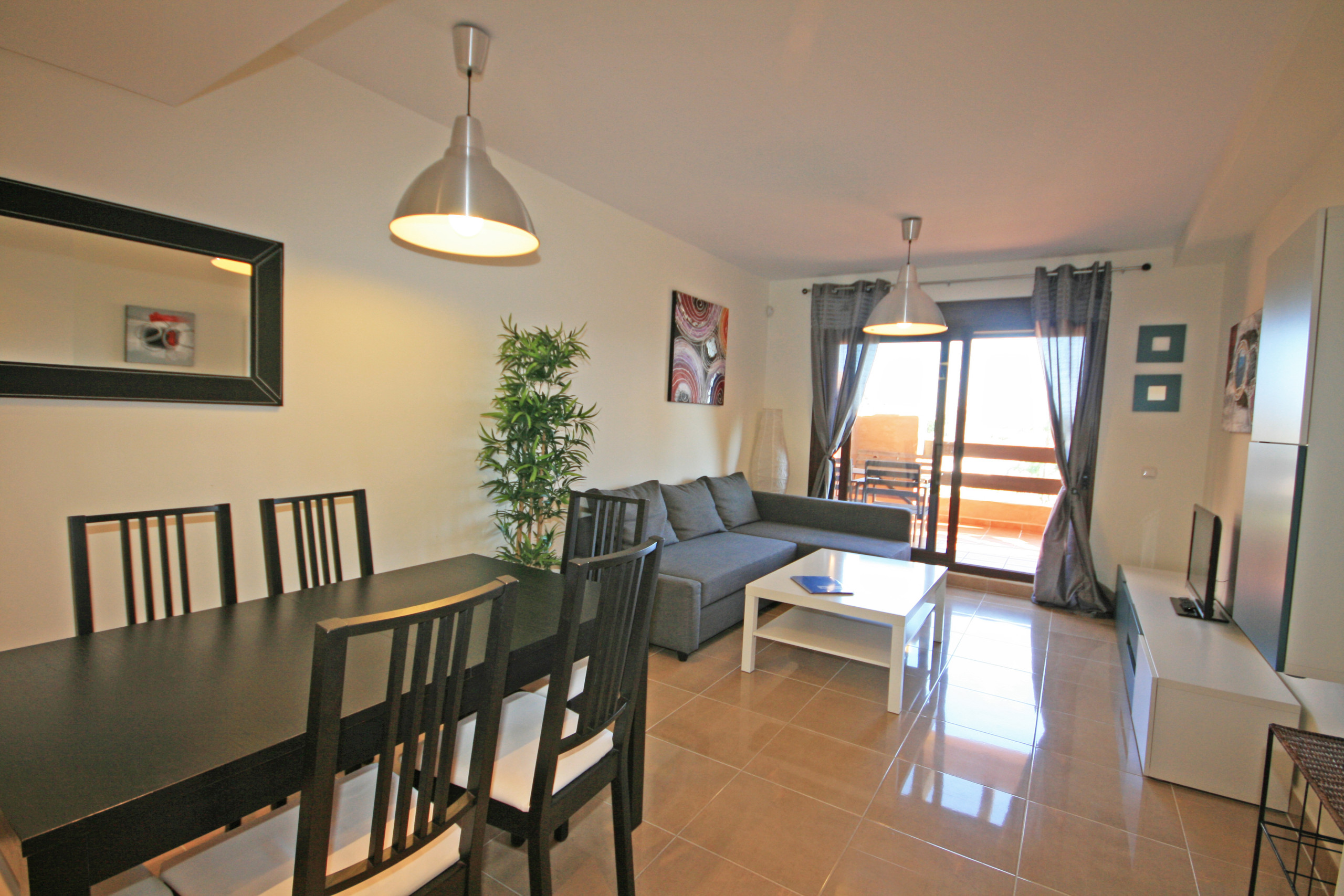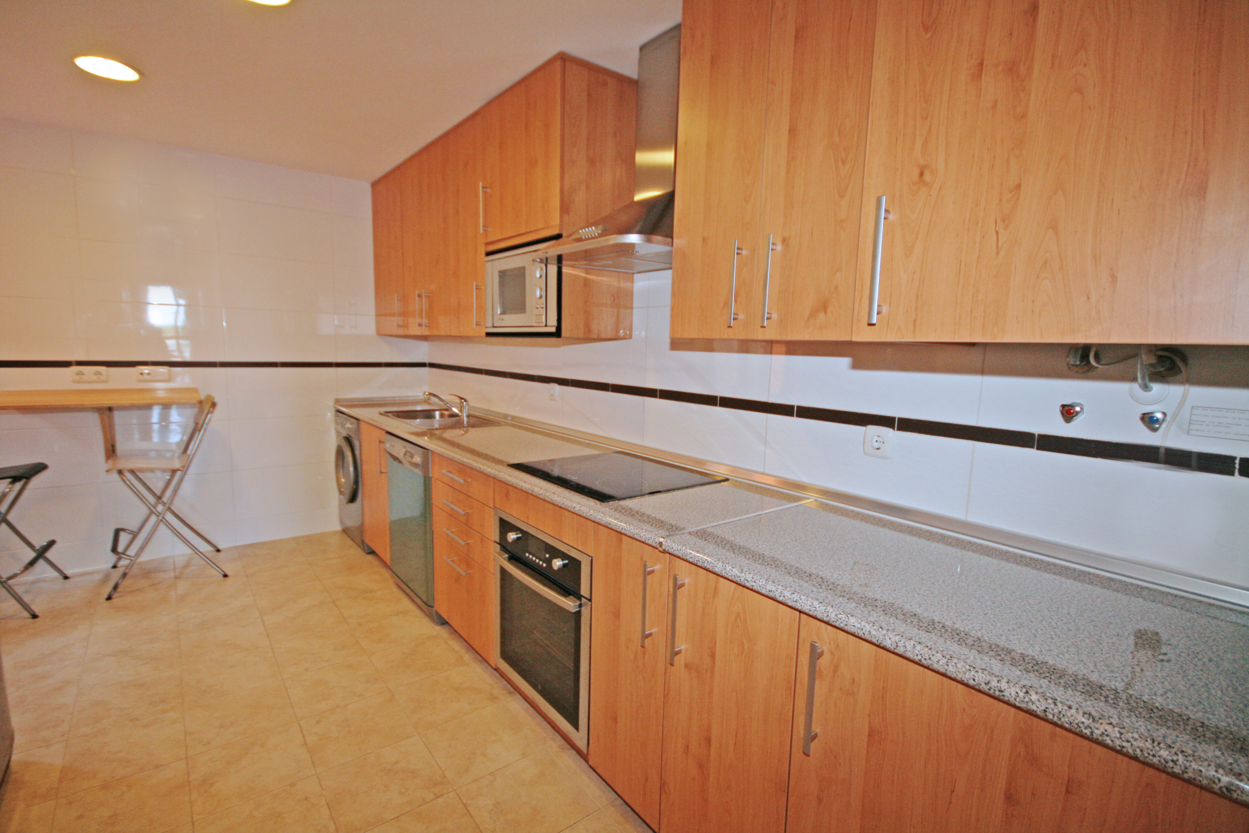 El apartamento está ubicado en la tercera planta y consta de un salón-comedor amueblado con 2 sofás, mesa de comedor y sillas, y un televisor. El acceso a la terraza del salón orientada al sur y a la terraza en la azotea se realiza a través del salón. La cocina, compacta y moderna, está completamente equipada.