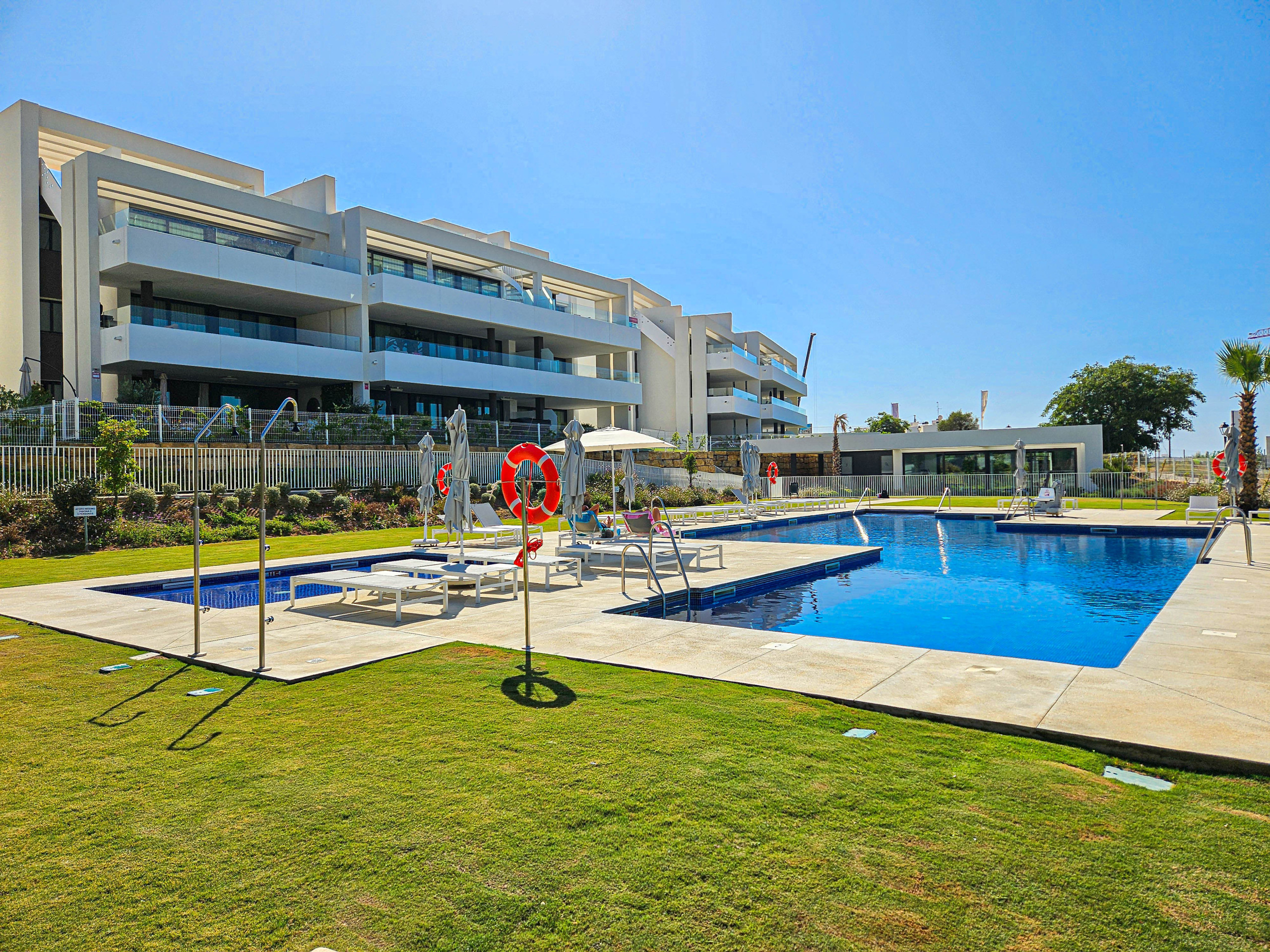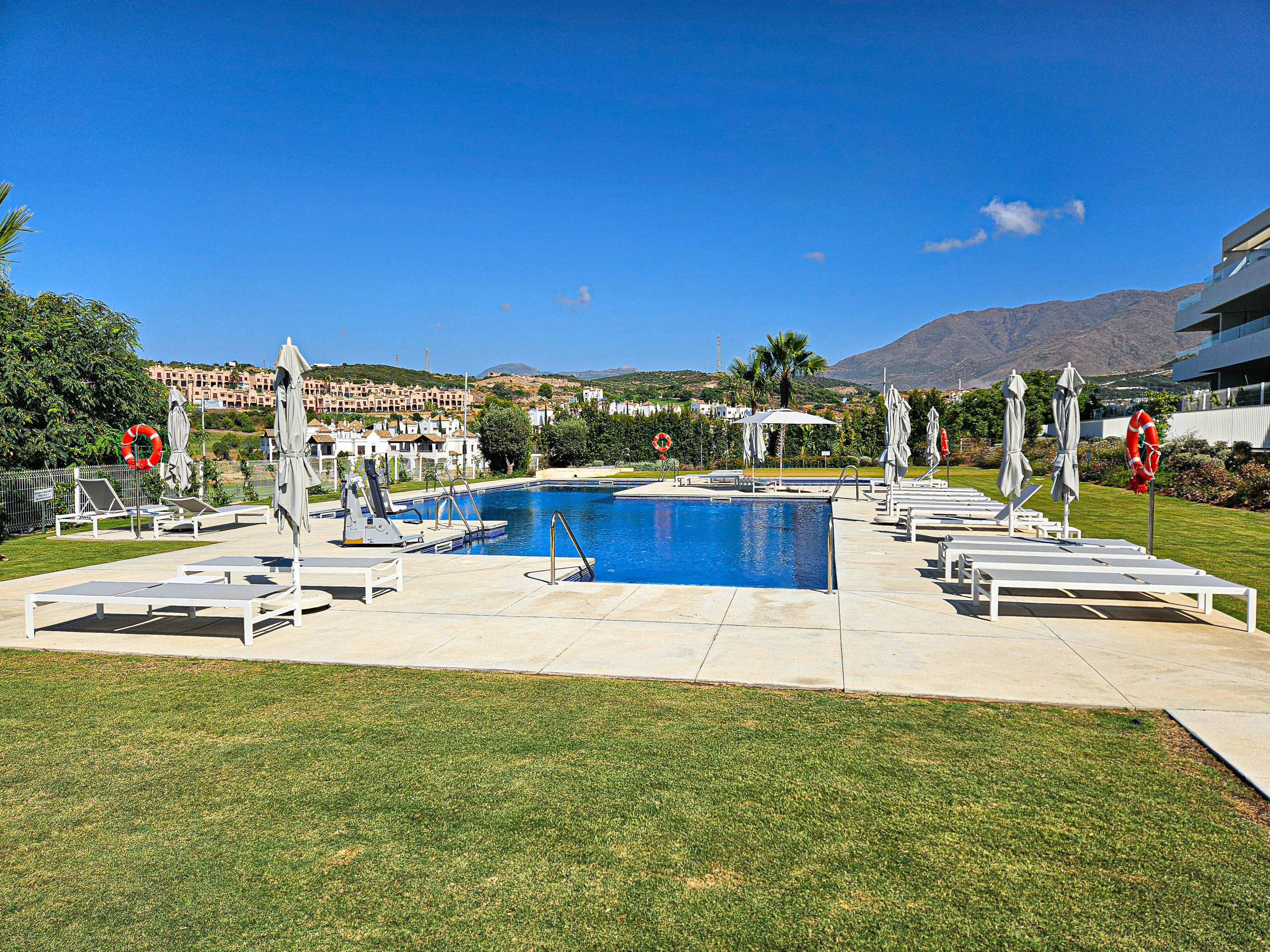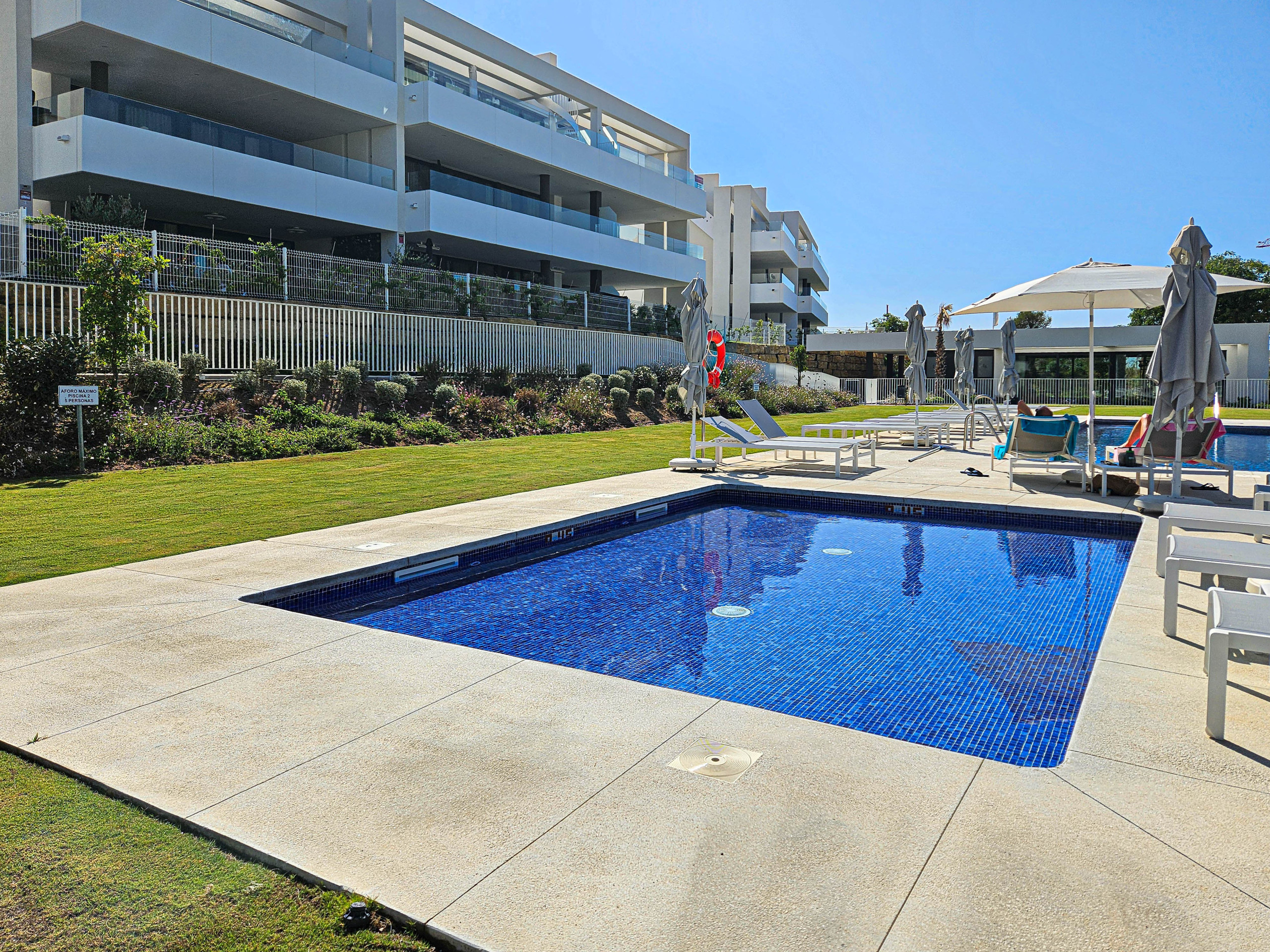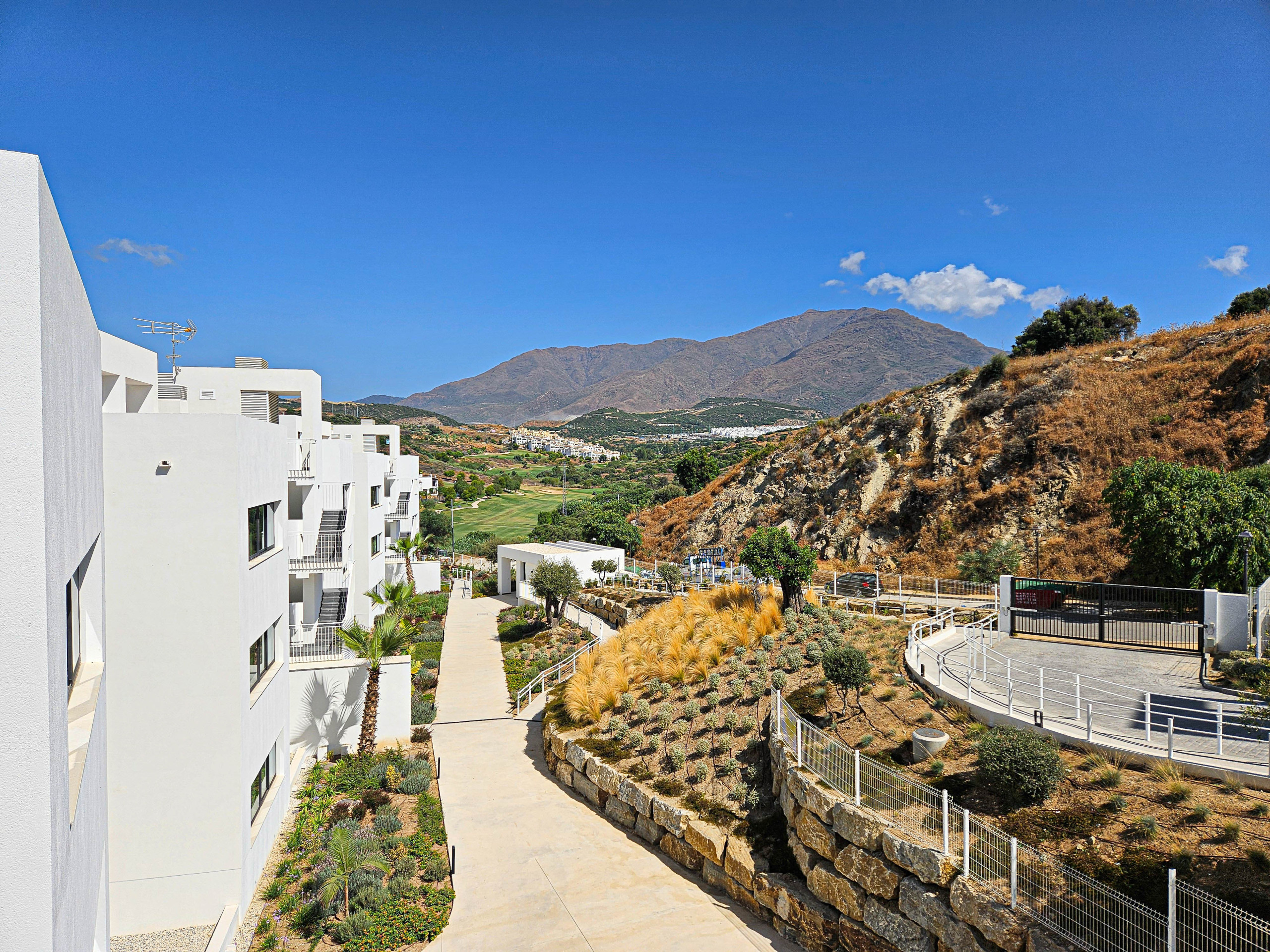 Este ático moderno de dos dormitorios está ubicado en el complejo de nueva construcción de Azahar de Estepona. El complejo cerrado y seguro ofrece una piscina comunitaria y un gimnasio, y está ubicado a 1,5 km de la playa y a 2,5 km del campo de golf más cercano. Hay un supermercado grande y un restaurante a solo 900 m del complejo. El complejo cuenta con estacionamiento subterráneo seguro con dos plazas de aparcamiento disponibles. Hay aire acondicionado con ventilación de frío y calor, WIFI gratuito y cortinas opacas en los dormitorios.