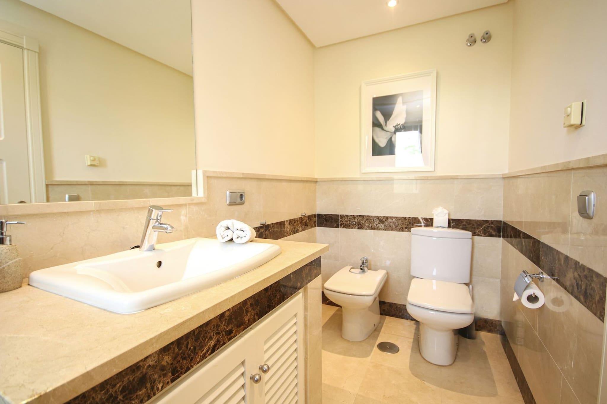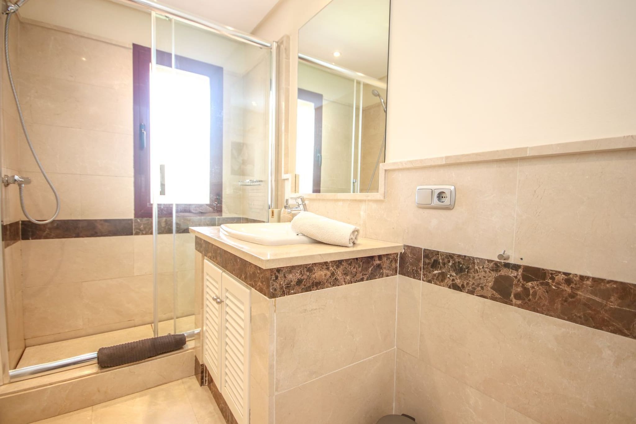 El dormitorio principal se beneficia de unas fantásticas vistas al mar, una cama de matrimonio extragrande, armarios empotrados y un cuarto de baño en suite con bañera y ducha. Este dormitorio tiene acceso a la terraza. El dormitorio de invitados ofrece 2 camas individuales, armarios empotrados y tiene acceso al cuarto de baño de invitados.