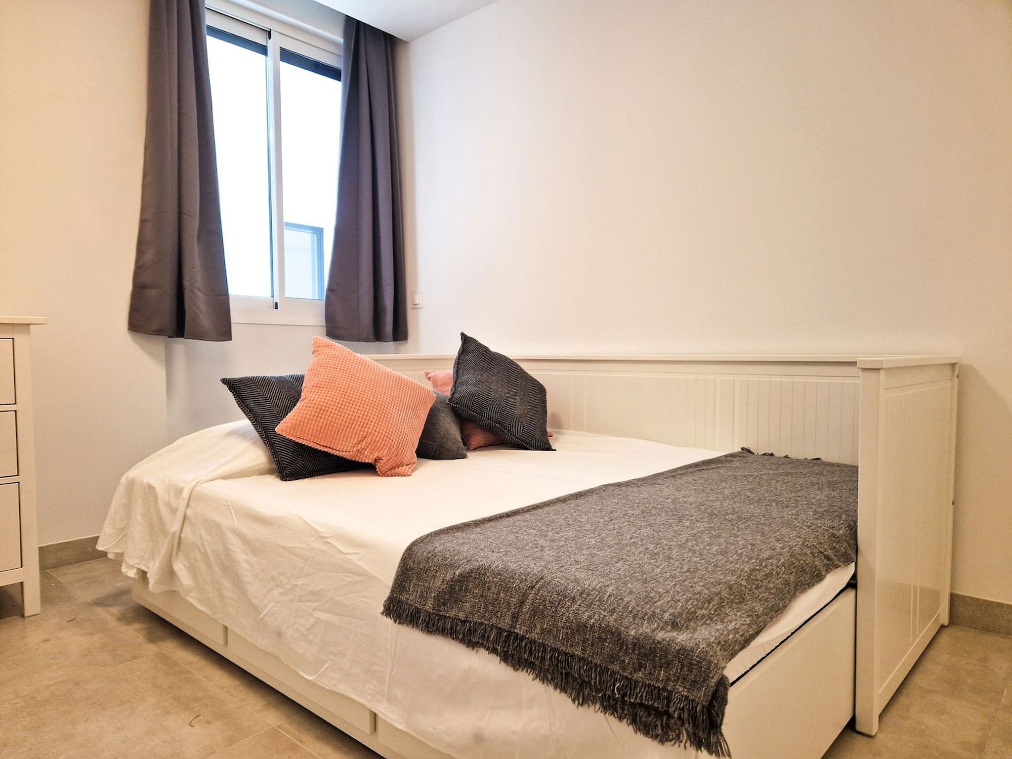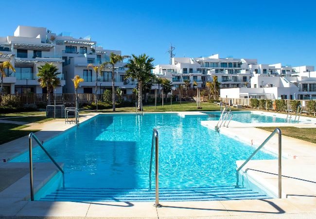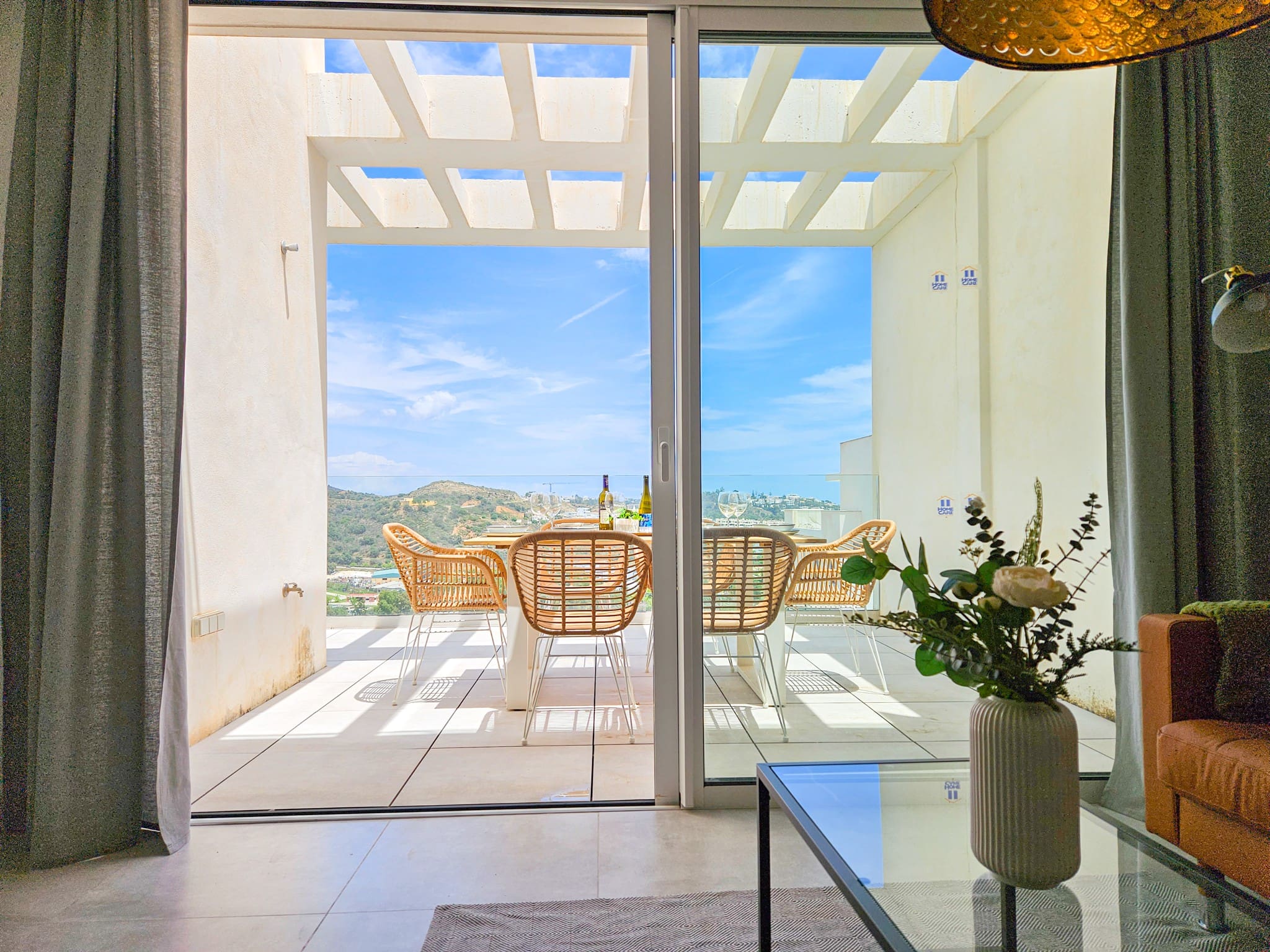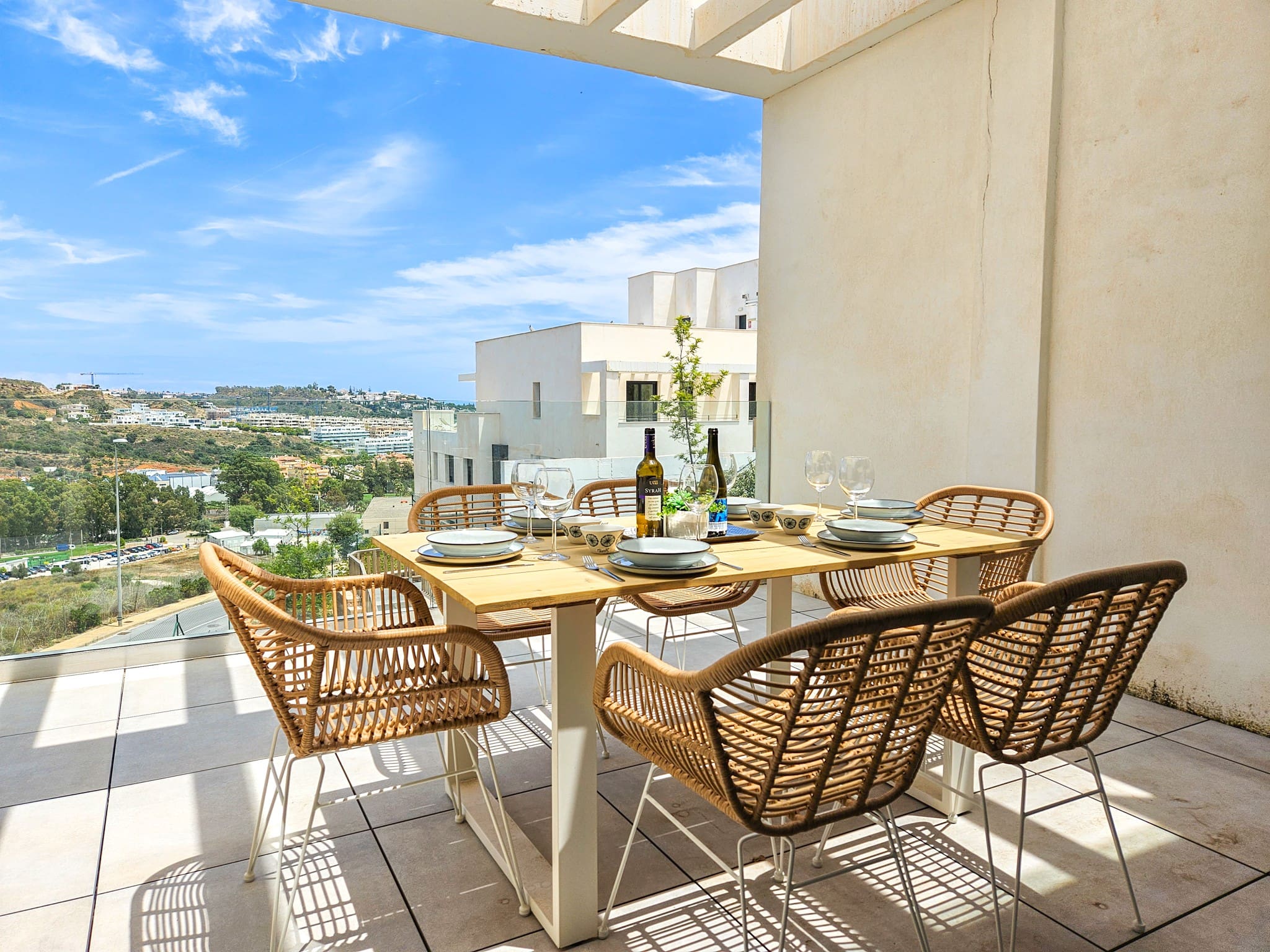 Este nuevo y moderno apartamento de tres dormitorios está ubicado en el hermoso y seguro complejo de Casa Banderas, La Cala de Mijas. El complejo cerrado cuenta con tres grandes piscinas comunitarias exteriores (con elevador para sillas de ruedas para entrar a la piscina), una de ellas ubicada directamente frente al apartamento. Hay una pista de pádel, zona infantil, gimnasio interior y máquinas deportivas exteriores. Para usar la pista de pádel o el gimnasio, por favor reserve con el conserje. El apartamento ofrece plaza de aparcamiento, aire acondicionado con ventilación frío-calor y WIFI gratuito. El complejo está a 1,5 km de la playa y de las instalaciones del pueblo. El supermercado más cercano está a 1 km.