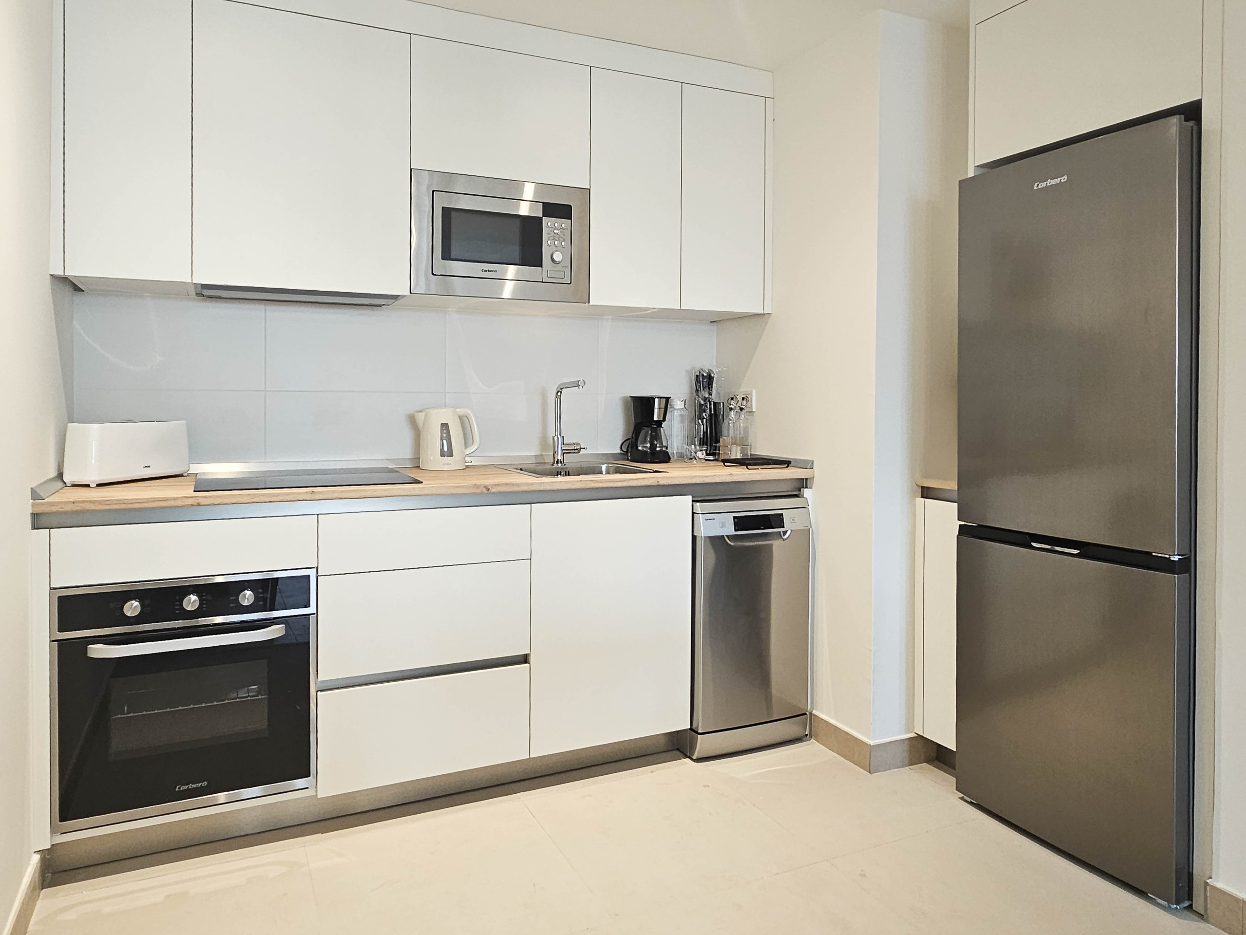 El apartamento está ubicado en la planta 14 y está distribuido en un solo nivel. El espacio de estar de planta abierta ofrece una cocina bien equipada, un área de comedor con asientos para hasta cuatro personas. La zona de estar está amueblada con un sofá, que se puede desplegar para hacer dos camas individuales o una cama doble (previa solicitud). También hay un televisor inteligente de 55 pulgadas y cortinas opacas.