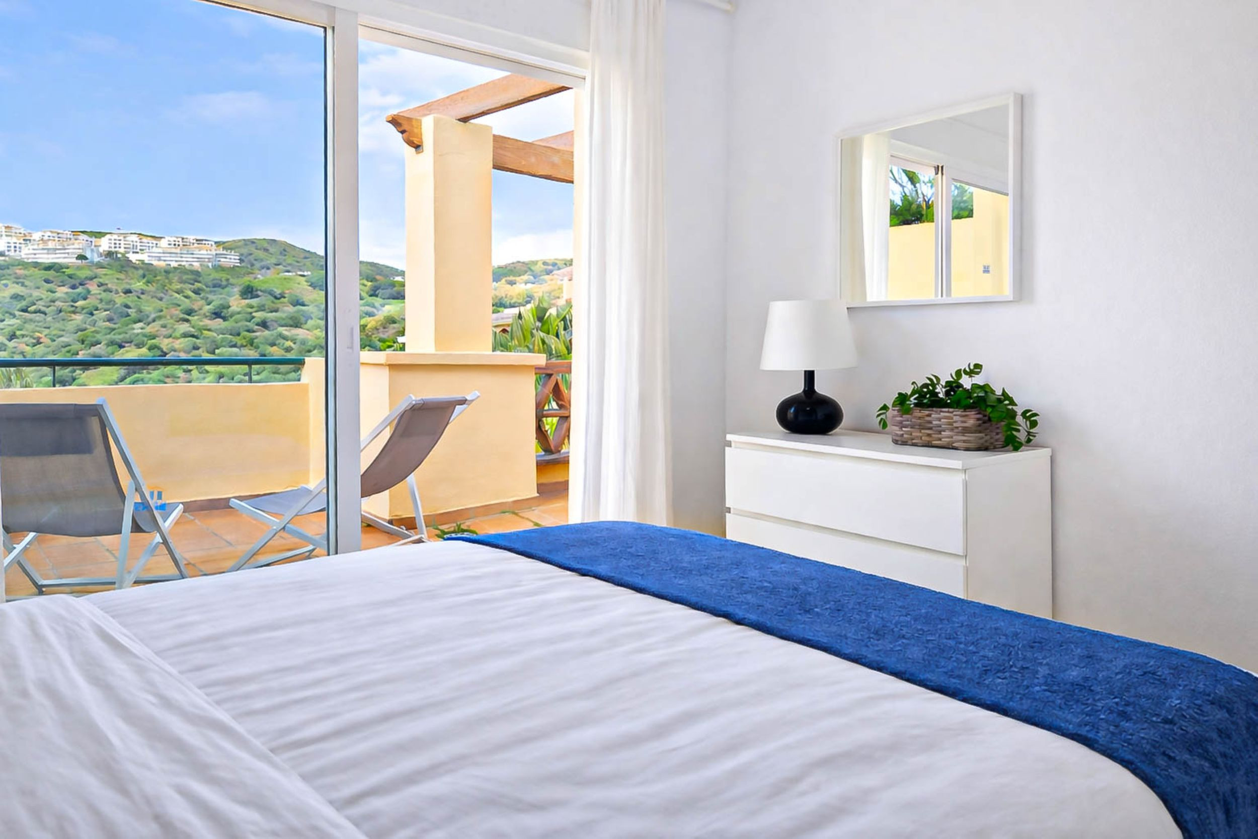 Este encantador apartamento de dos dormitorios está ubicado en el complejo Colinas del Mar en Riviera del Sol. Situado en las colinas de Riviera, el apartamento disfruta de vistas ininterrumpidas al mar. El complejo cerrado y seguro ofrece dos piscinas comunitarias, una con una piscina infantil separada y una pista de tenis. También hay un aparcamiento abierto. La playa y una selección de restaurantes, bares y tiendas están a una distancia de 1 km. El Club de Golf Miraflores está a menos de 2 km. El apartamento ofrece aire acondicionado con ventilación frío y calor, y WIFI gratuito.