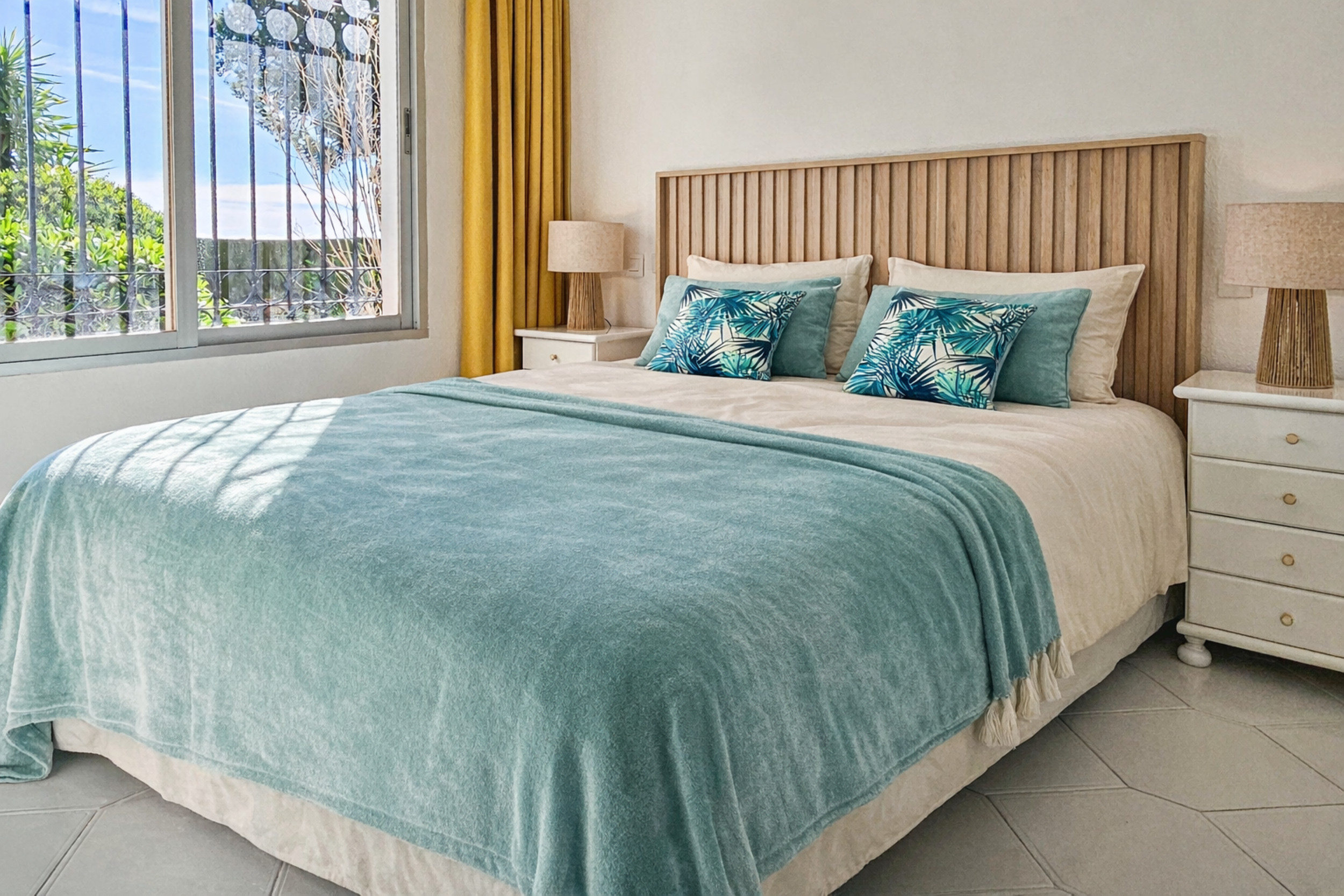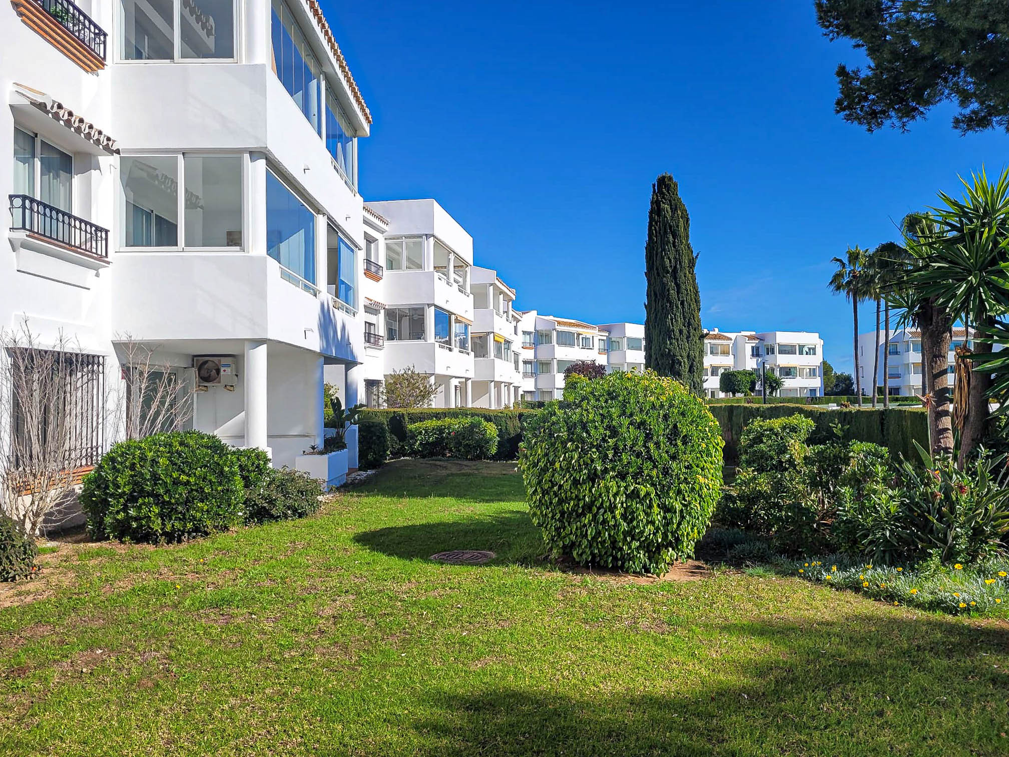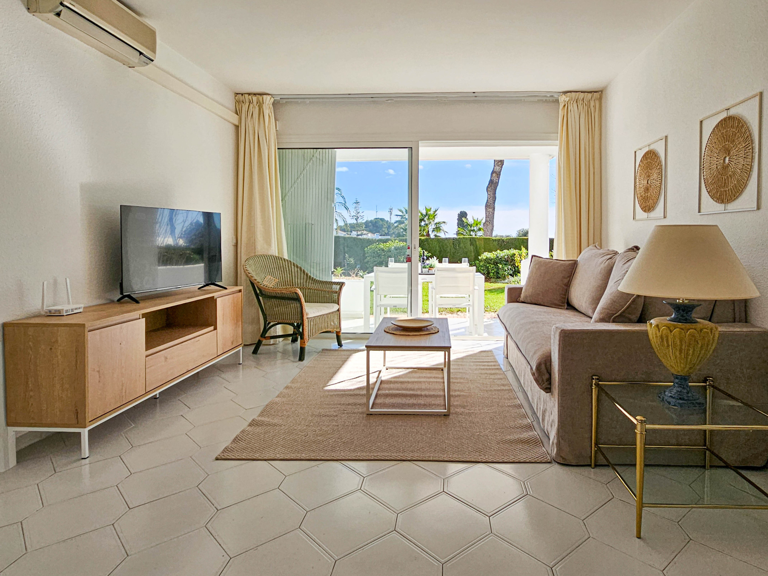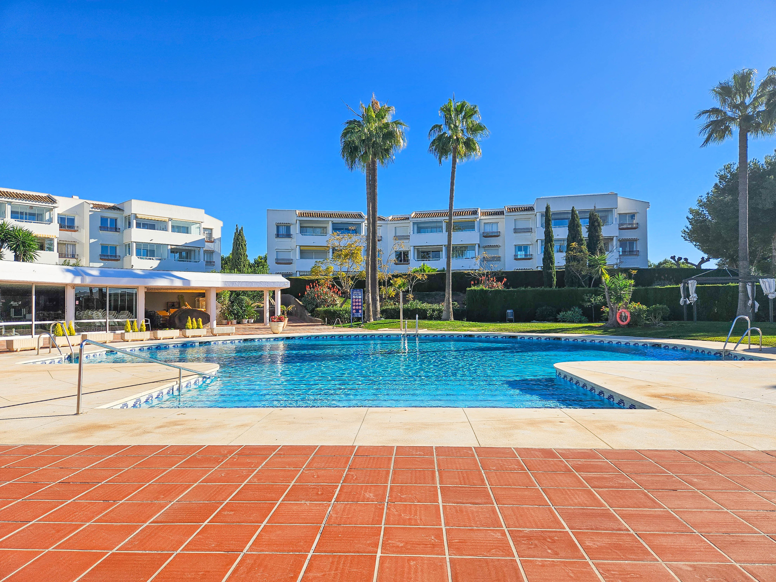 Este encantador apartamento de jardín de dos dormitorios está ubicado dentro del popular complejo Monte B en Miraflores. La comunidad cerrada y segura cuenta con dos piscinas comunitarias, cada una con una piscina infantil separada y tumbonas, además de un bar/restaurante junto a la piscina (abierto durante los meses de verano). El complejo también ofrece equipos de fitness al aire libre dentro de los jardines comunitarios. Los huéspedes se benefician de un estacionamiento en el sitio (plazas no asignadas) con estacionamiento adicional en la calle cerca.