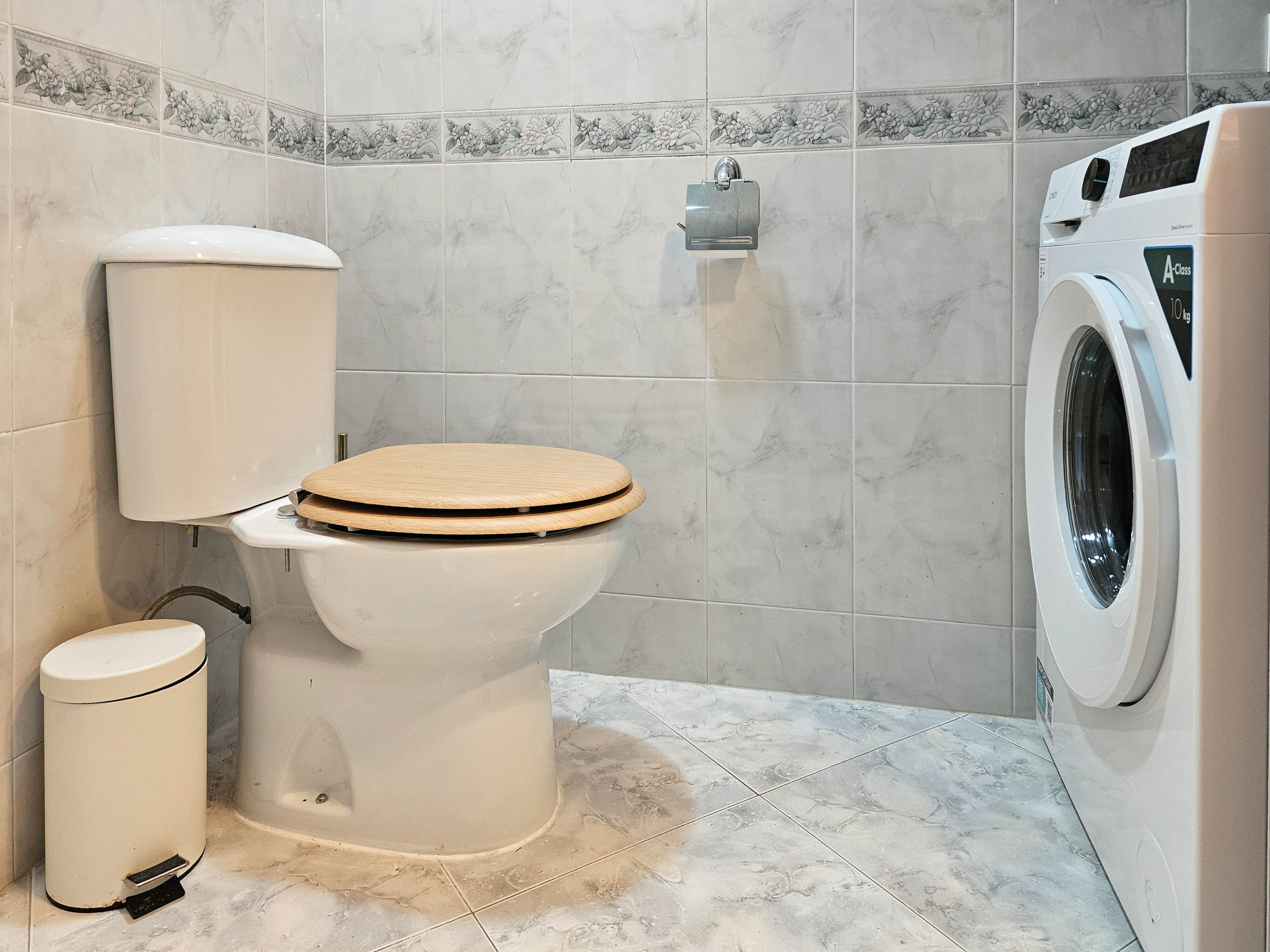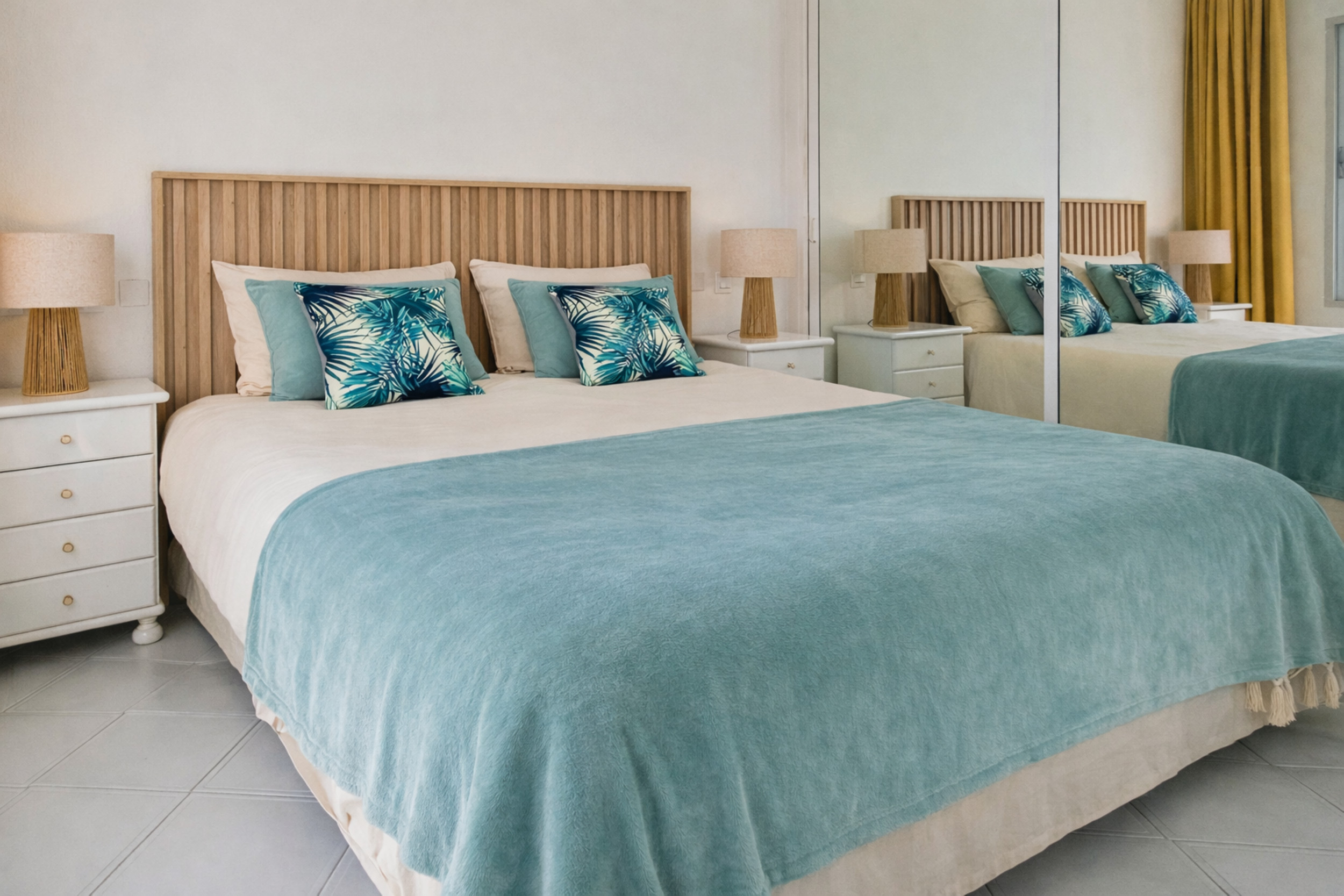 Ambos dormitorios cuentan con camas king-size y armarios empotrados, y comparten un cuarto de ducha para invitados, que también alberga la lavadora.
