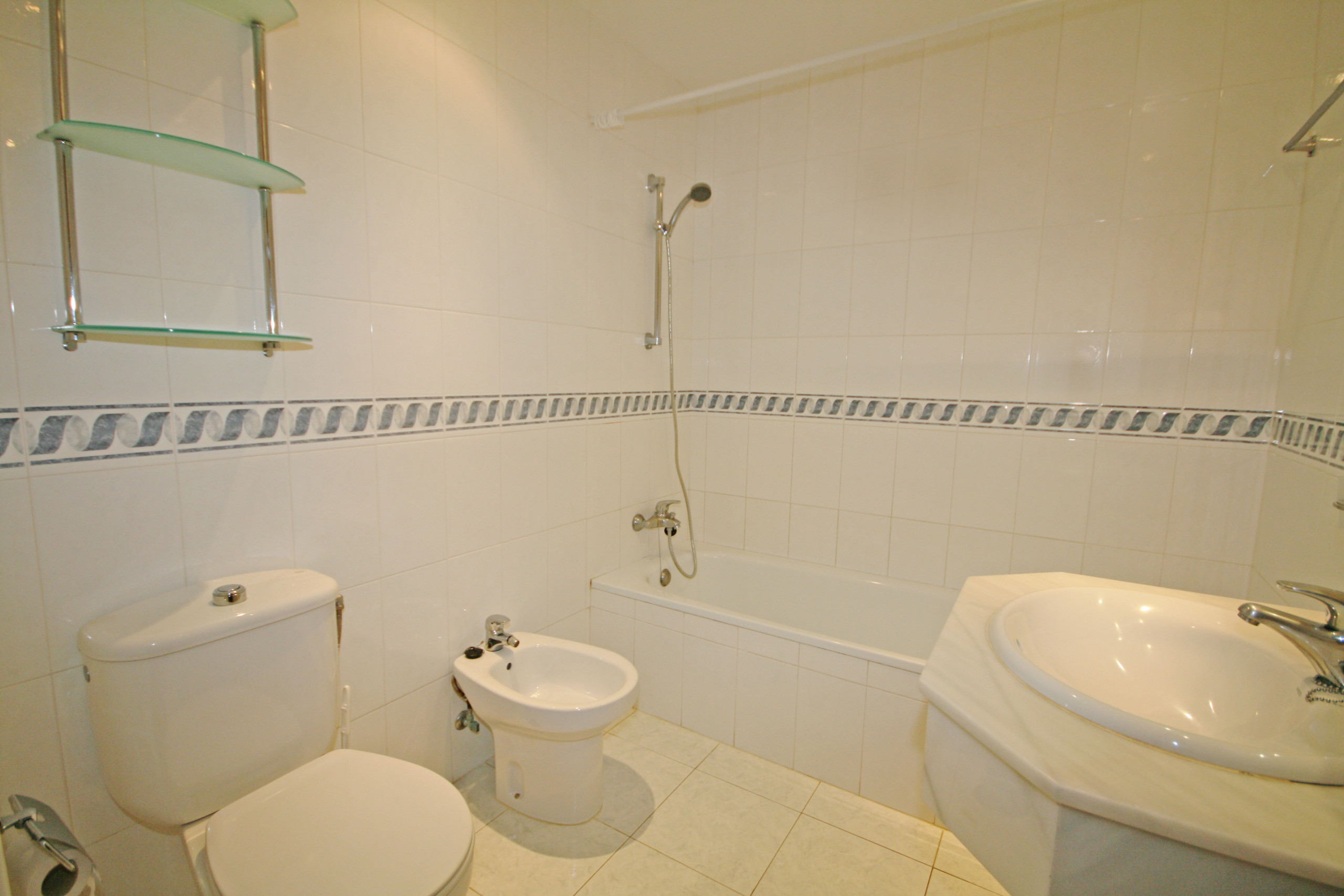 El dormitorio principal está amueblado con una cama de matrimonio y el dormitorio de invitados ofrece camas individuales. Ambos dormitorios tienen armarios empotrados y contraventanas. El apartamento cuenta con un cuarto de baño familiar, equipado con una bañera con ducha y también una lavadora.