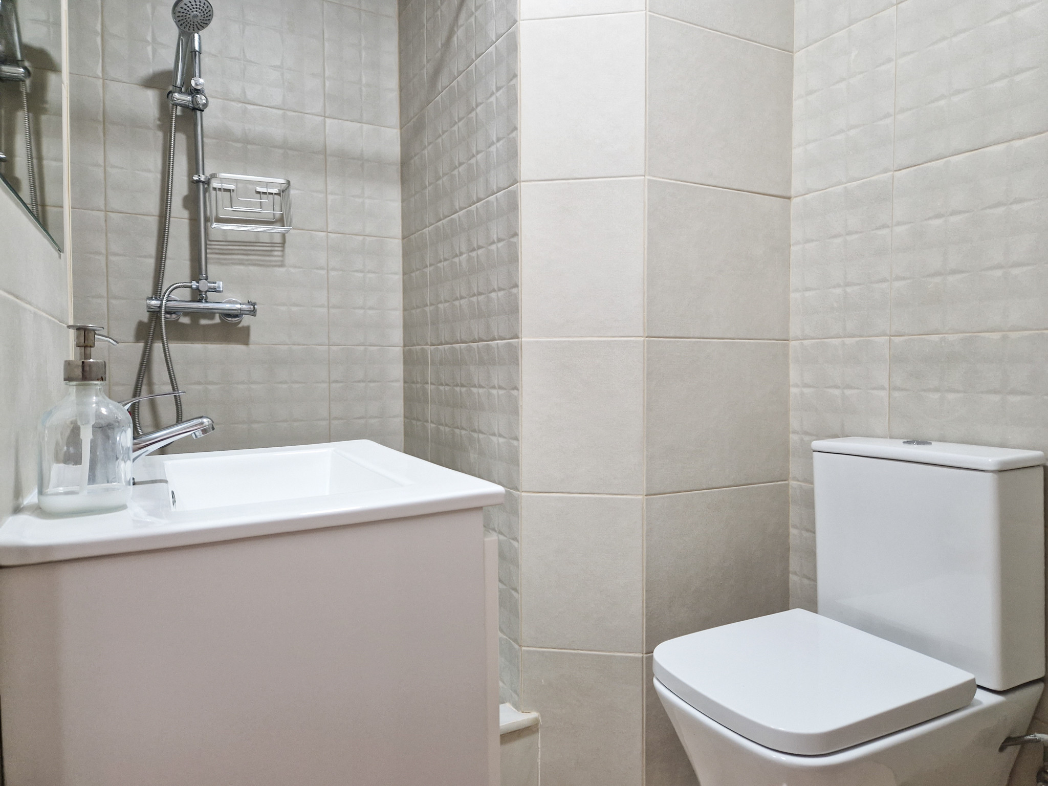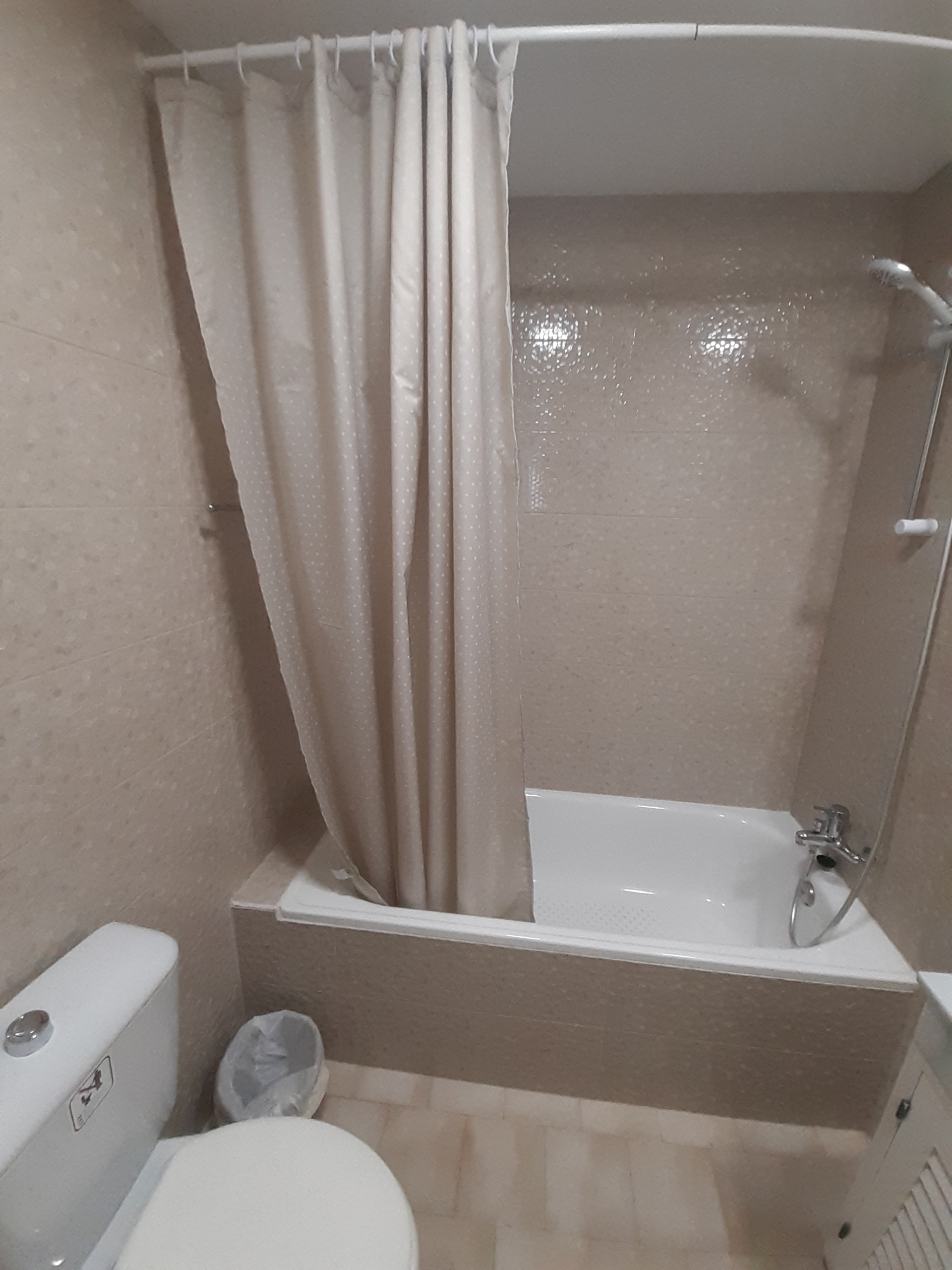 En la parte trasera del apartamento se encuentra el dormitorio principal que ofrece dos camas individuales, una mesita de noche y un cajón y un armario empotrado. Este dormitorio disfruta de un baño en suite con bañera y ducha en su interior.