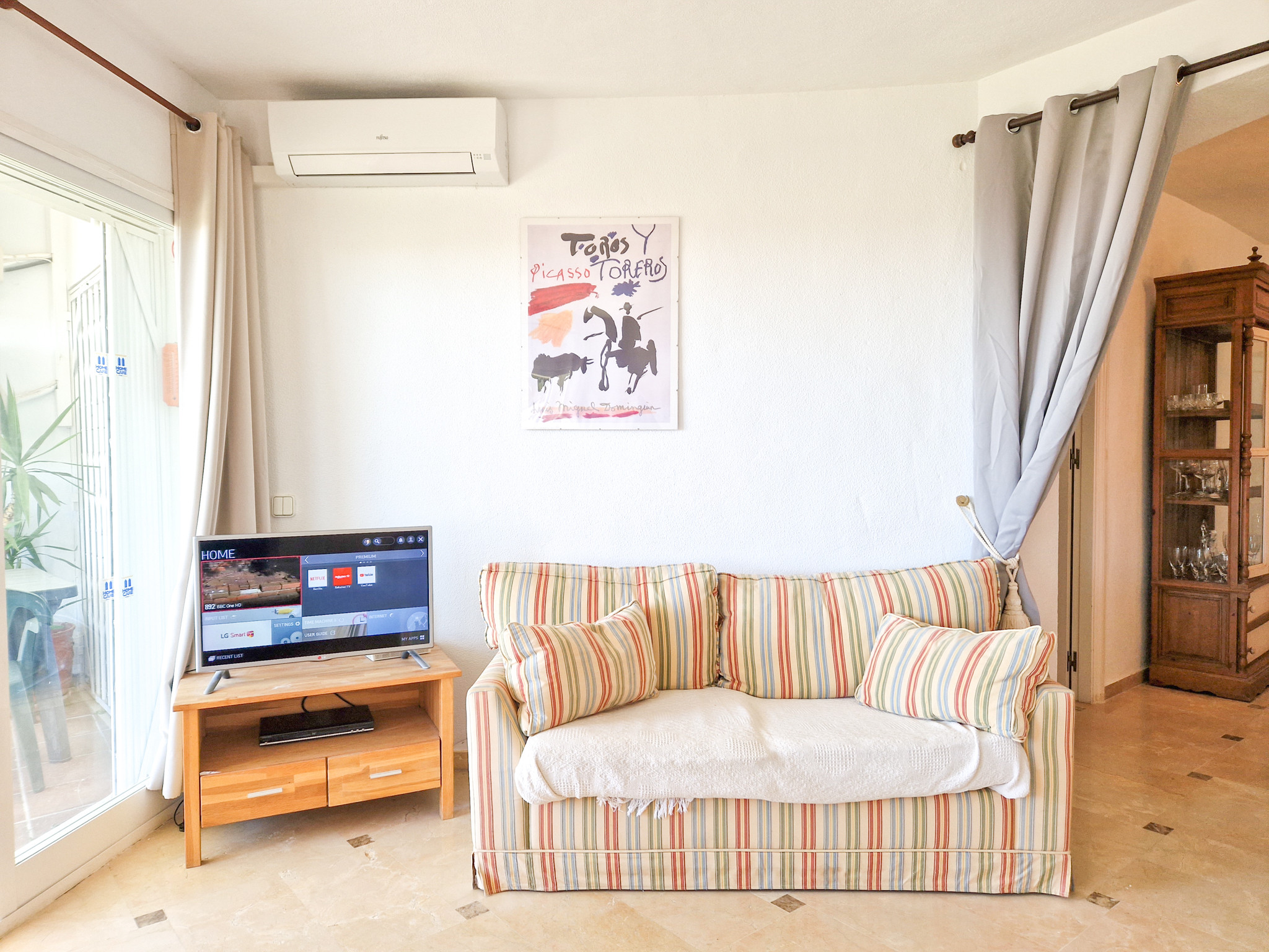 Este apartamento de 2 dormitorios está ubicado en un complejo residencial en Riviera del Sol, Mijas Costa. Este complejo cerrado ofrece aparcamiento seguro, una piscina comunitaria y amplias zonas comunes y una piscina infantil. El complejo está a distancia de paseo de muchos bares, restaurantes, supermercados y la playa. A solo unos minutos en coche hay un club deportivo de pago que incluye un gimnasio, pistas de tenis y pádel. El apartamento ofrece aire acondicionado con ventilación, ventiladores de techo y WIFI gratuito.