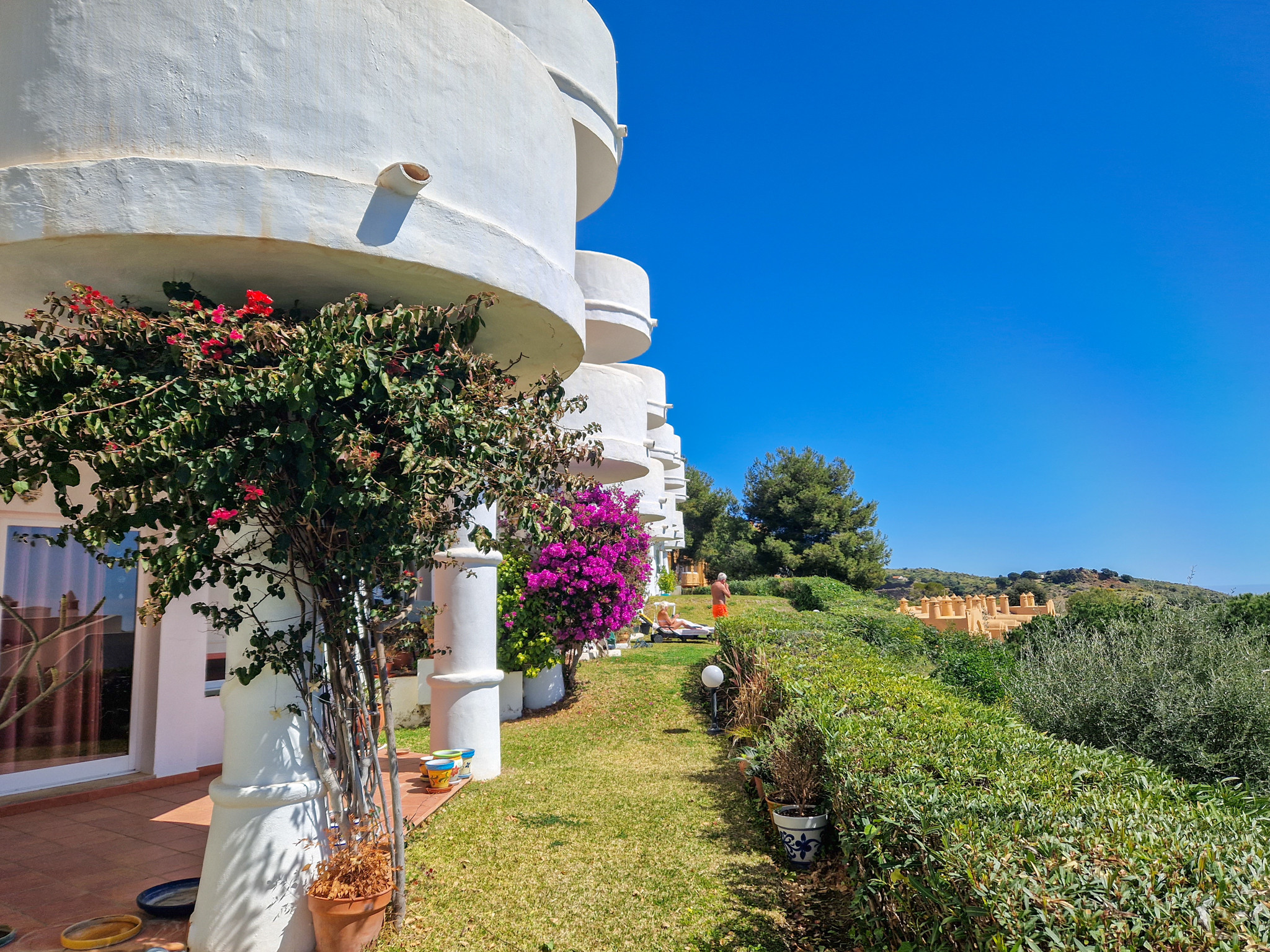 Este elegante apartamento de 2 dormitorios está situado en el complejo de golf Calanova Grand, aproximadamente a 3 km del interior de la localidad de La Cala de Mijas. El complejo ofrece exuberantes jardines tropicales con elementos de agua, 2 piscinas comunitarias, una de las cuales está abierta todo el año, pistas de tenis y una zona de juegos infantil. Las vistas desde la zona de la piscina son espectaculares, con el mar Mediterráneo y la costa del norte de África.