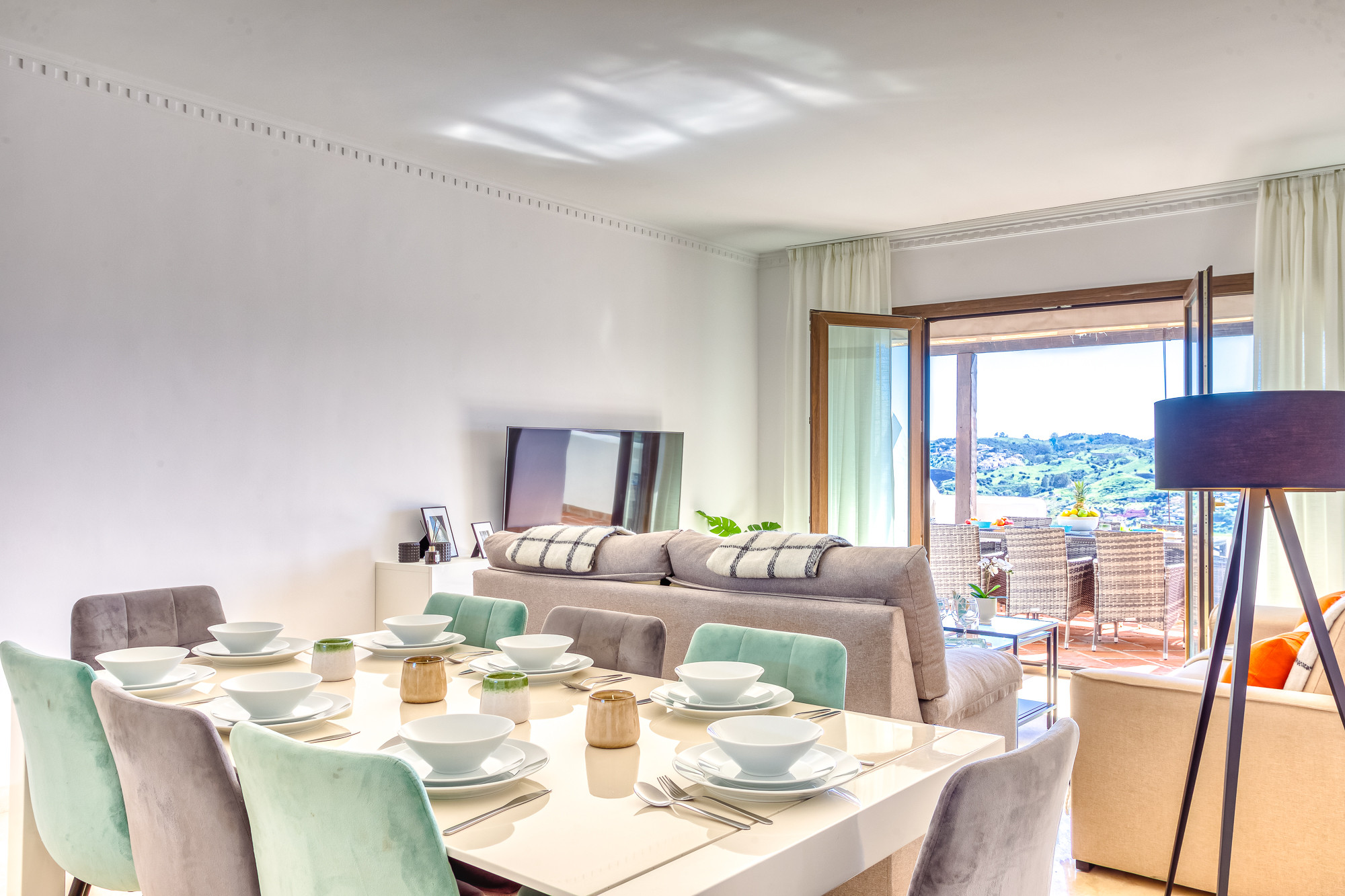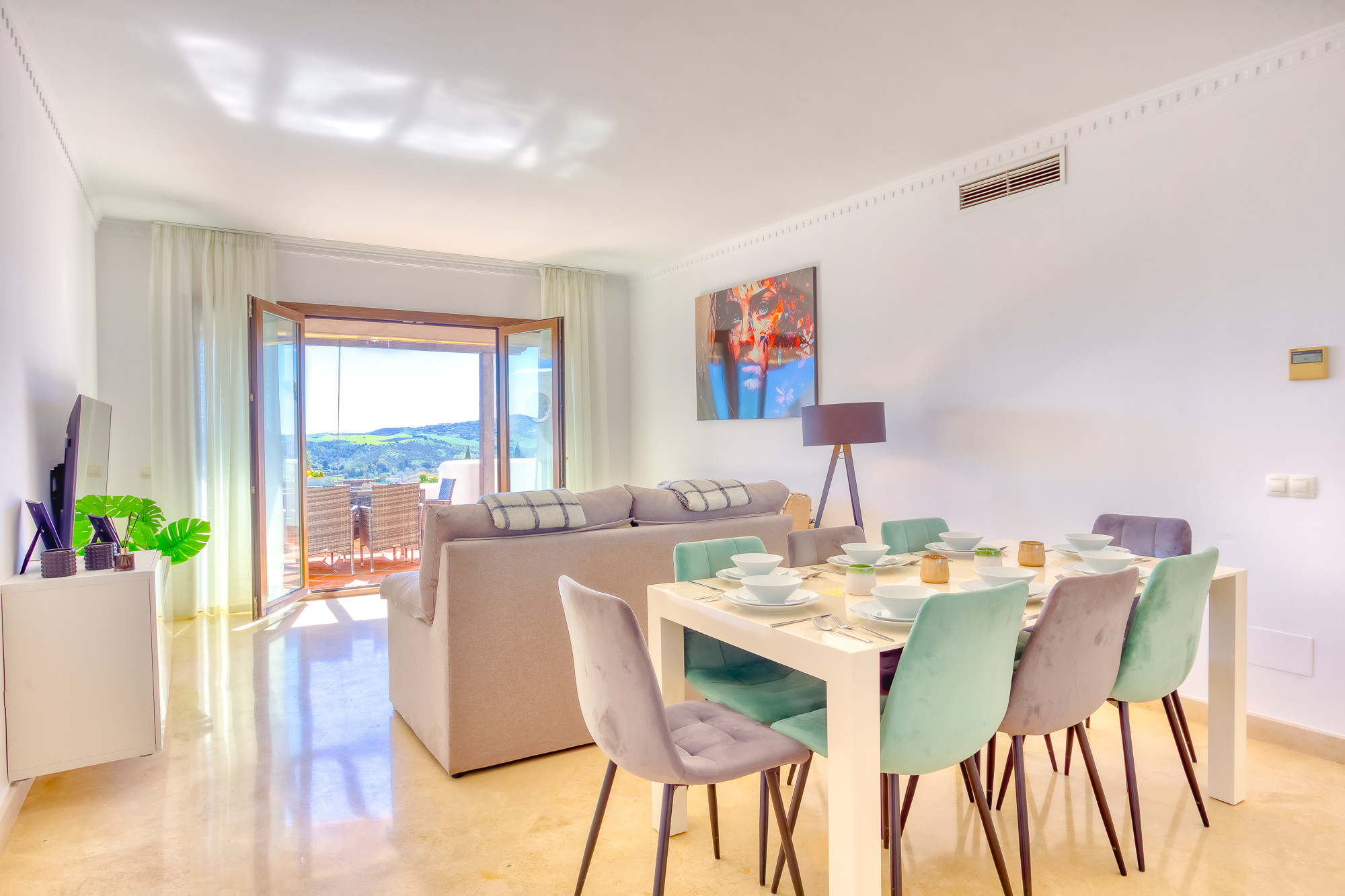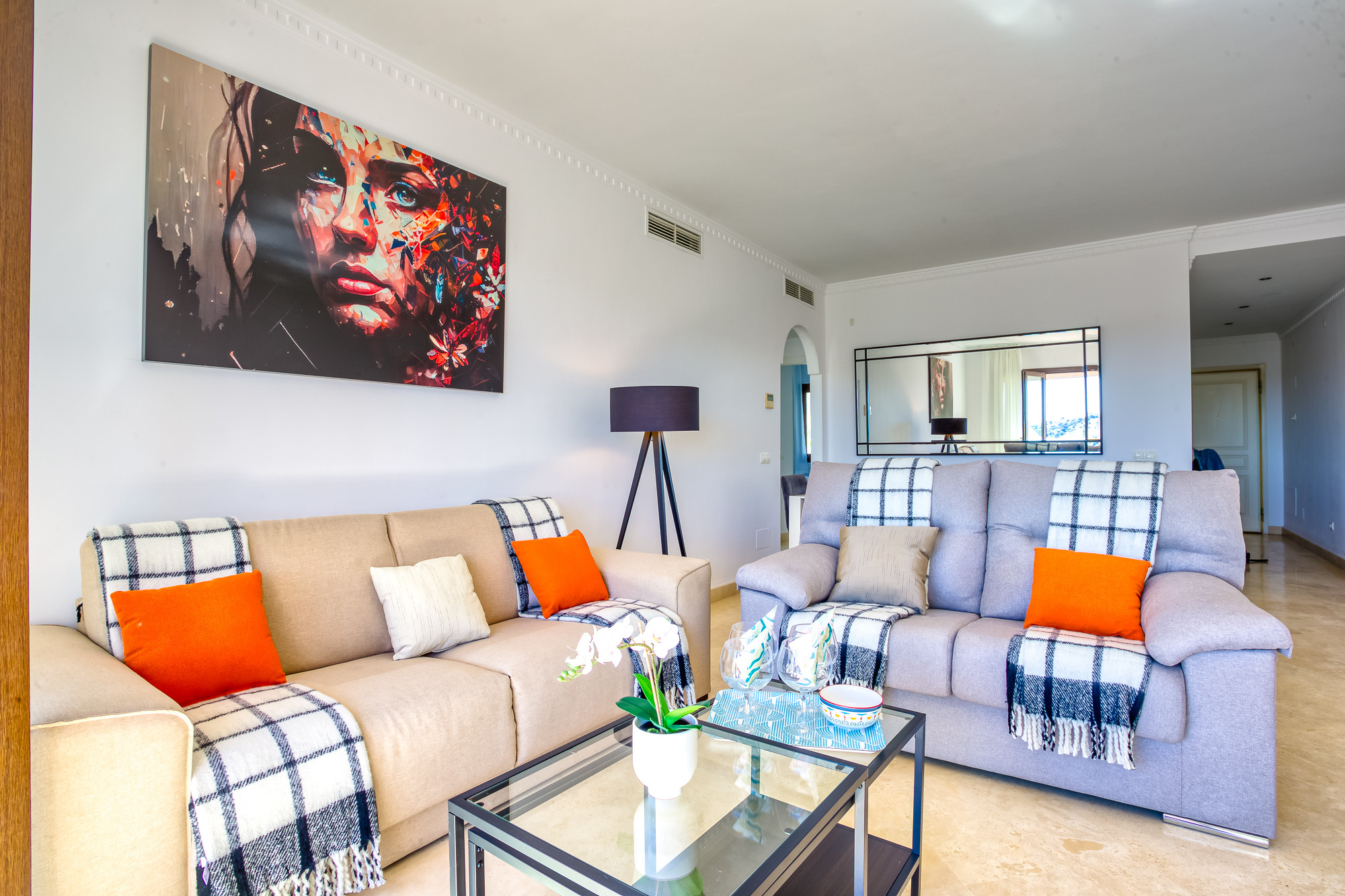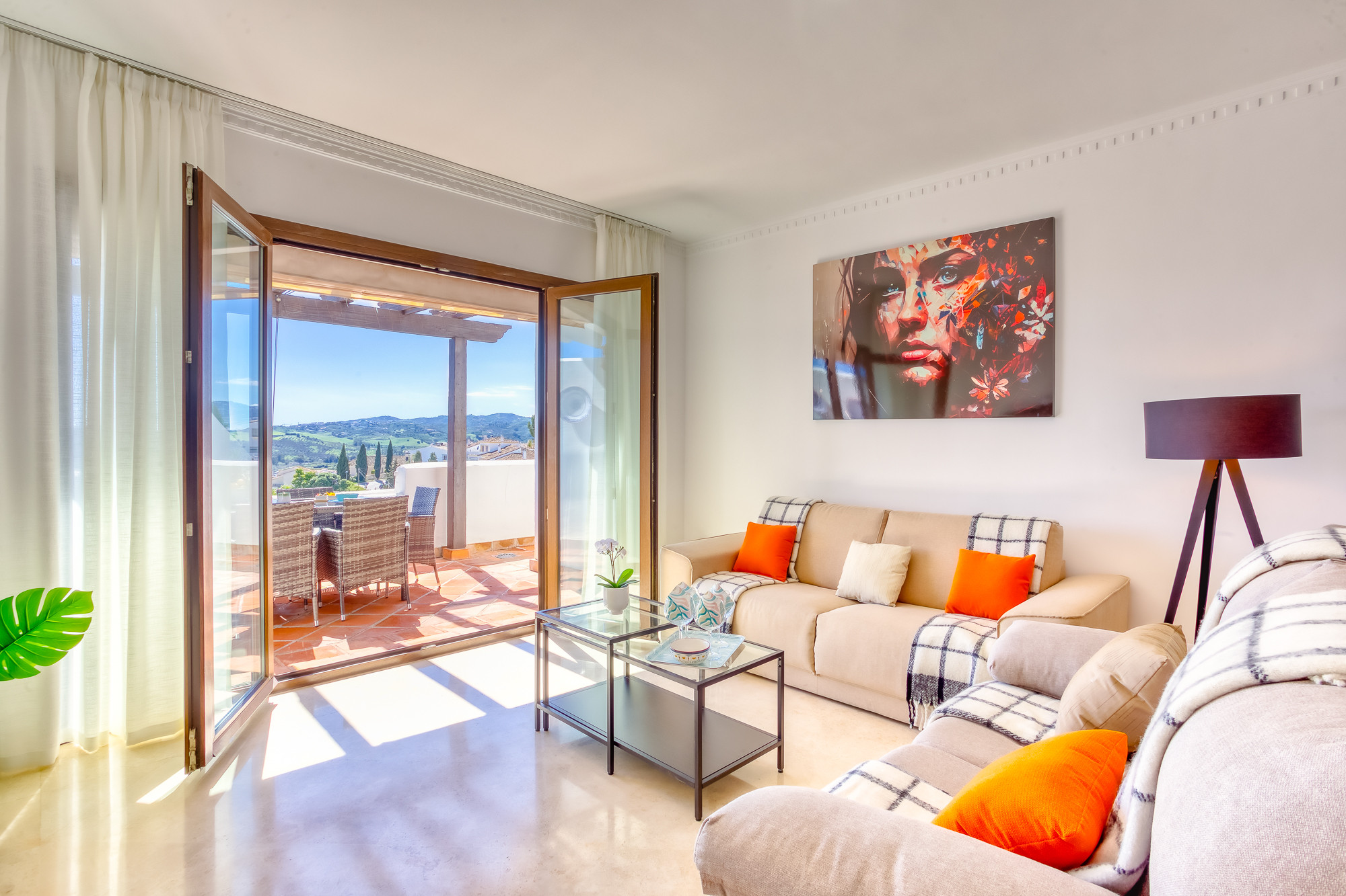 Este hermoso apartamento dúplex de lujo, ubicado en Mijas Golf, ofrece impresionantes vistas al campo de golf y al paisaje circundante, proporcionando un entorno sereno y pintoresco para su estancia. Con 3 amplios dormitorios y 2 baños (1 en suite), aloja cómodamente hasta 6 huéspedes, lo que lo convierte en una opción ideal para familias o grupos pequeños.