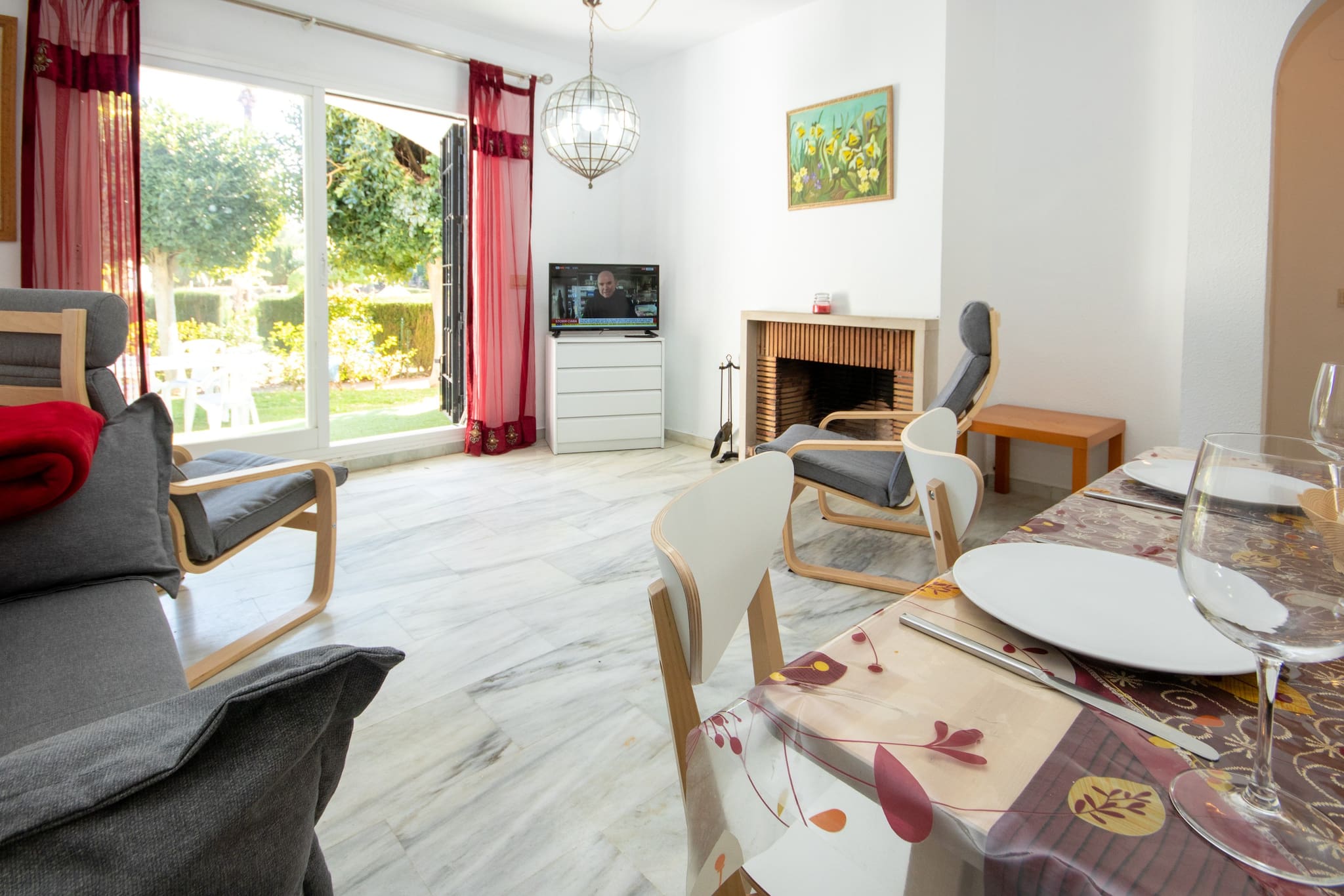 Dispone de jardín, mobiliario jardín, 58 m² de terraza, lavadora, plancha, secador, aire acondicionado en todo el alojamiento, piscina comunitaria, parking aire libre, 1 Televisor, tv satelite (Idiomas: Español, Inglés, Alemán, Francés).