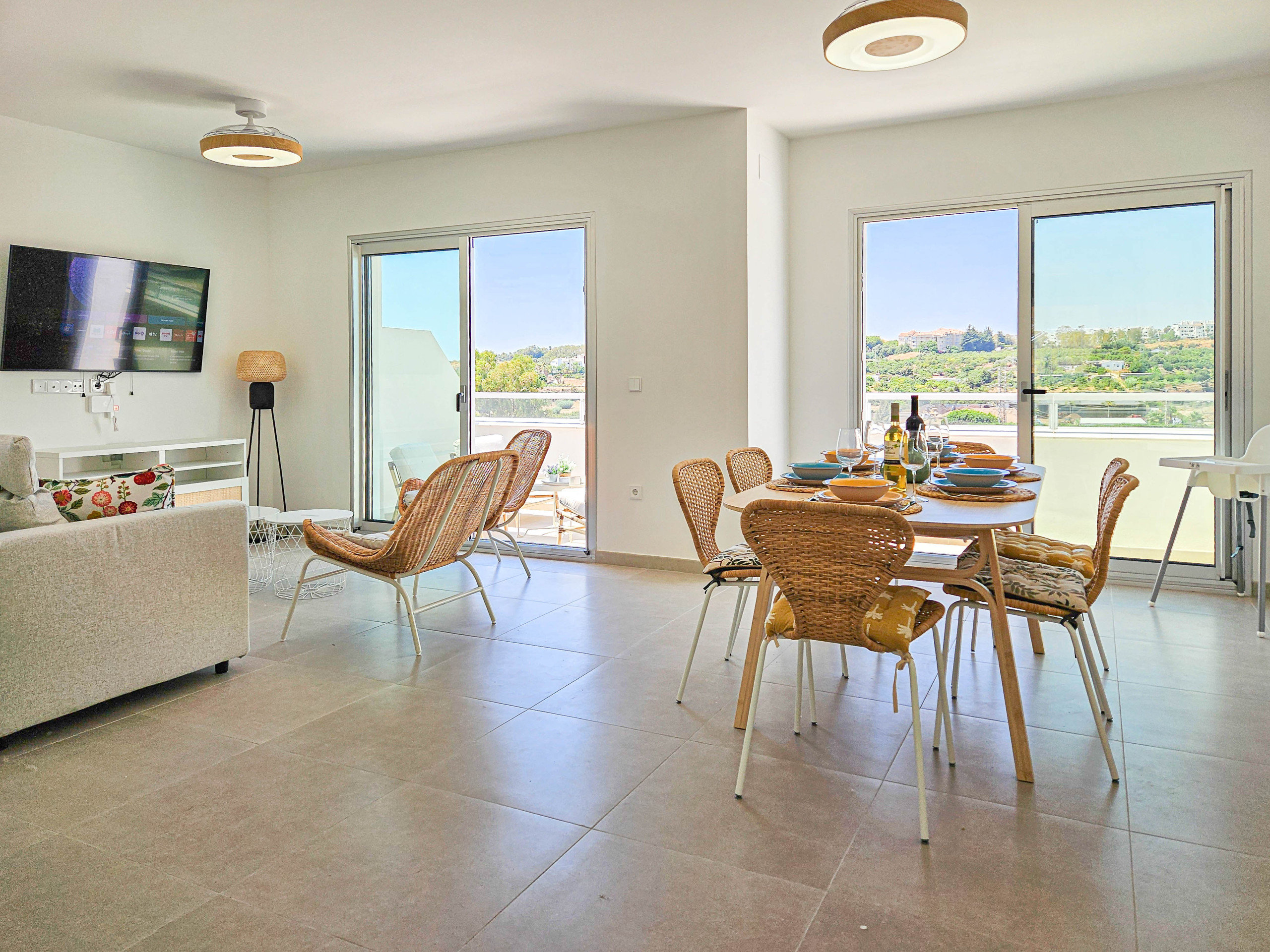 Este moderno adosado de dos dormitorios está ubicado en el complejo de nueva construcción de Oceana Gardens en Cancelada. El complejo ofrece una piscina comunitaria y un gimnasio, y la casa cuenta con una plaza de aparcamiento asignada en el garaje subterráneo seguro. Hay una variedad de campos de golf cercanos, siendo el más cercano a 4 km. Cancelada cuenta con muchas comodidades, incluyendo restaurantes, bares y supermercados, y este tramo de la costa tiene muchos chiringuitos y restaurantes para disfrutar en la playa, a solo 3 km. El apartamento ofrece aire acondicionado con ventilación frío/calor, persianas en los dormitorios y WIFI gratuito.