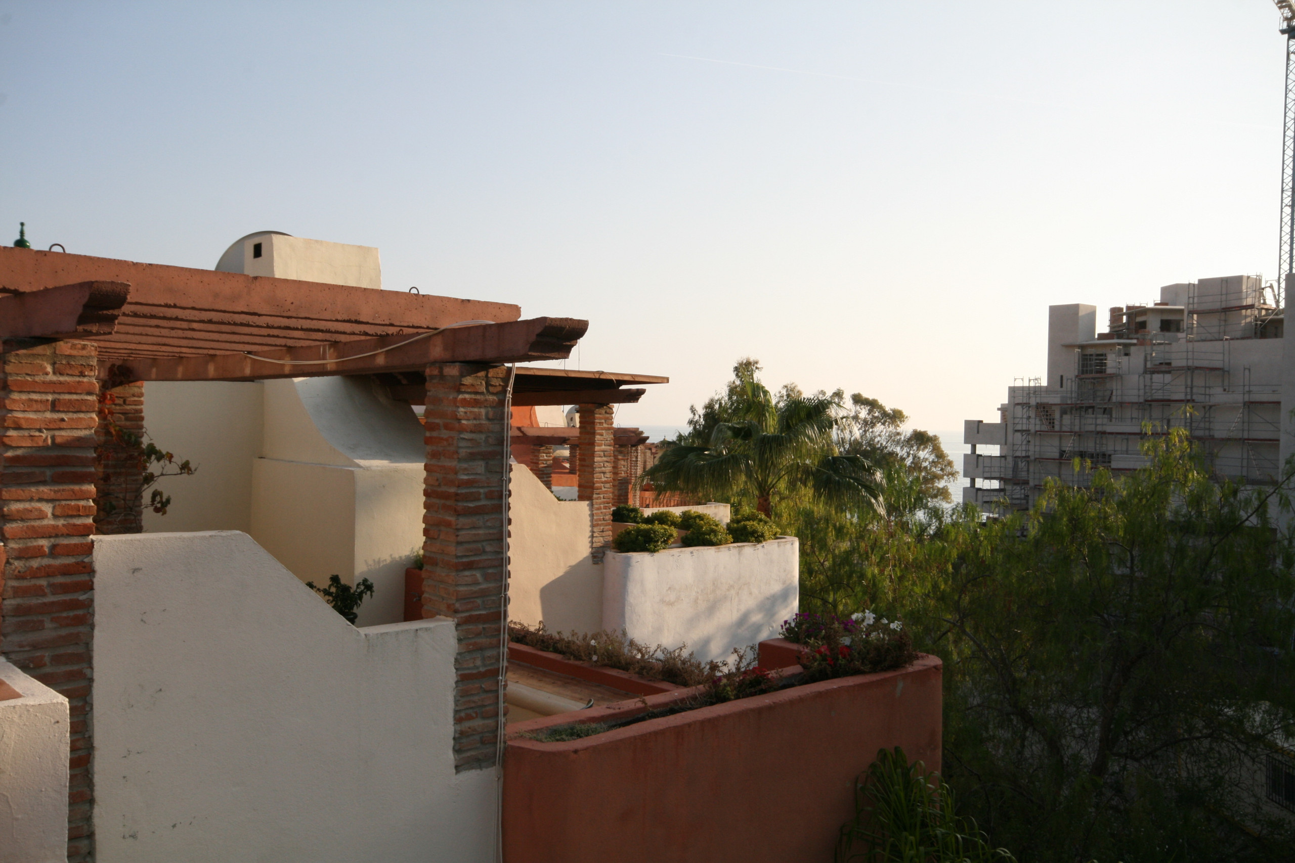 Justo al lado del recibidor se encuentra la escalera que le lleva a la espaciosa terraza en la azotea, donde podrá disfrutar de hermosas vistas panorámicas del mar, Gibraltar, la piscina y el complejo. La terraza en la azotea ofrece una zona de estar y una zona de comedor.