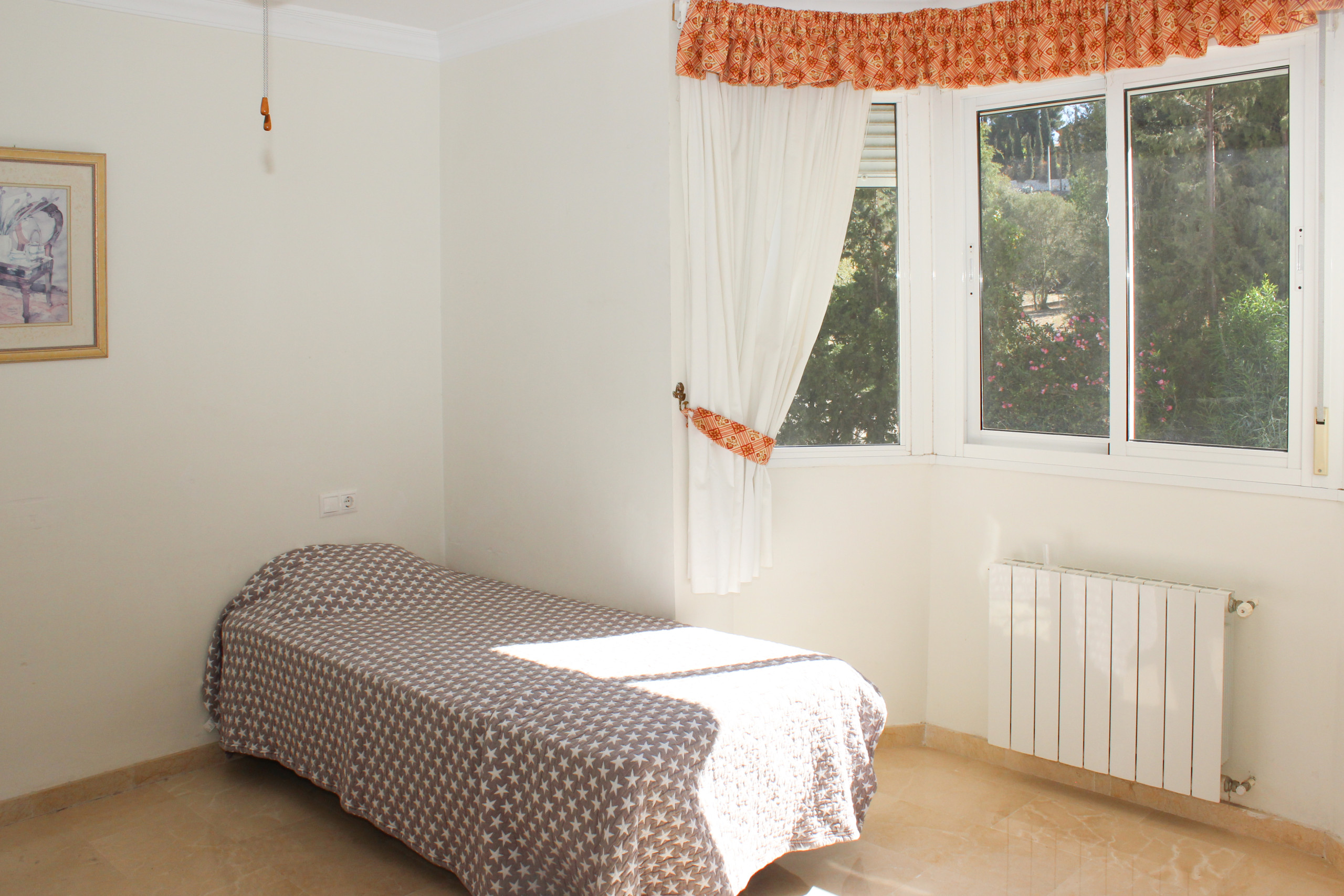 Las tres habitaciones están ubicadas en la primera planta. La habitación principal está amueblada con una cama king size, armarios empotrados y tiene acceso a una terraza privada con vistas a la piscina y también un baño en suite, con bañera y accesorio de ducha. La segunda habitación está amueblada con dos camas individuales con la opción de añadir un topper de super king size a la cama para convertirla en una cama de super king size. La tercera habitación tiene camas gemelas y armarios empotrados. Las habitaciones de invitados tienen acceso al baño de invitados, que cuenta con bañera y accesorio de ducha.