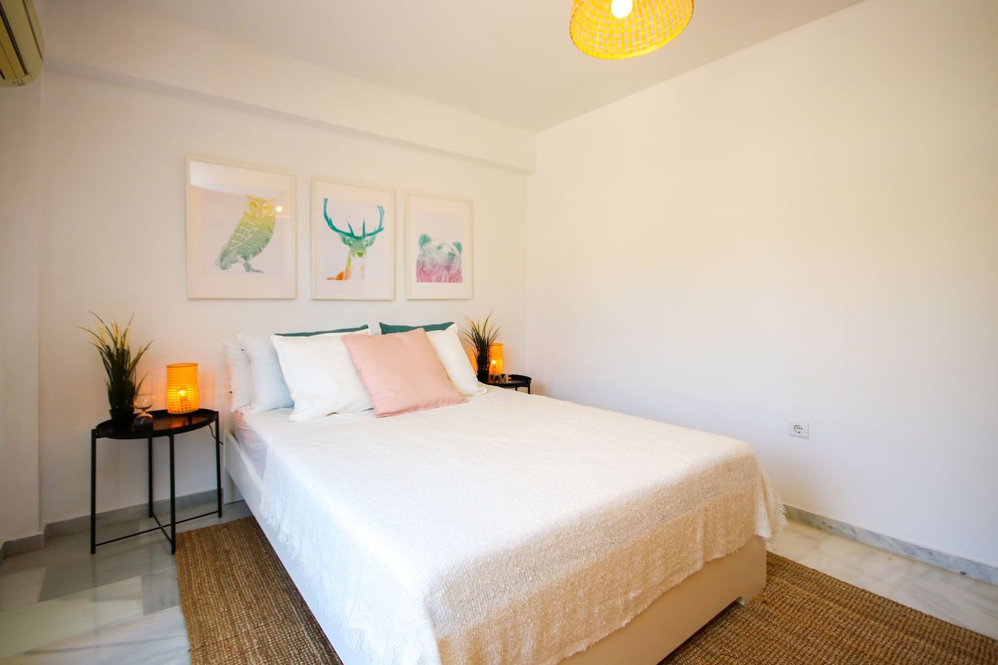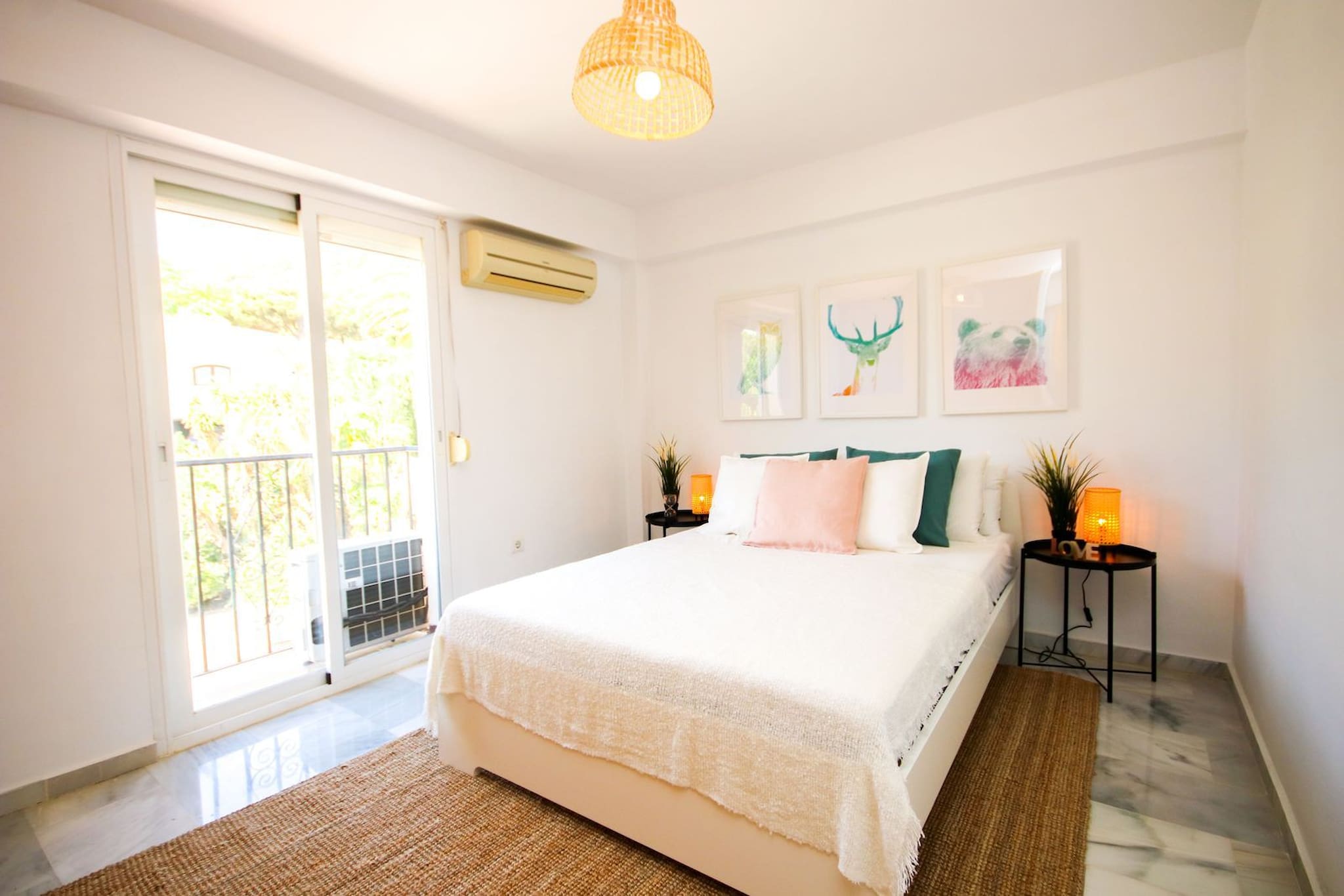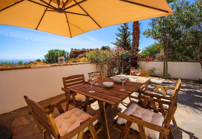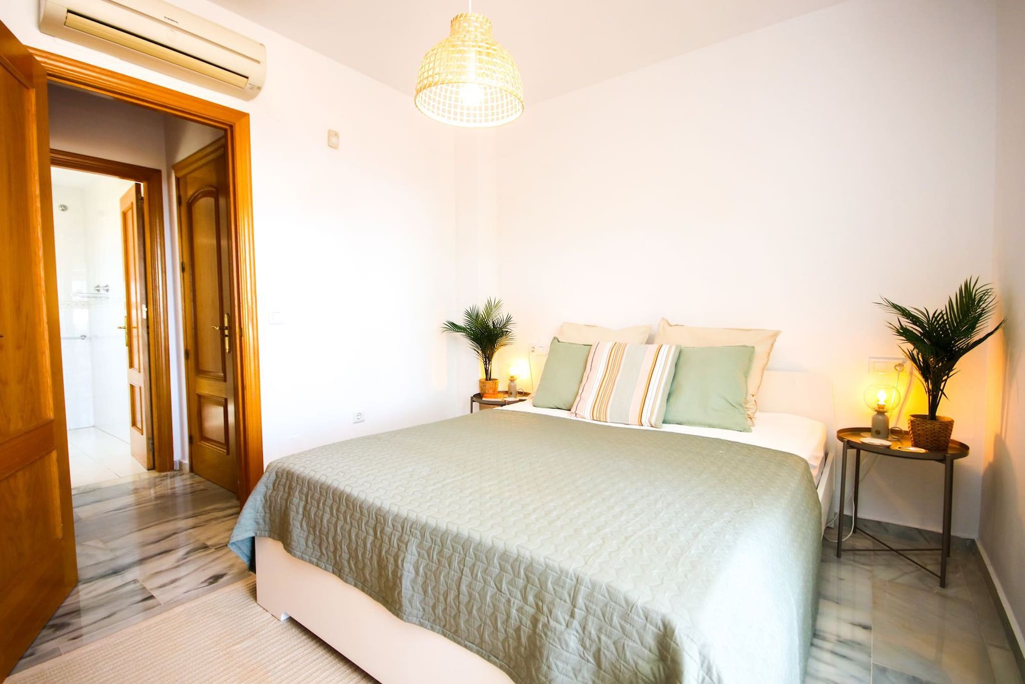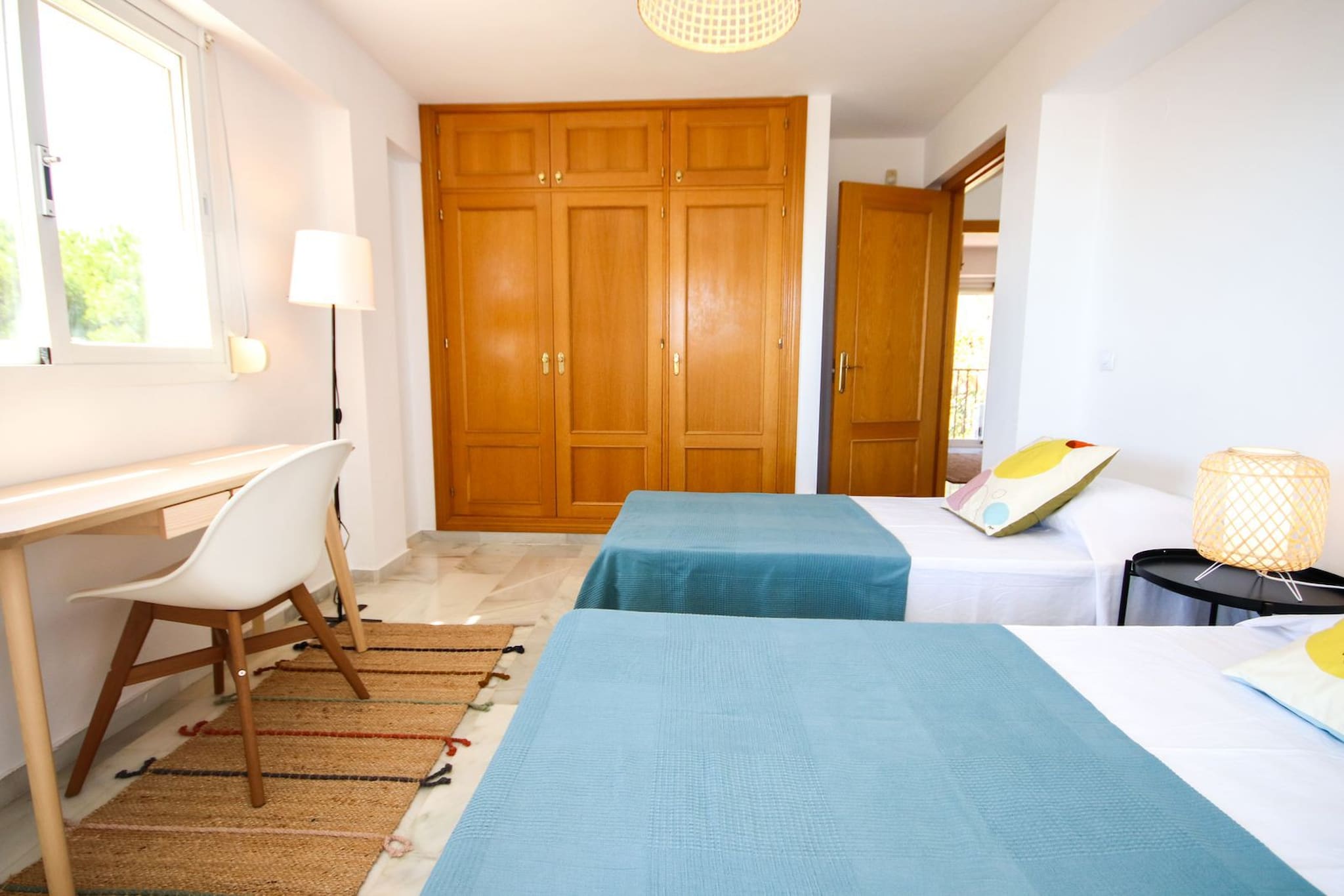 Esta casa amueblada con gusto está distribuida en dos niveles y cuenta con un amplio espacio de estar diáfano en la planta baja. La cocina está bien equipada, incluyendo una isla de cocina con barra de desayuno y taburetes. La zona de comedor puede acomodar hasta ocho personas y la zona de estar está amueblada con un sofá, una silla y un televisor inteligente de 55 pulgadas. Se accede a la terraza cubierta y al jardín desde la sala de estar para encontrar un área de comedor adicional, una barbacoa de gas y un césped de Astroturf. Desde aquí se pueden disfrutar de vistas al mar. Uno de los dormitorios de invitados está ubicado en la planta baja y está amueblado con una cama king size y armarios empotrados. También hay un aseo de invitados ubicado justo al lado de este dormitorio.