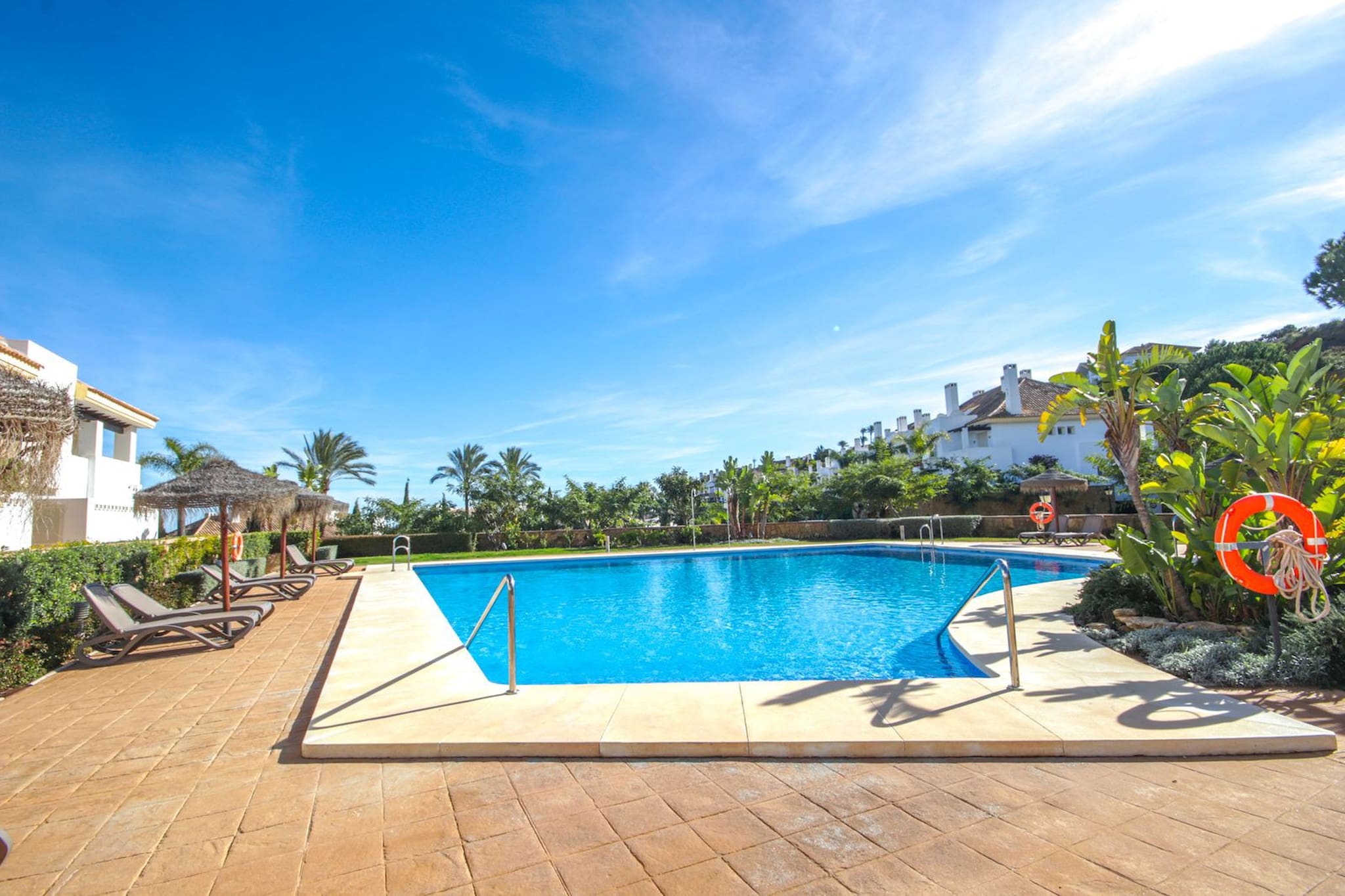 Este adosado de dos dormitorios está ubicado en el complejo Las Angelas en Calahonda. El complejo cerrado ofrece una piscina comunitaria con acogedoras zonas de asiento y jardines bien cuidados. La casa está ubicada a solo 1 km de la playa, 600 m de los bares, restaurantes y supermercado más cercanos y a solo 1,3 km del club de golf Siesta. La casa ofrece WIFI gratuito. Ambos dormitorios disponen de unidades de aire acondicionado frío y calor y ventiladores de techo. El salón también está equipado con un ventilador de techo.
