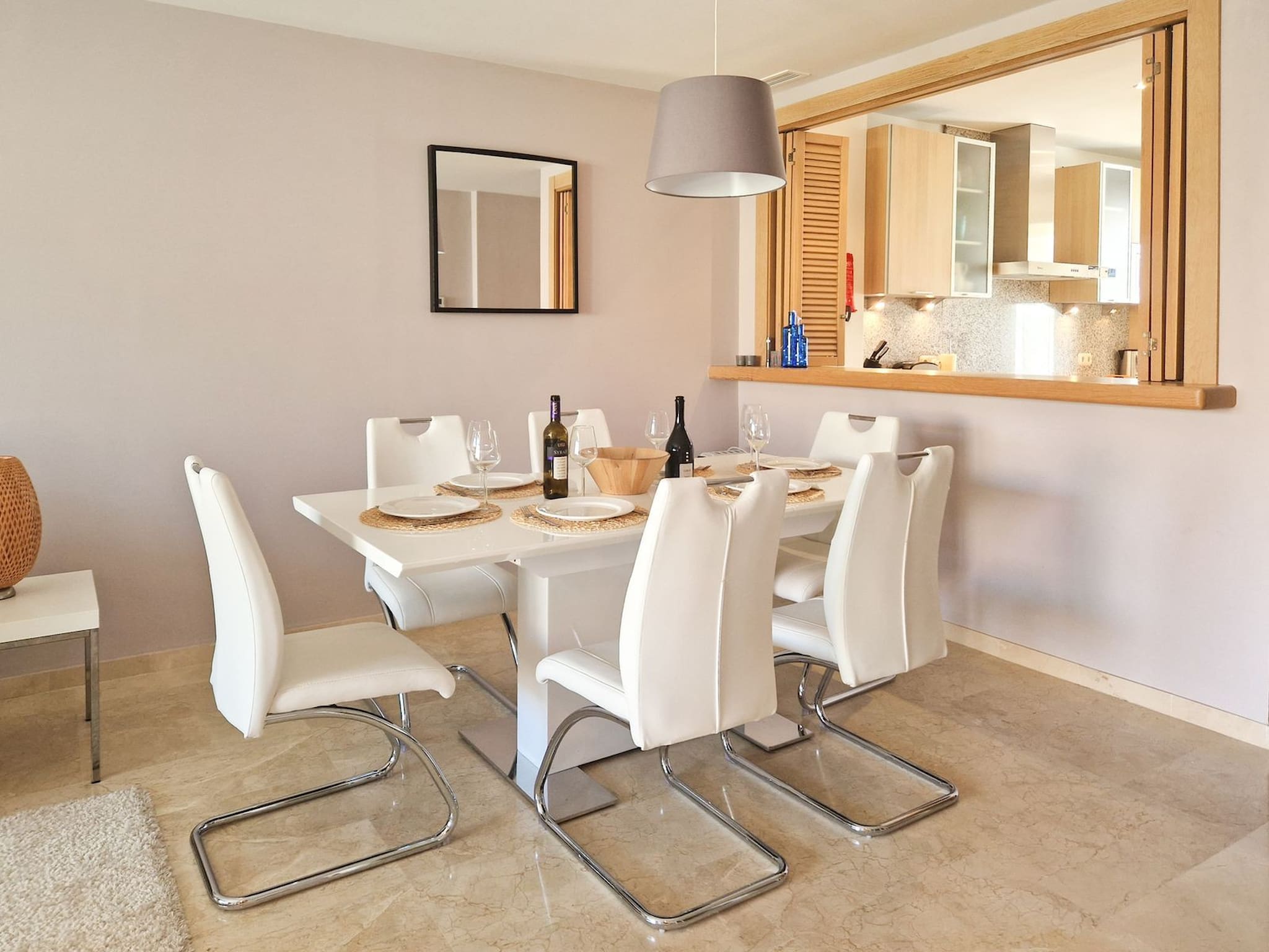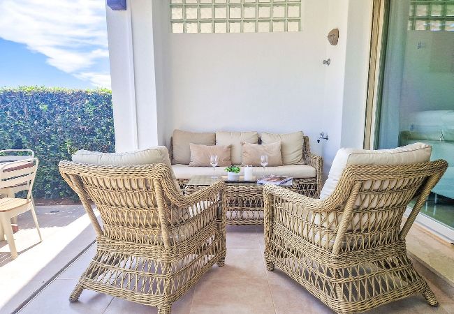 La casa está distribuida en dos niveles con acceso desde la planta baja. Se accede a la casa a través del gran patio, donde se puede disfrutar de la zona de asientos y tumbonas. En el interior de la propiedad, el espacio de estar diáfano se beneficia de una cocina totalmente equipada. La zona de comedor tiene capacidad para seis personas y la zona de estar está amueblada con un sofá, que se despliega para convertirse en un sofá-cama de dos plazas. También hay un sillón y un televisor inteligente de 55 pulgadas. Justo al lado del salón, se tiene acceso al aseo de invitados. Se puede acceder a la terraza trasera desde el salón, donde se puede disfrutar de la zona de comedor para seis personas. Hay una barbacoa de gas y una toldo eléctrico disponibles para los días más calurosos.
