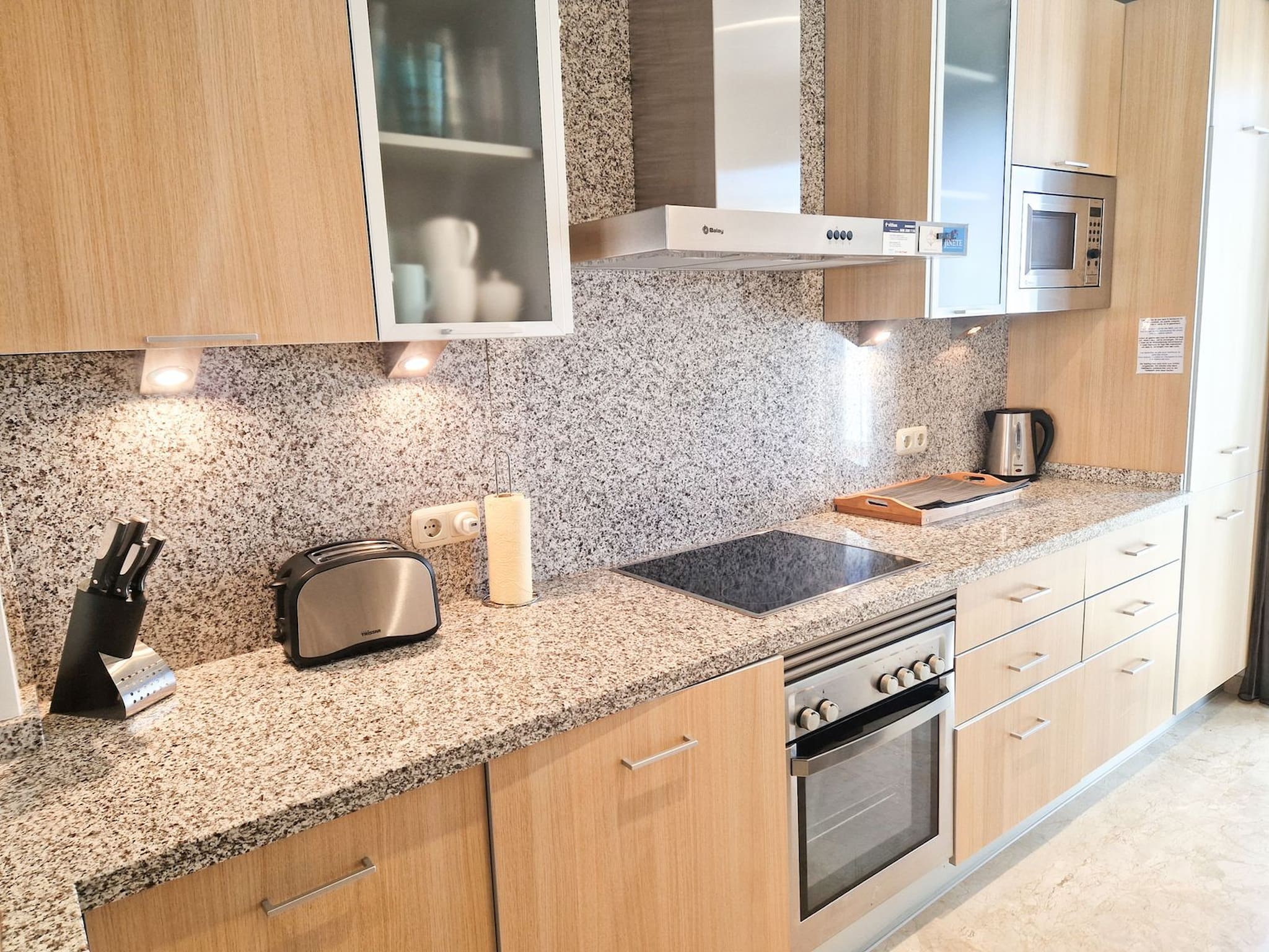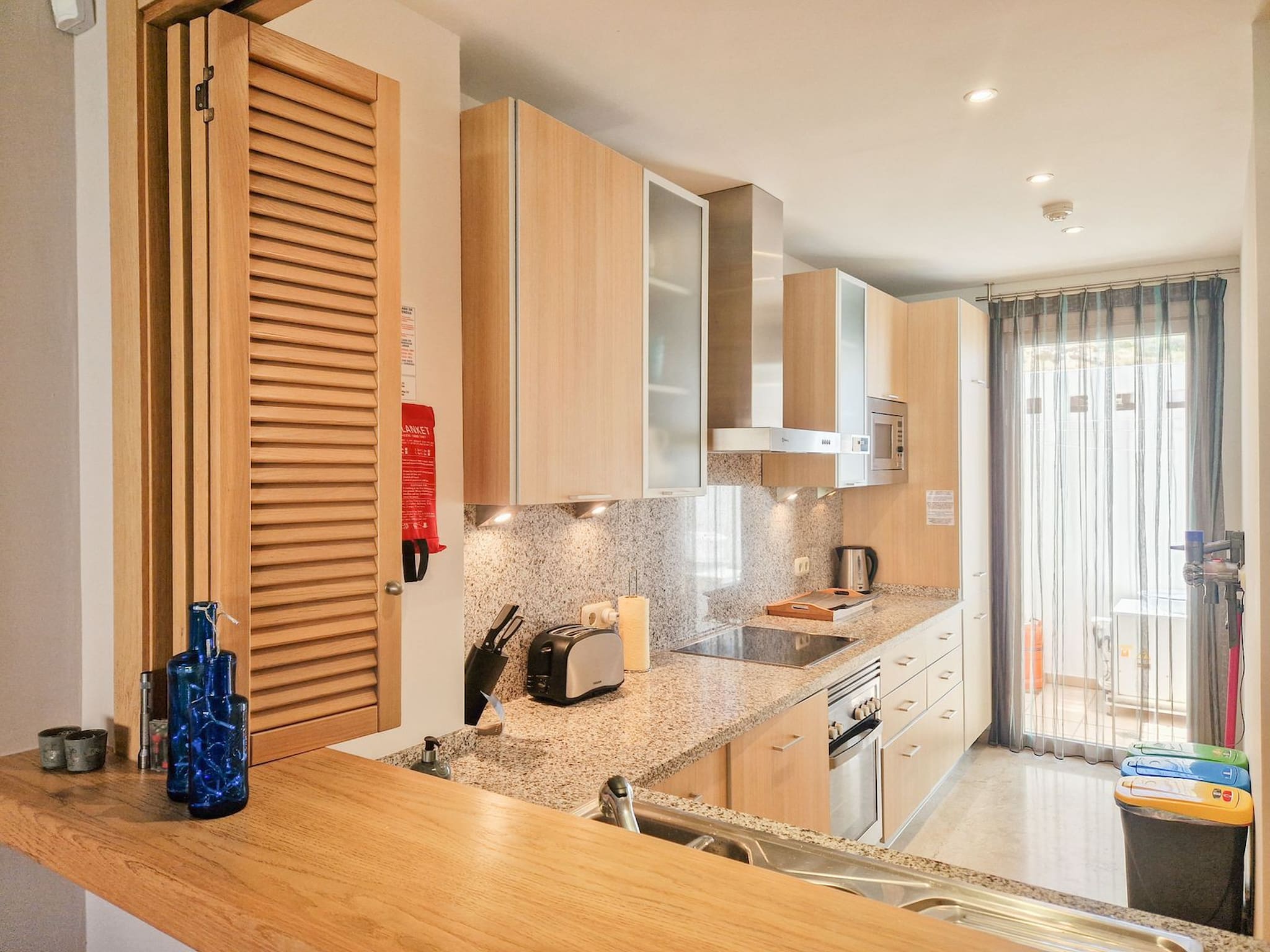 En la planta baja, puede encontrar una cocina completamente equipada independiente con una pequeña terraza y barbacoa de gas.