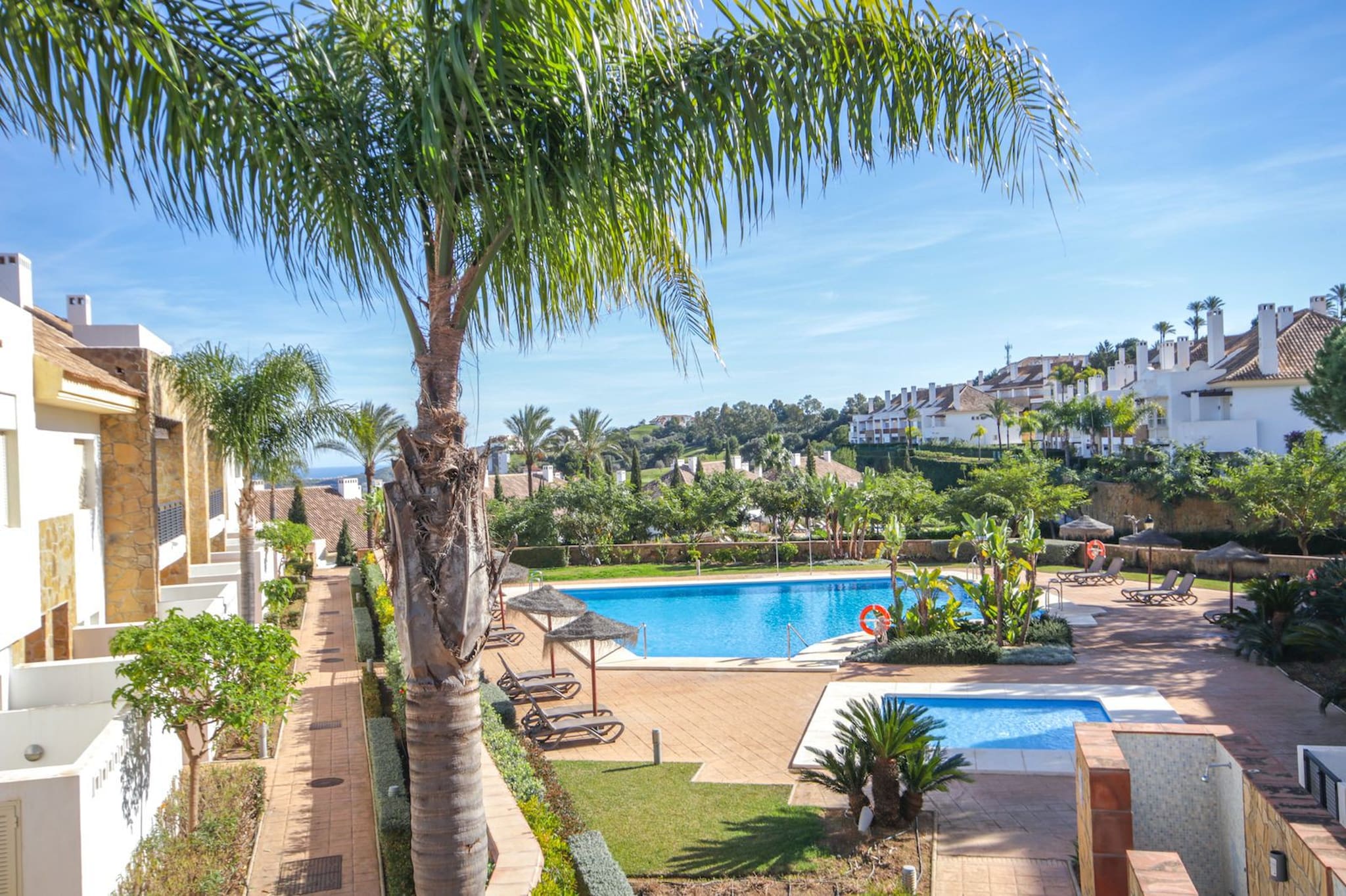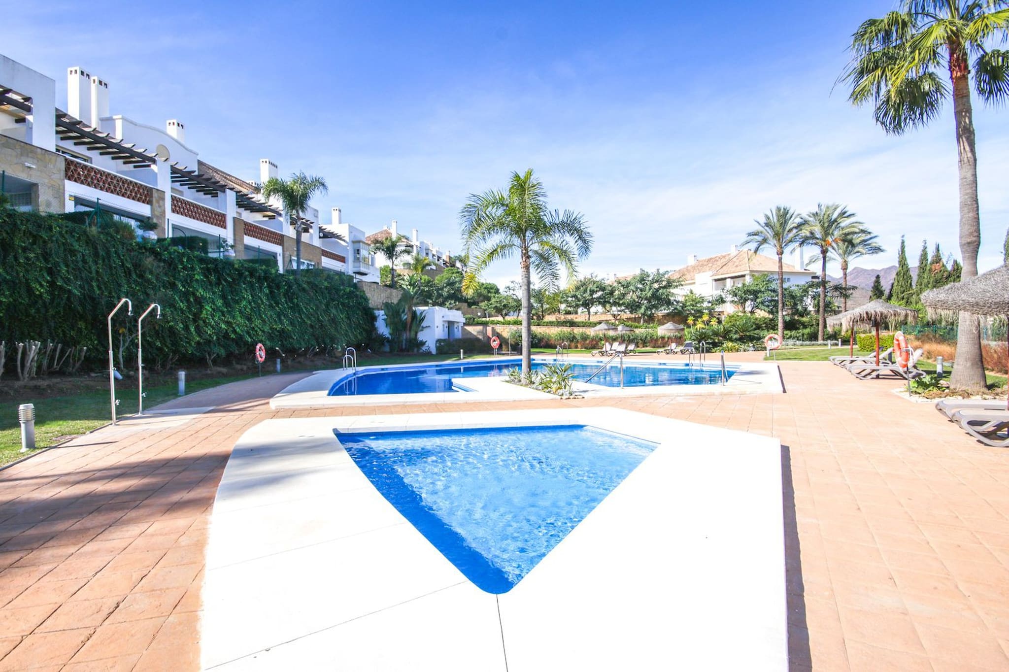 Este encantador adosado de 2 dormitorios está ubicado en el complejo cerrado de Monte Alto en La Cala Golf. El complejo está a aproximadamente 7 km de la costa y a distancia de paseo del campo de golf y la casa club. Hay 2 piscinas comunitarias, ambas con piscinas infantiles separadas. La casa cuenta con aparcamiento subterráneo, con acceso remoto a un garaje privado, aire acondicionado y WIFI gratuito.