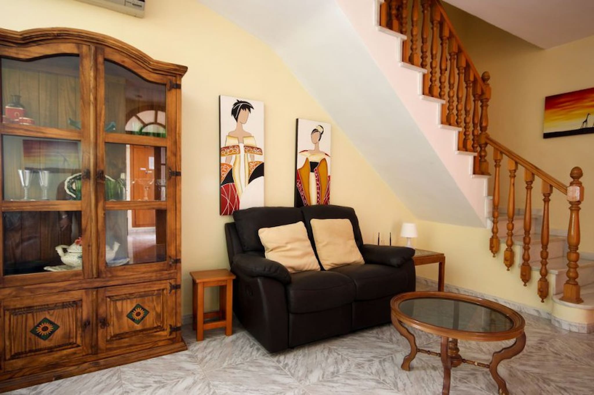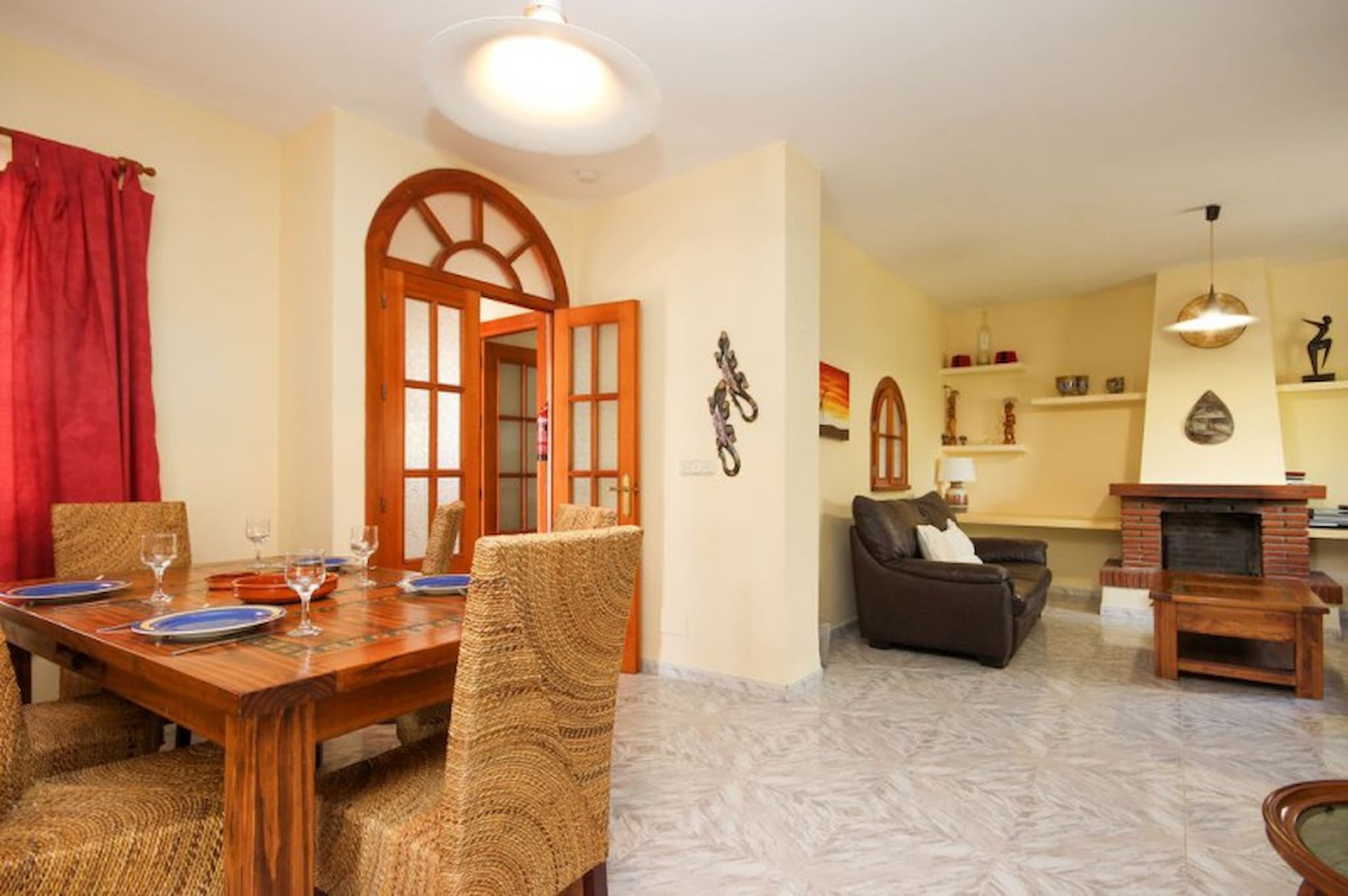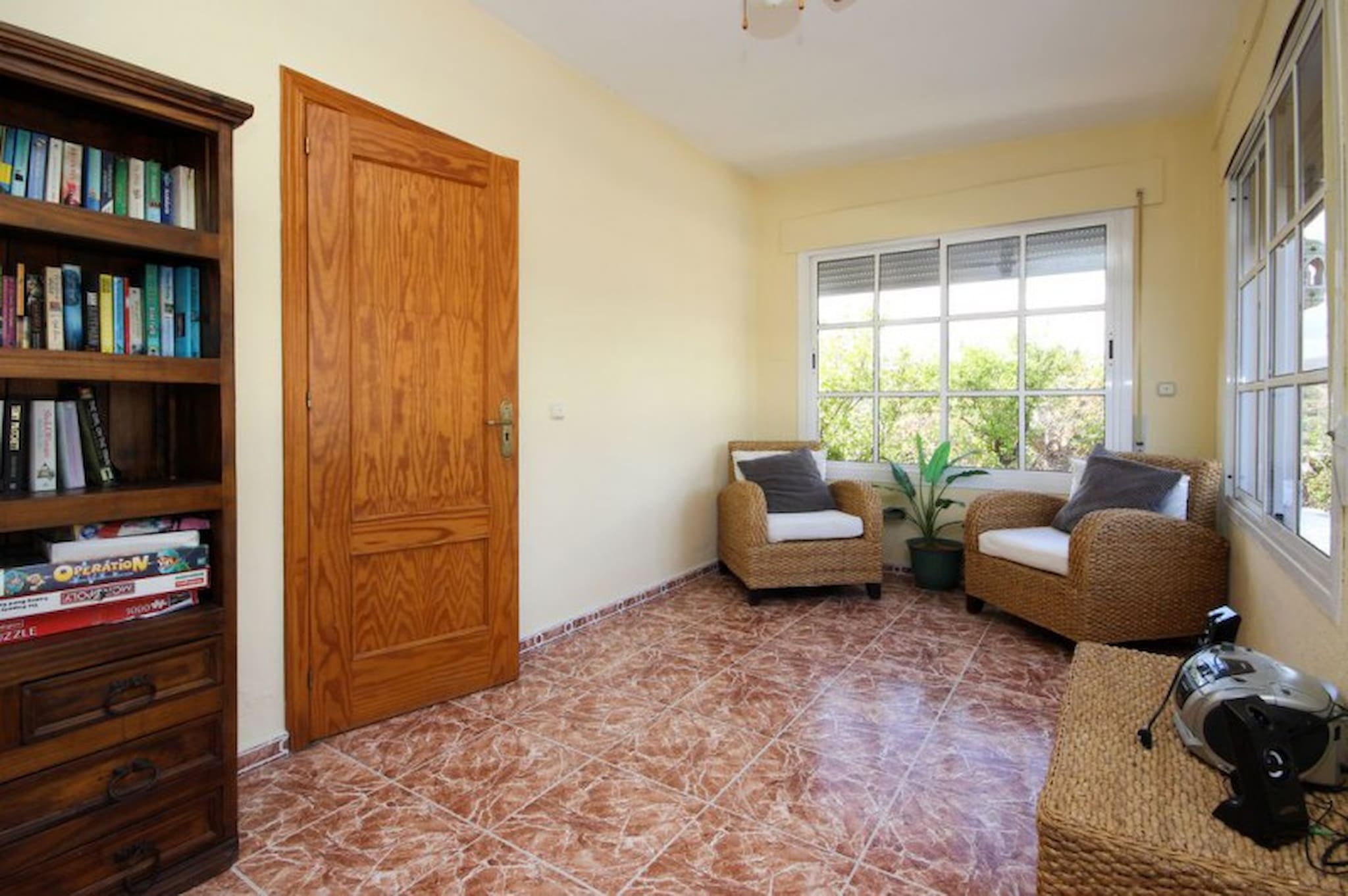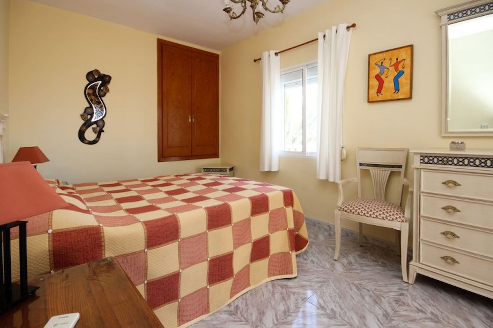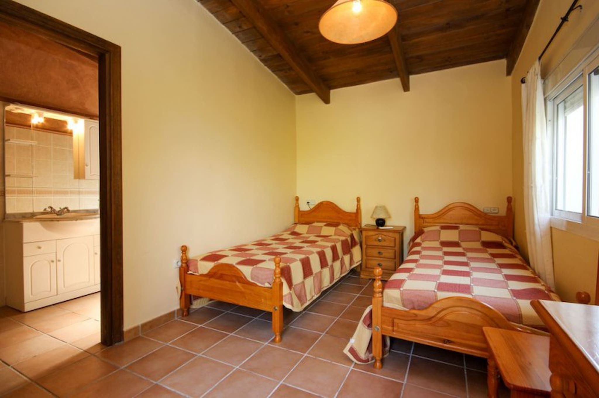 Esta maravillosa villa está distribuida en 2 plantas. La planta baja consta de un amplio salón-comedor con aire acondicionado, chimenea, TV y DVD. Desde el salón se puede acceder a la "sala de sol" que es ideal para disfrutar de las vistas y relajarse. Hay acceso directo a las extensas terrazas. La cocina está totalmente equipada y cuenta con una zona de mesa de desayuno, 2 grandes frigoríficos y una lavadora independiente en el garaje. Hay un pequeño aseo en este nivel. Desde la terraza y por una puerta independiente se encuentra uno de los 4 dormitorios. Este dormitorio está amueblado con camas gemelas, armarios y cuenta con un amplio cuarto de baño en suite con ducha.