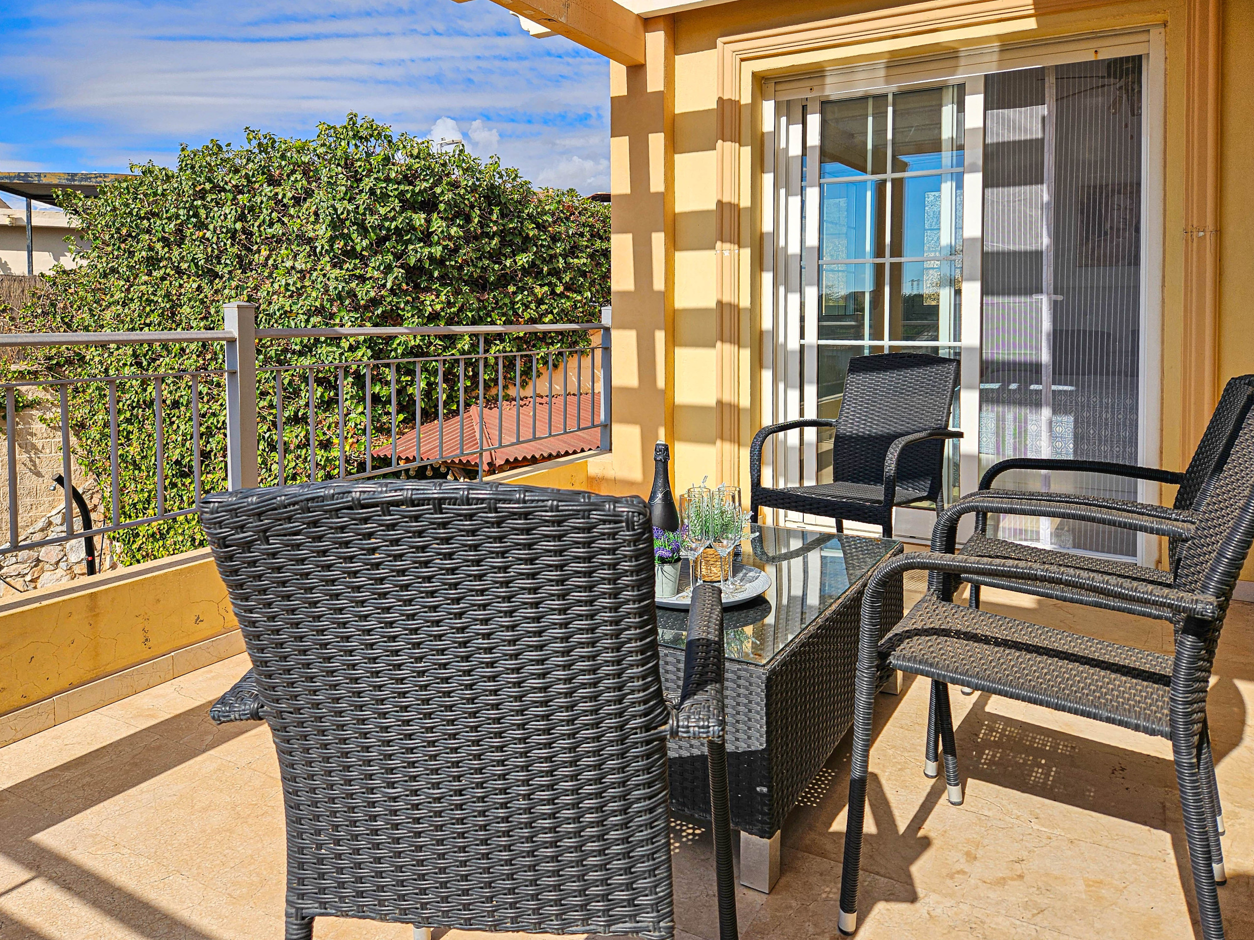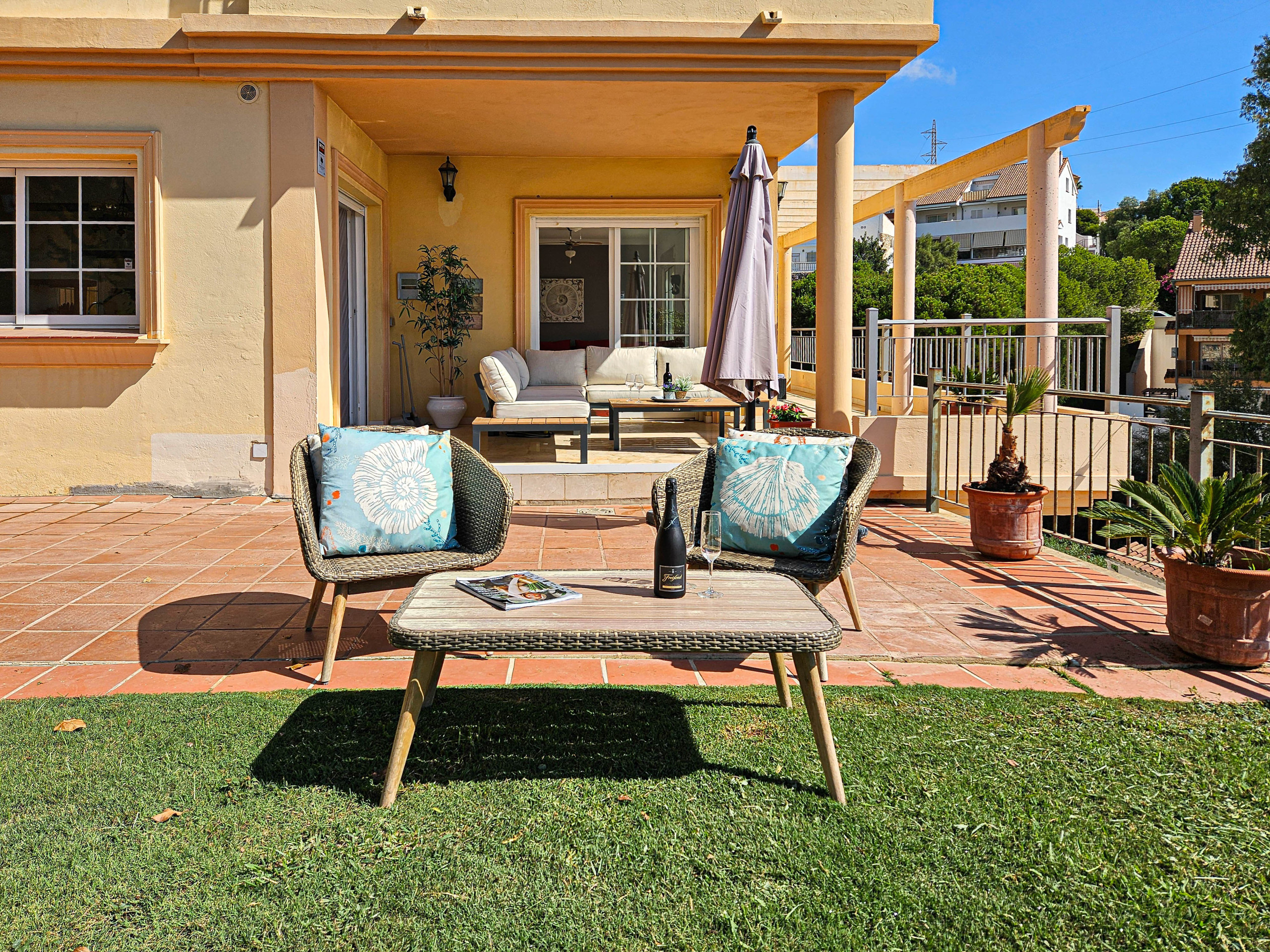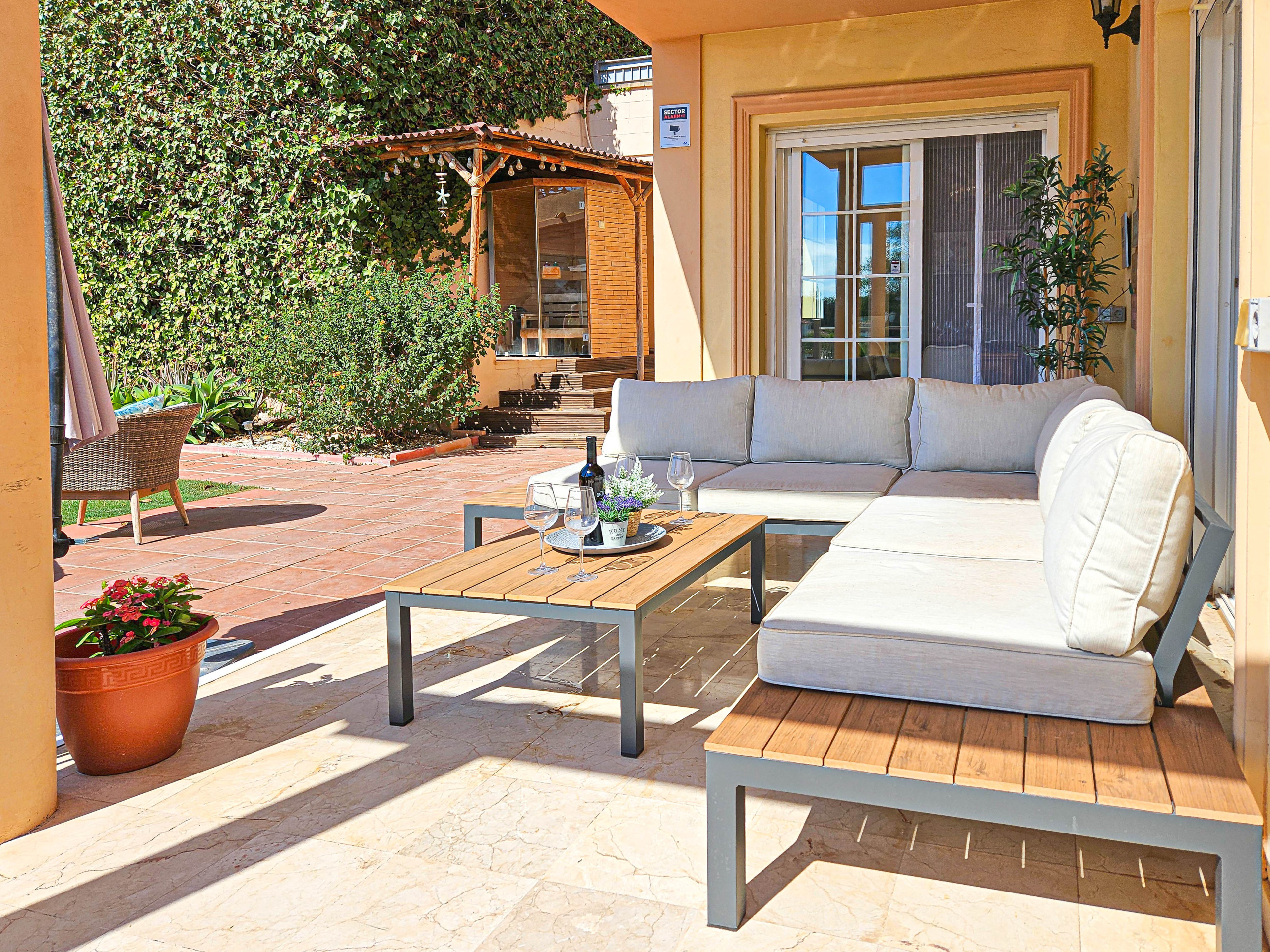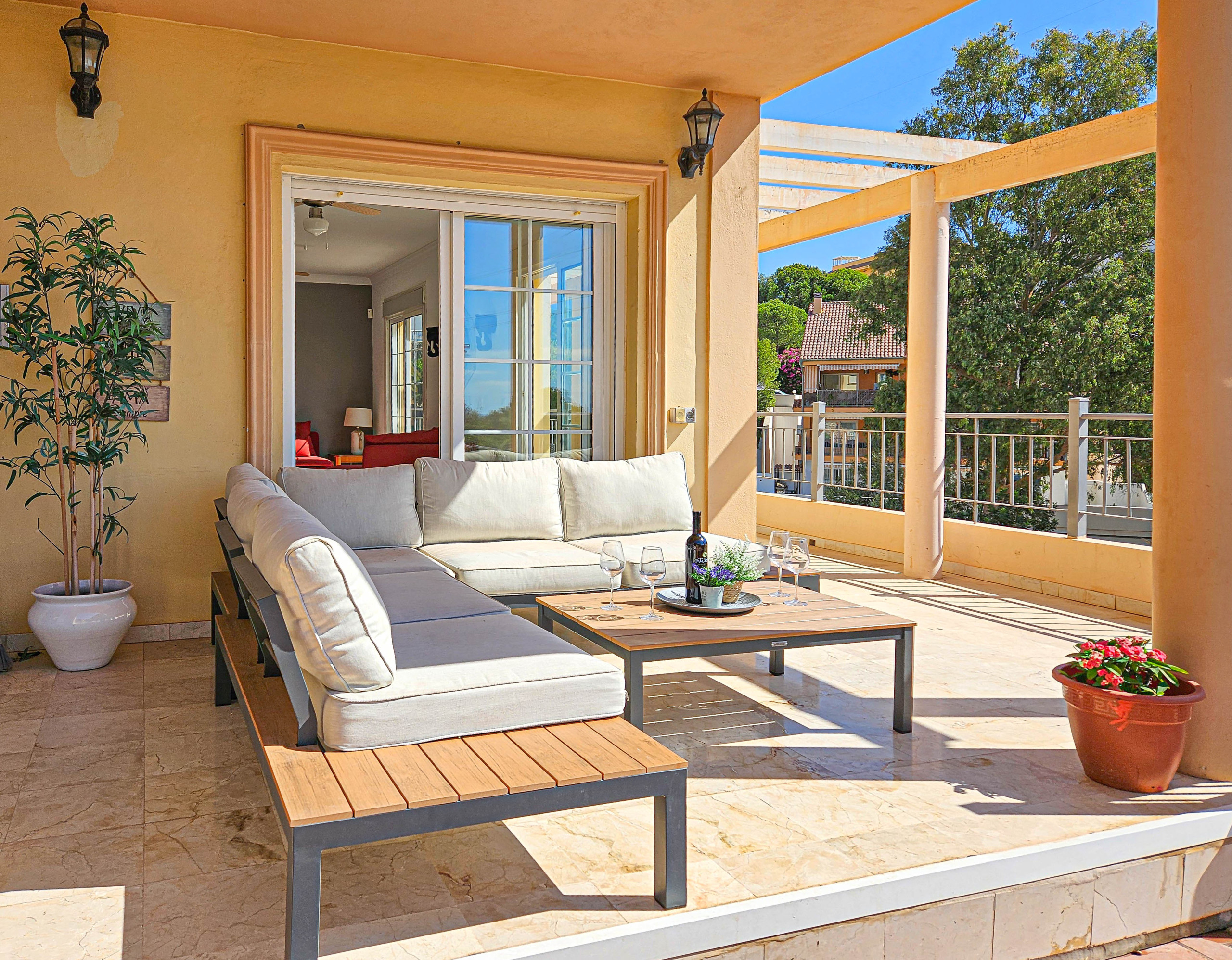 Dispone de jardín, mobiliario jardín, 62 m² de terraza, lavadora, acceso internet (wifi), secador, balcón, calefacción central, aire acondicionado en todo el alojamiento, piscina privada, parking aire libre en mismo edificio, 3 ventiladores, 3 Televisores, tv satelite (Idiomas: Español).