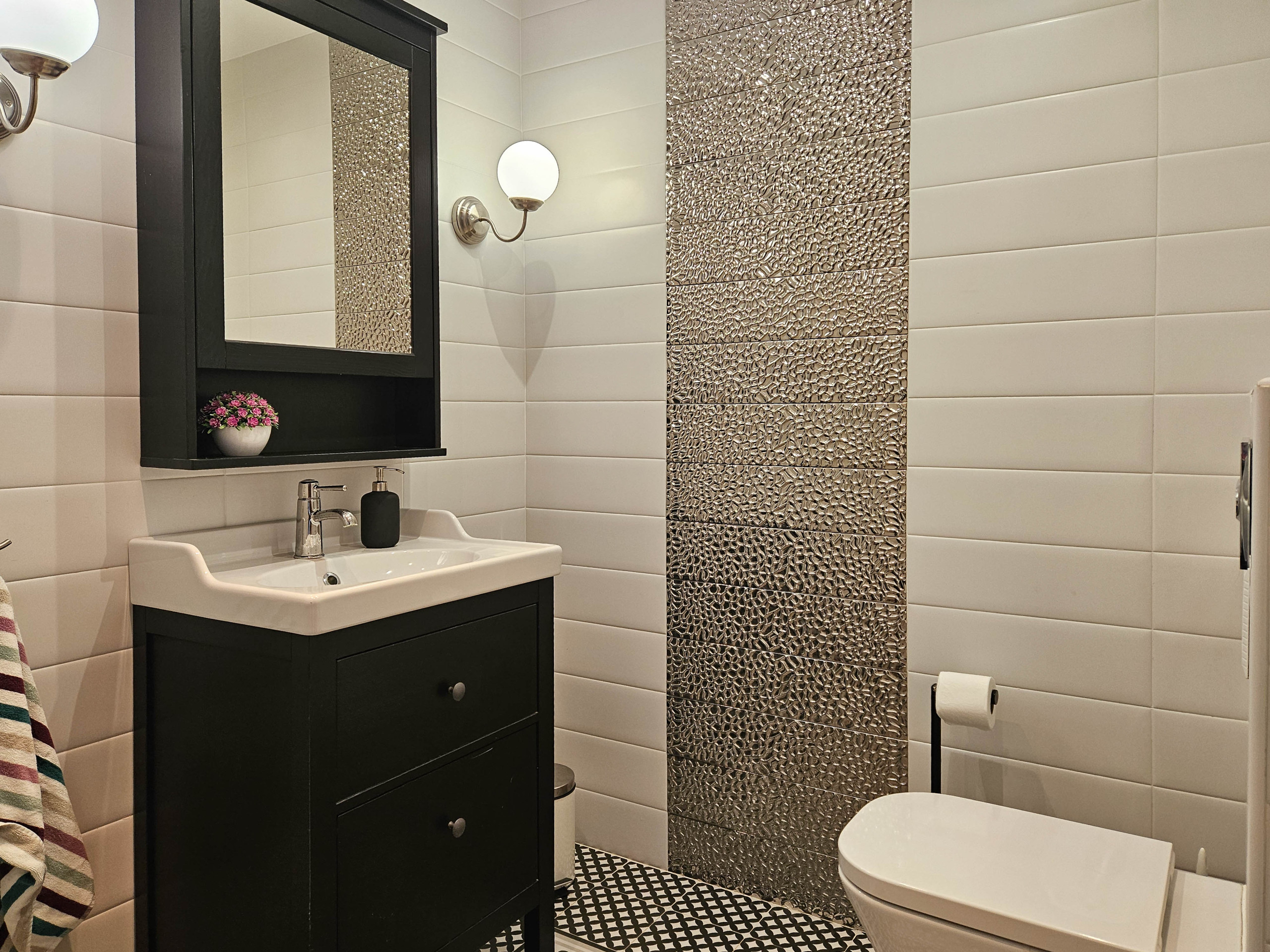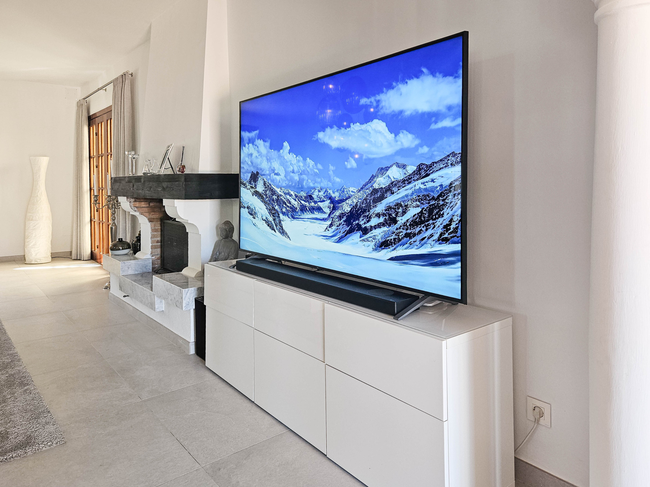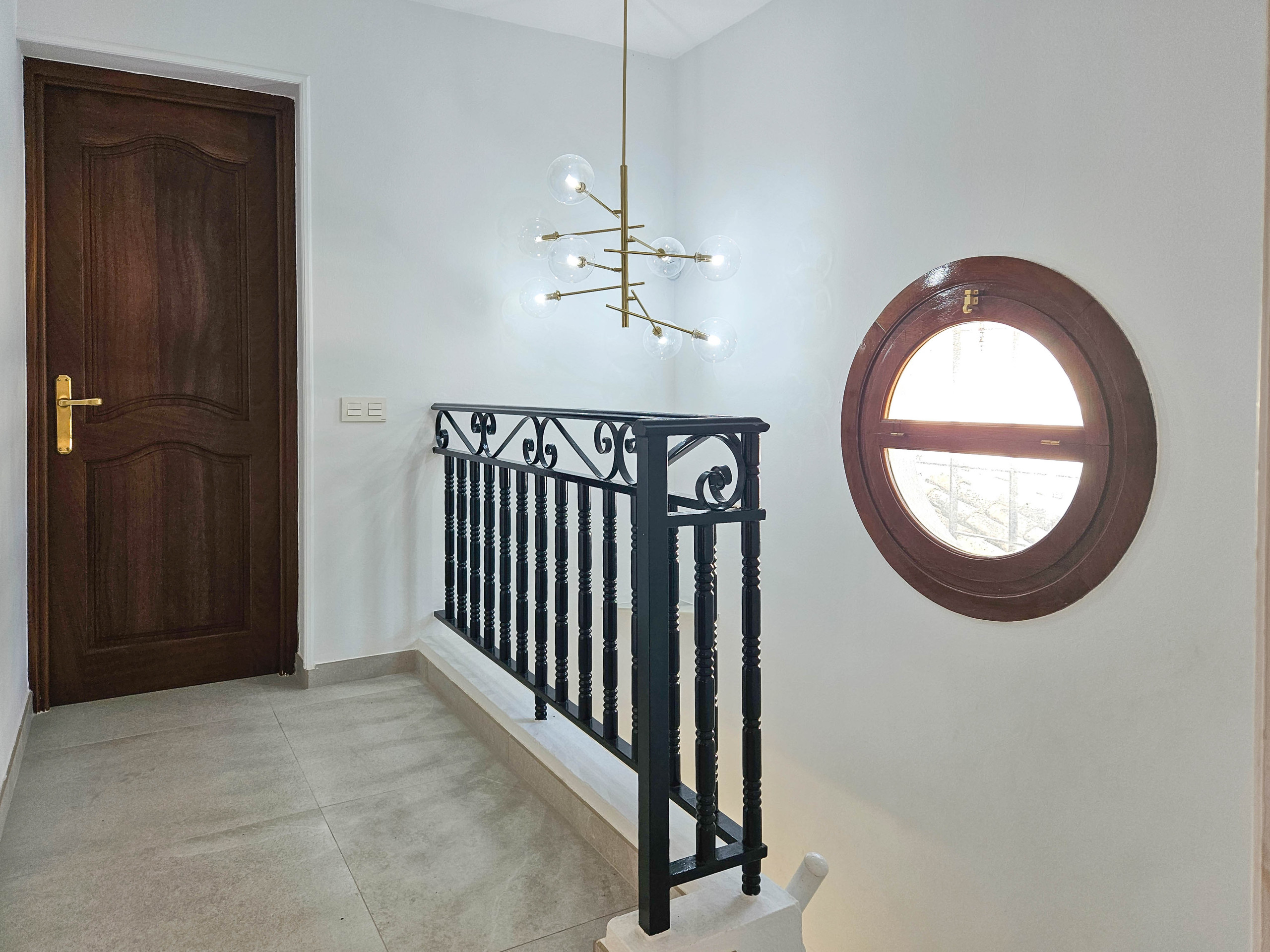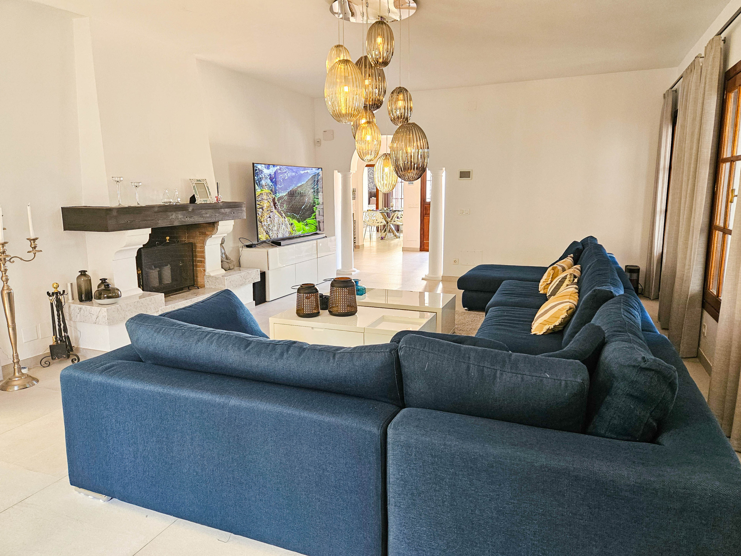 La villa está amueblada con gusto en toda su extensión y está distribuida en dos niveles. El hall de entrada da acceso a la cocina independiente y totalmente equipada, que se beneficia de un frigorífico americano, una isla de cocina con barra de desayuno y taburetes y una sala de servicio independiente, con lavadora y secadora. El espacioso salón de niveles divididos está amueblado con una zona de comedor, que conduce a la sala de estar, donde se puede disfrutar del cómodo sofá en forma de L, un sillón y un televisor inteligente, con canales internacionales. La terraza cubierta, el jardín y la piscina se pueden acceder desde las zonas de salón y comedor.