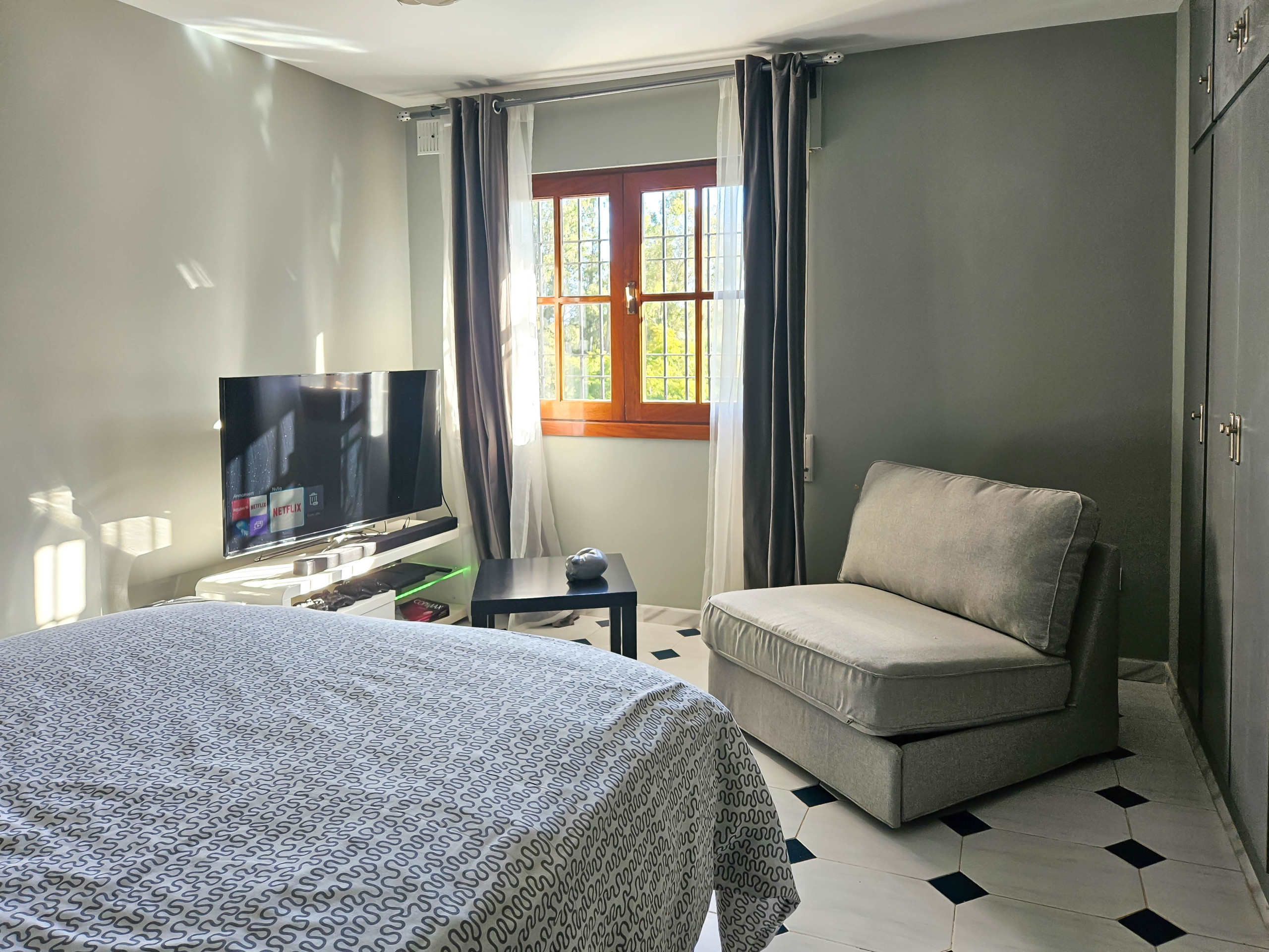 Esta hermosa villa de cuatro dormitorios está ubicada en la zona residencial de Sierrazuela, en Mijas Costa. La propiedad ofrece la serenidad de la vida rural, aunque la playa, el pueblo de Fuengirola y el campo de golf de Mijas están a solo 4 km de distancia. Aunque está ubicada en una zona tranquila, hay restaurantes, bares y tiendas a poco más de 1 km. La villa ofrece una piscina privada, jardín con césped, unidades de aire acondicionado frío y caliente en el salón y dormitorios, una cuna y trona, y WIFI gratuito.