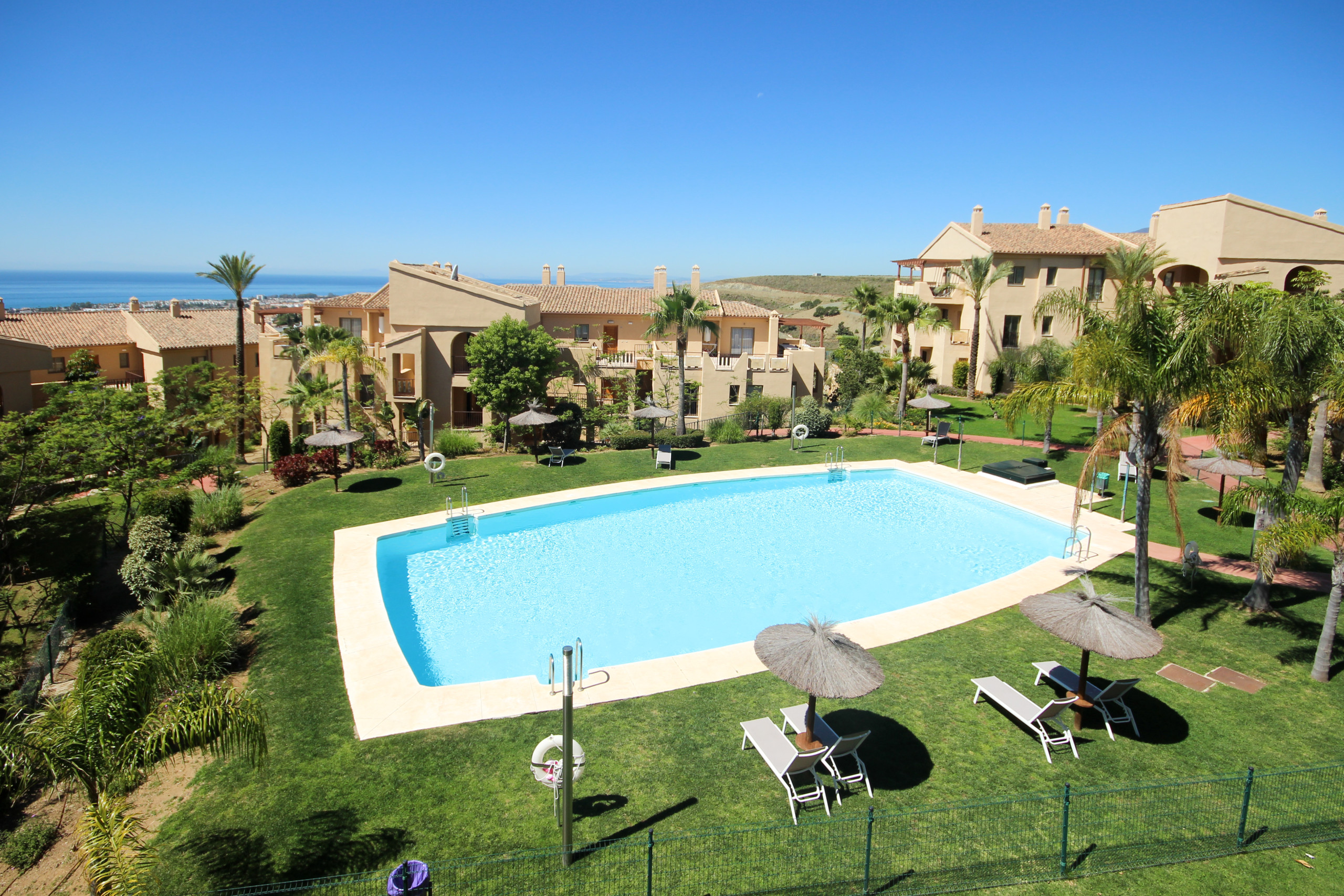 This charming 2 bedroom apartment is situated in the very well maintained complex in El Paraiso Alto, Benahavis. There are parking spaces for the complex just outside and steps lead up to the apartment. The complex offers attractive and spacious communal gardens with a large pool area with a childrens pool. El Paraiso is walking distance to 2 golf courses and is a few minutes drive to the town of San Pedro Alcantara and all its amenities including supermarkets, banks, shops and restaurants. The beach and coast is also just a few minutes drive away. The apartment offers free WIFI and hot & cold Aircon units.