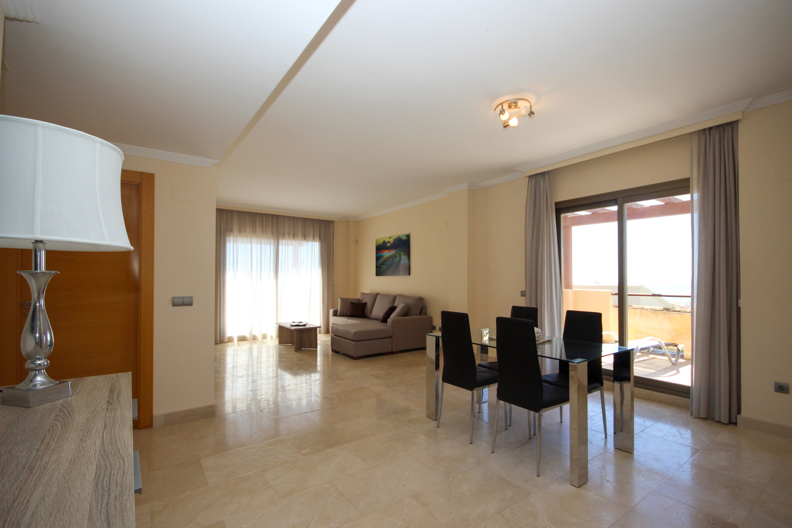This 2 bedroom, spacious top floor apartment has some spectacular views from its 2 terraces. The property is comprised of 2 good sized bedrooms, the master has fitted wardrobes, ensuite master bathroom with shower over bath and double sinks. It also has access to the main terrace which has southwest facing views over Marbella, the Mediterranean, Gibraltar and across to north Africa.