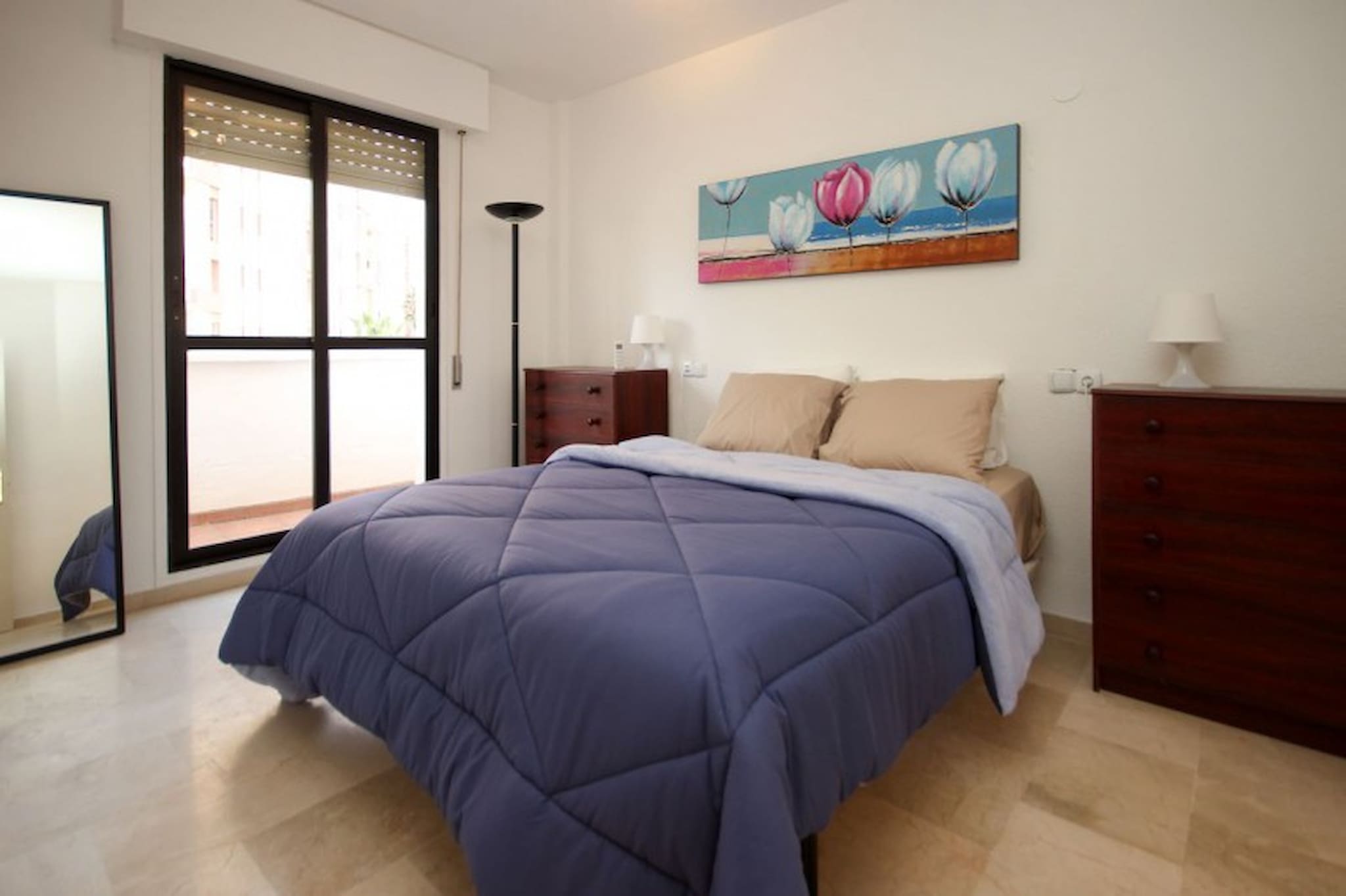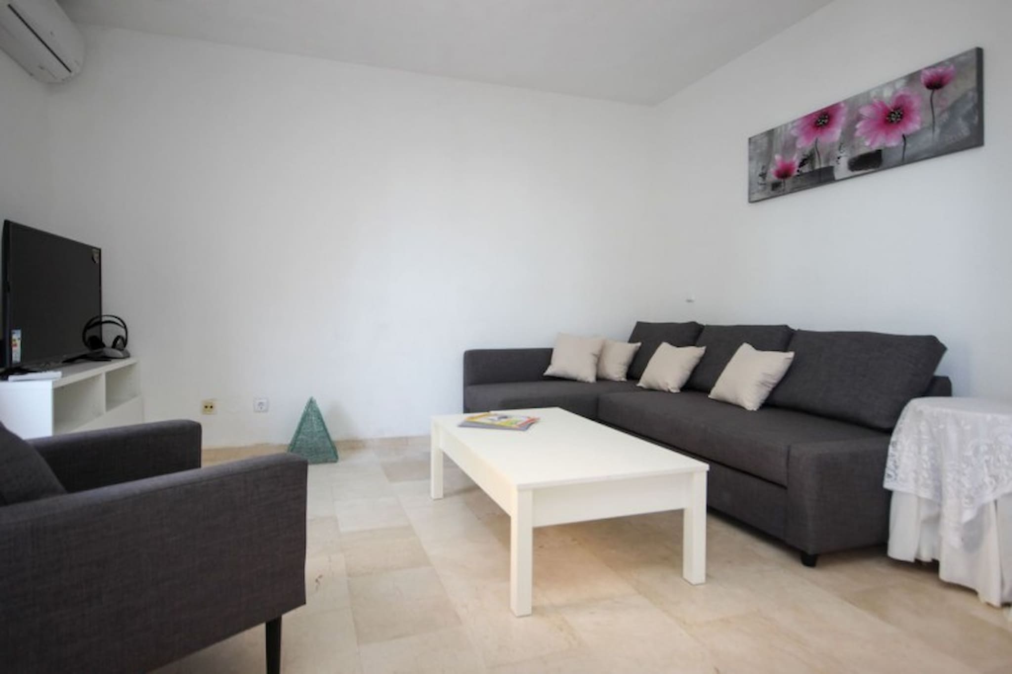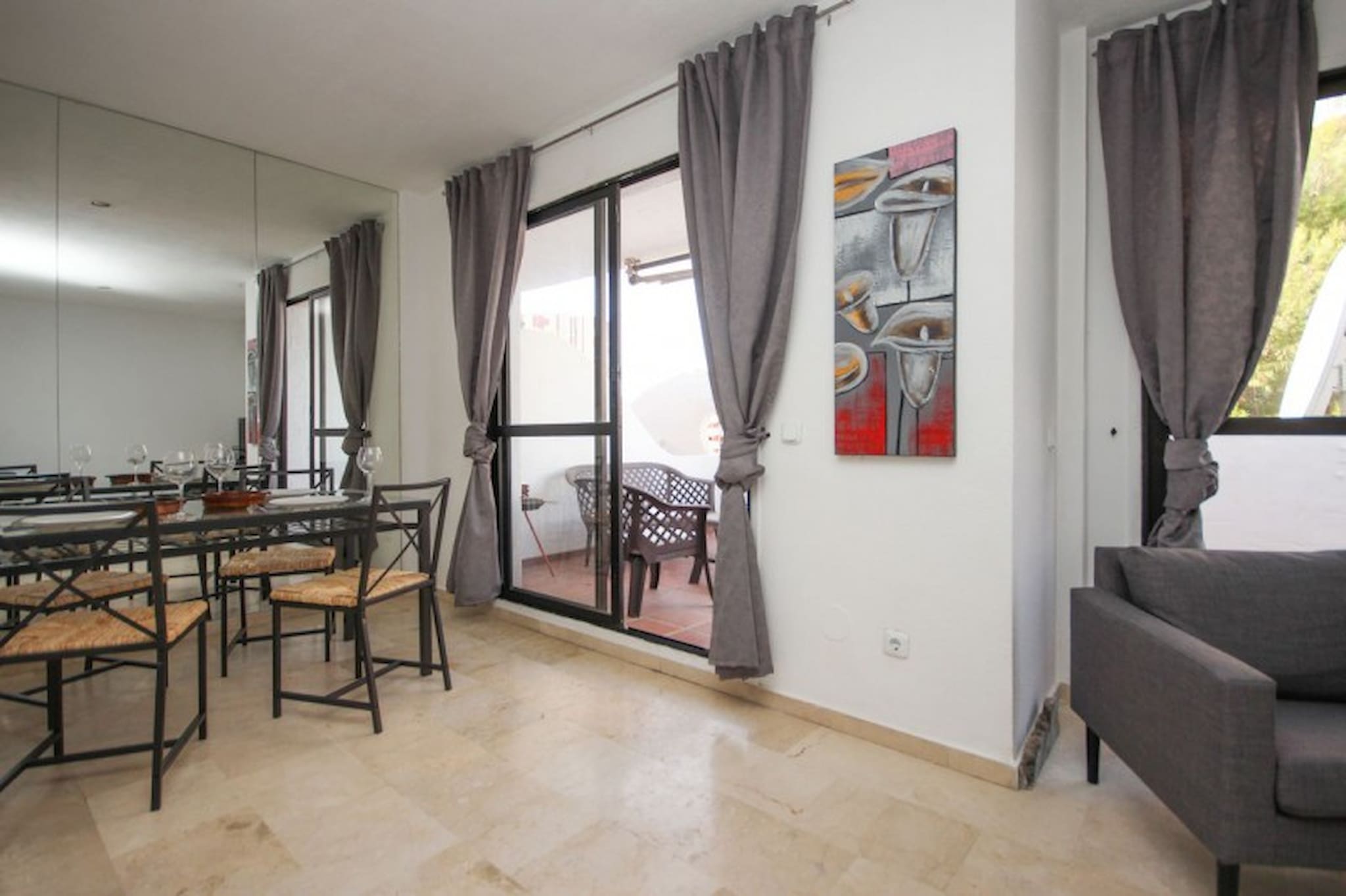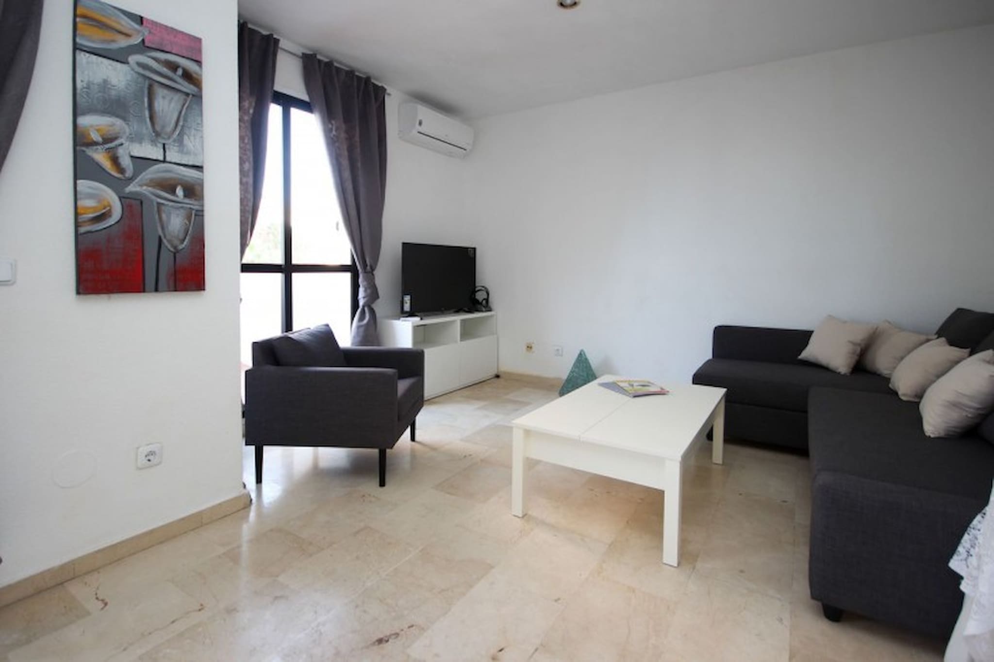 This lovely spacious two bedroom apartment is located in Edificio Dos Mares complex, in between the beach and Marina of Benalmadena. The complex offers a roof terrace communal pool, with stunning views down the coastline and onto the Marina. The apartment sits on the Marina, with an abundance of restaurants, bars and shops to enjoy. The apartment offers a space in the secure underground parking and has free WIFI and hot & cold vented aircon.