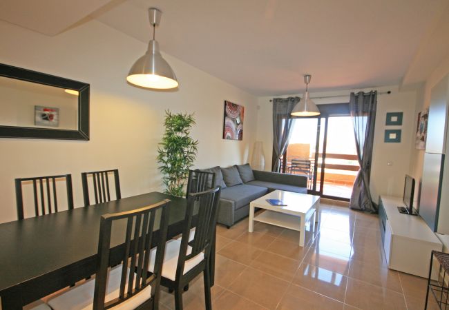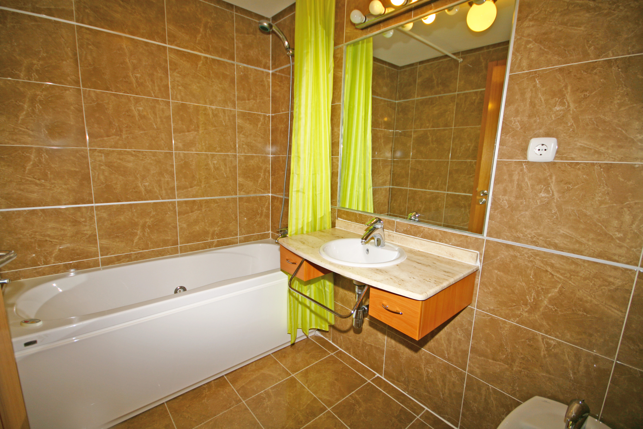 This apartment is arranged over one level and is on the 6th floor with lift access. From the entrance to the apartment, through the hallway is the dining/lounge area. There is dining space for 4 people and an L shaped sofa that converts into a double sofabed, offering sleeping for 4 people. The lounge leads out to the terrace with a small seating area. The separate kitchen is fully equipped and also has access to the terrace. The bedroom offers a double sized bed, fitted wardrobes and an en suite bathroom with a jacuzzi bath with a shower attachment.