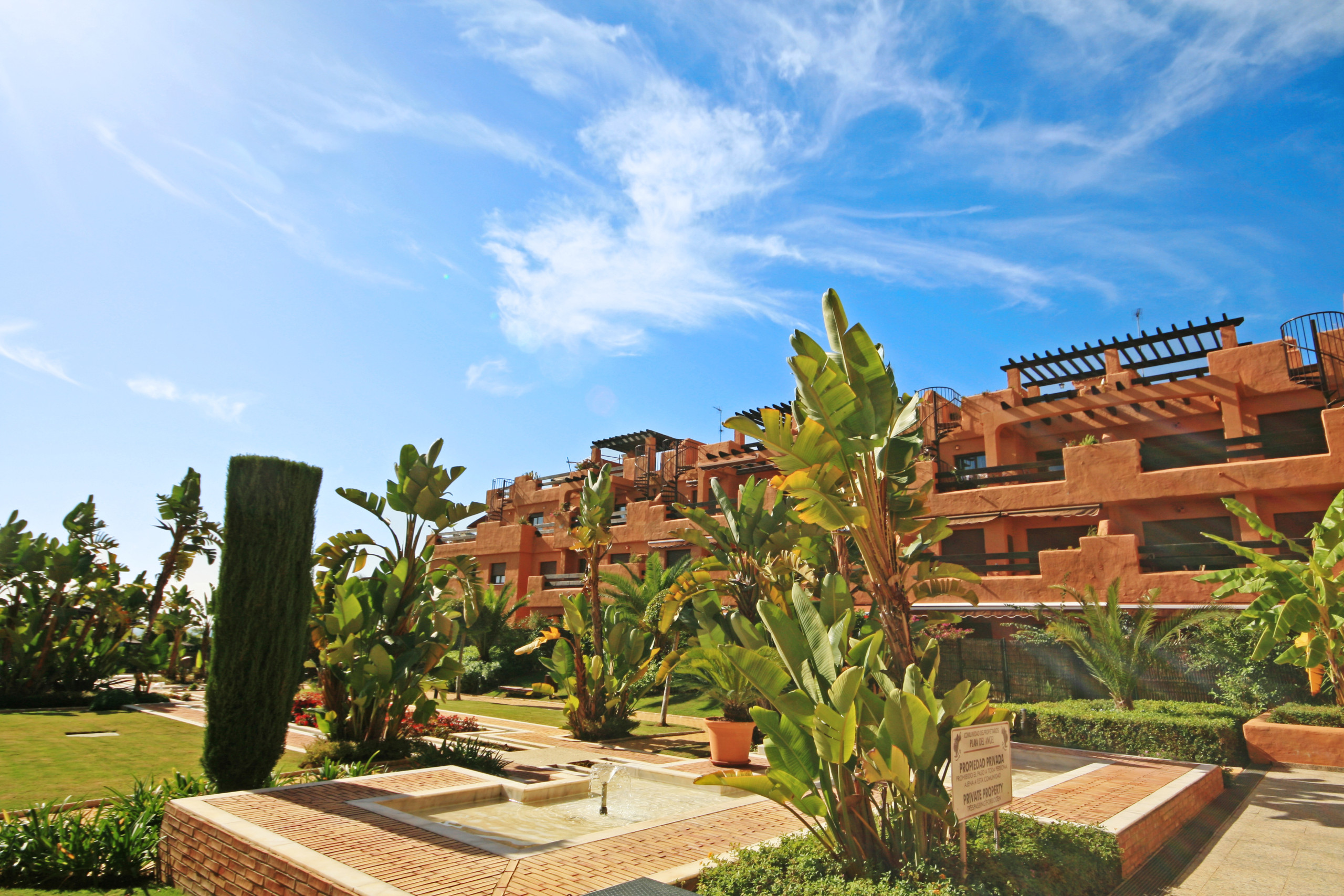 This 2 bedroom penthouse apartment is situated in the beachside complex of Playa del Angel in Estepona, only a few minute's walk from the centre of town. Within the complex there is a large pool area with a snack bar within mature, landscaped gardens with fountains throughout and a children's play area.