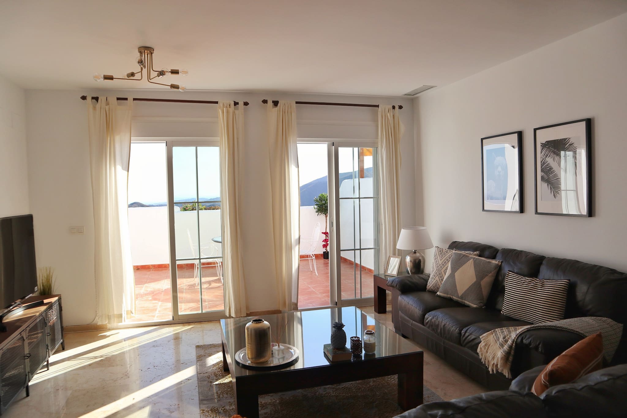 At the foot of the La Concha mountain, surrounded by nature yet only a 10 mins scenic drive to Puerto Banus is the lovely development of Balcones Del Lago. This modern, south west facing 2 bed duplex penthouse offers stunning views across the Istán lake to the Mediterranean and Gibraltar from all of the terraces including the large roof top solarium with its back