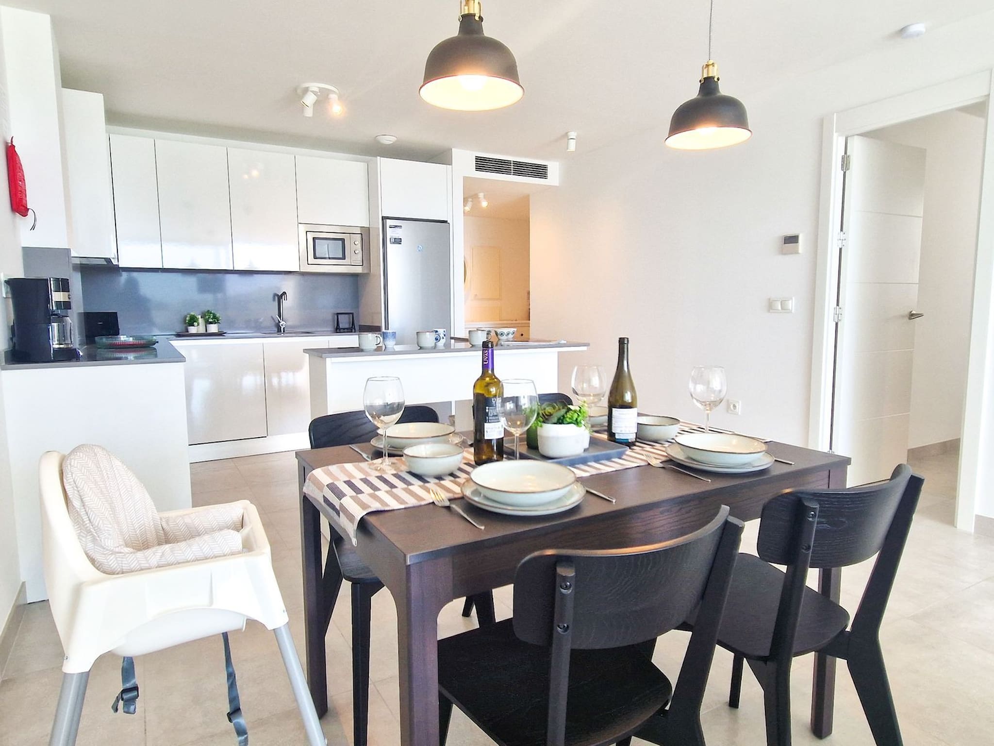 This new, modern three bedroom apartment is located in the beautiful, secure complex of Casa Banderas, La Cala de Mijas. The gated complex has three large communal outdoor pools (with disabled chairlift into the pool), one being located directly in front of the apartment. There is a paddle court, children's play area, indoor Gym and outdoor sport machines. To use the paddle court or gym please book with the concierge. The apartment offers a parking space, hot and cold vented aircon and free WIFI. The complex is 1.5km to the beach and the town's facilities. The closest supermarket is 1km