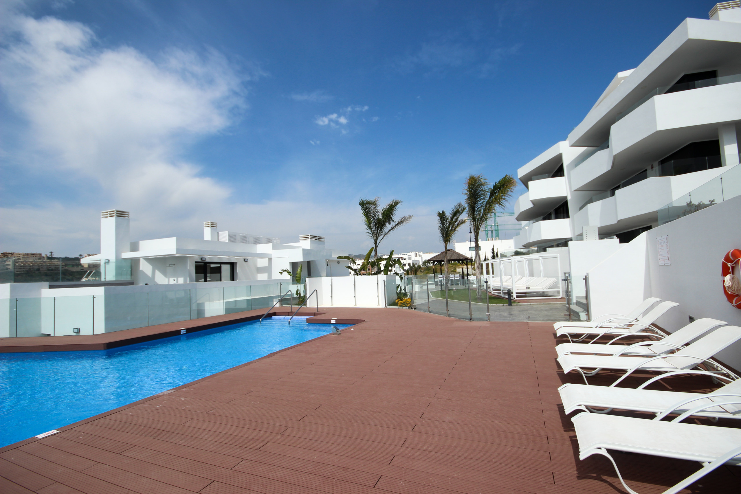 This wonderful 4 bedroom, 1st floor penthouse apartment is located in the fabulous complex of Dream Gardens in La Cala de Mijas, within walking distance of golf, town and beach. The complex has a fabulous pool area with sun loungers, beds and seating. There is also a small gymnasium and indoor pool. There is a supermarket a minutes walk from the complex. The apartment offers a private hot tub, plunge pool and extensive terraces.
