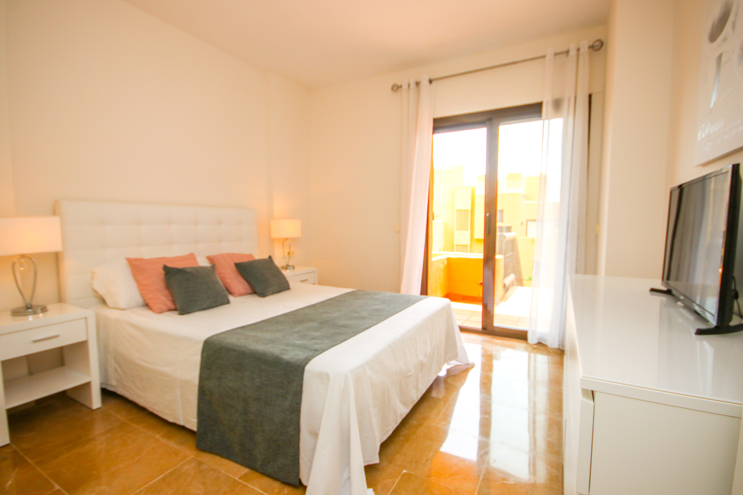 A spacious three bedroom apartment over looks Duquesa Golf Club course, a 3 minute drive to Duquesa port, 5 minute drive to the golf club house and just a few minutes by car from local restaurants, shops, bars and the beach. The property offers free WI-FI and air conditioning hot and cold.
