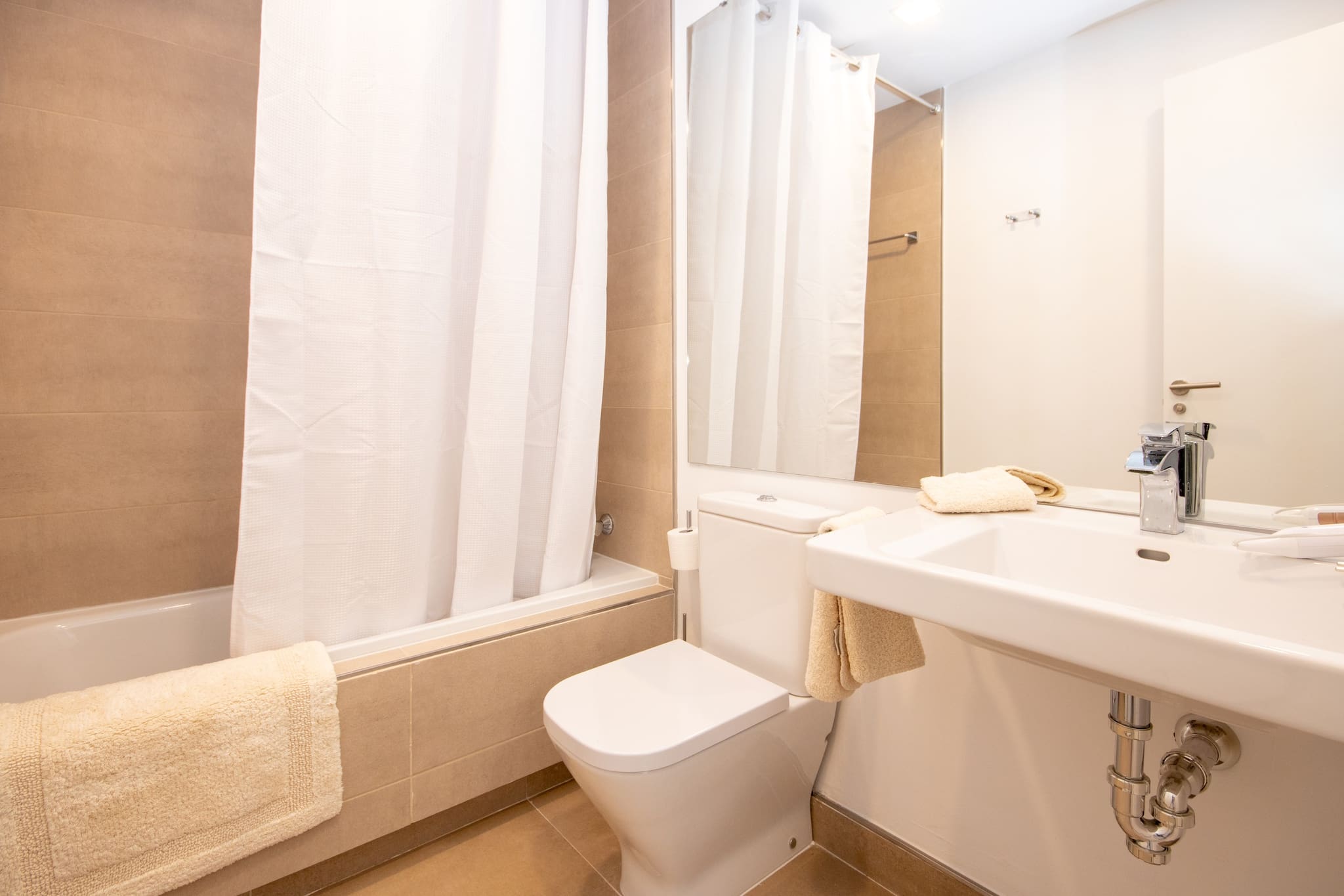 Both bedrooms are fitted with double beds and enjoy built in wardrobes. One bedroom benefits from an en suite bathroom and the other access to the terrace.