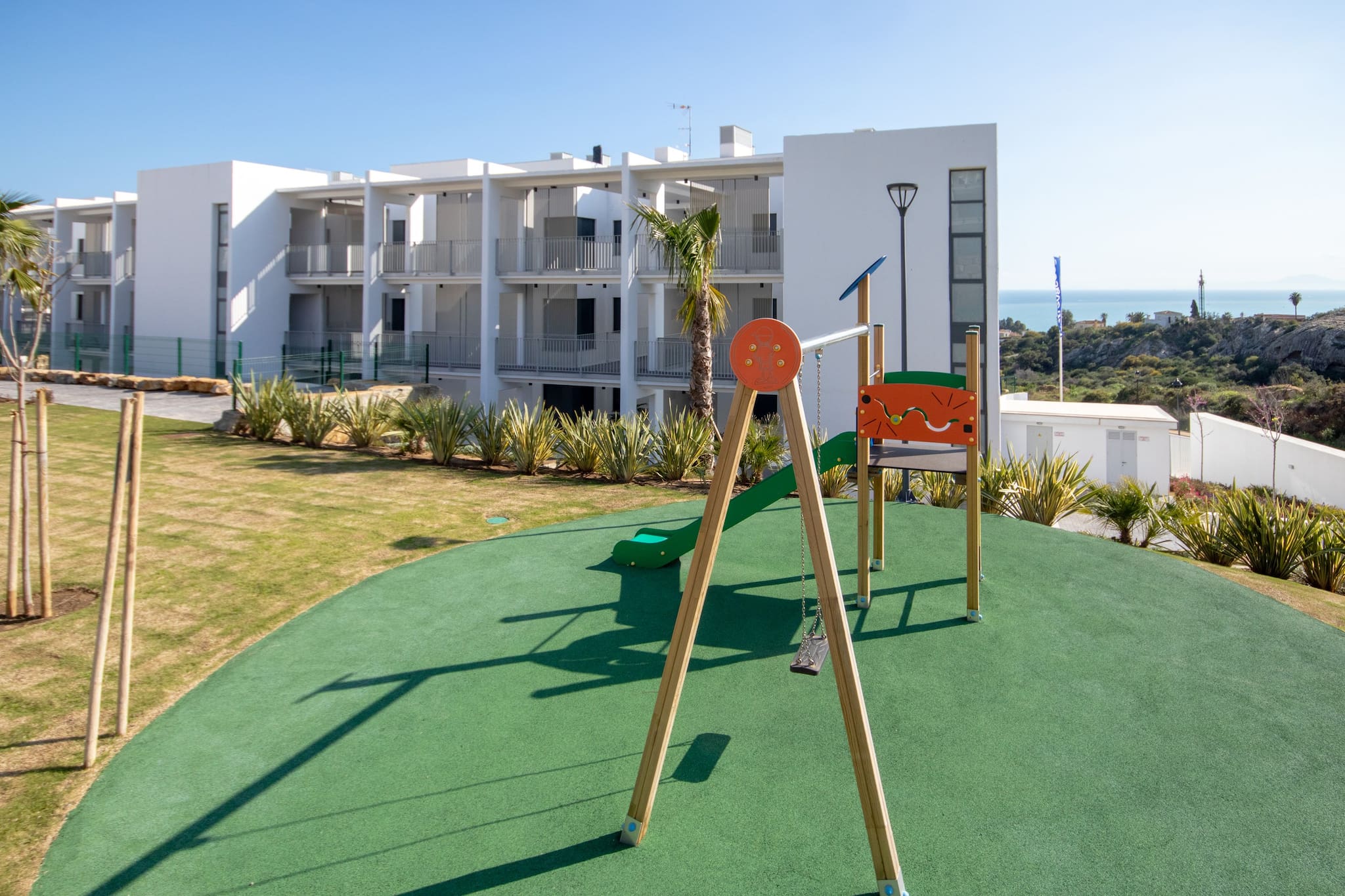 This beautiful, brand new 2 bedroom apartment is located in the western region of the Costa del Sol in Bahia Las Rocas, close to Sotogrande and offers stunning views over the valley down to the Mediterranean Sea and Gibraltar.