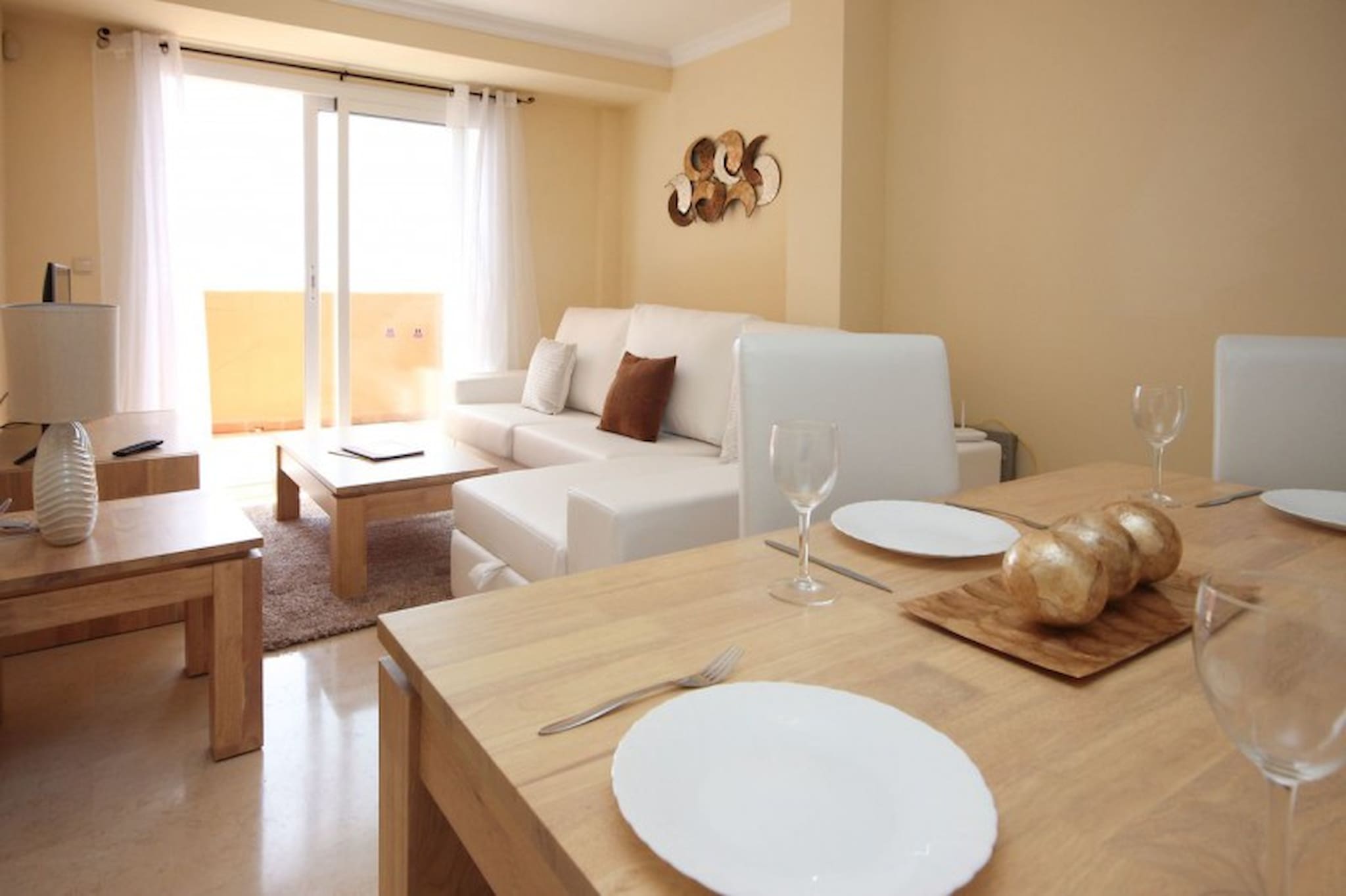 A charming, well-appointed 1 bedroom apartment is situated in Los Lagos de Santa Maria Golf, set in the beautiful surroundings of Elviria, in the heart of this prestigious Golf area. The complex offers grassy communal areas and 4 swimming pools with the larger of the pools offering sun loungers.The stylish and spacious accommodation consists of a large lounge/diner furnished with leather sofa bed, dining table, seating for 4, Fast Wifi and TV with various channels.
