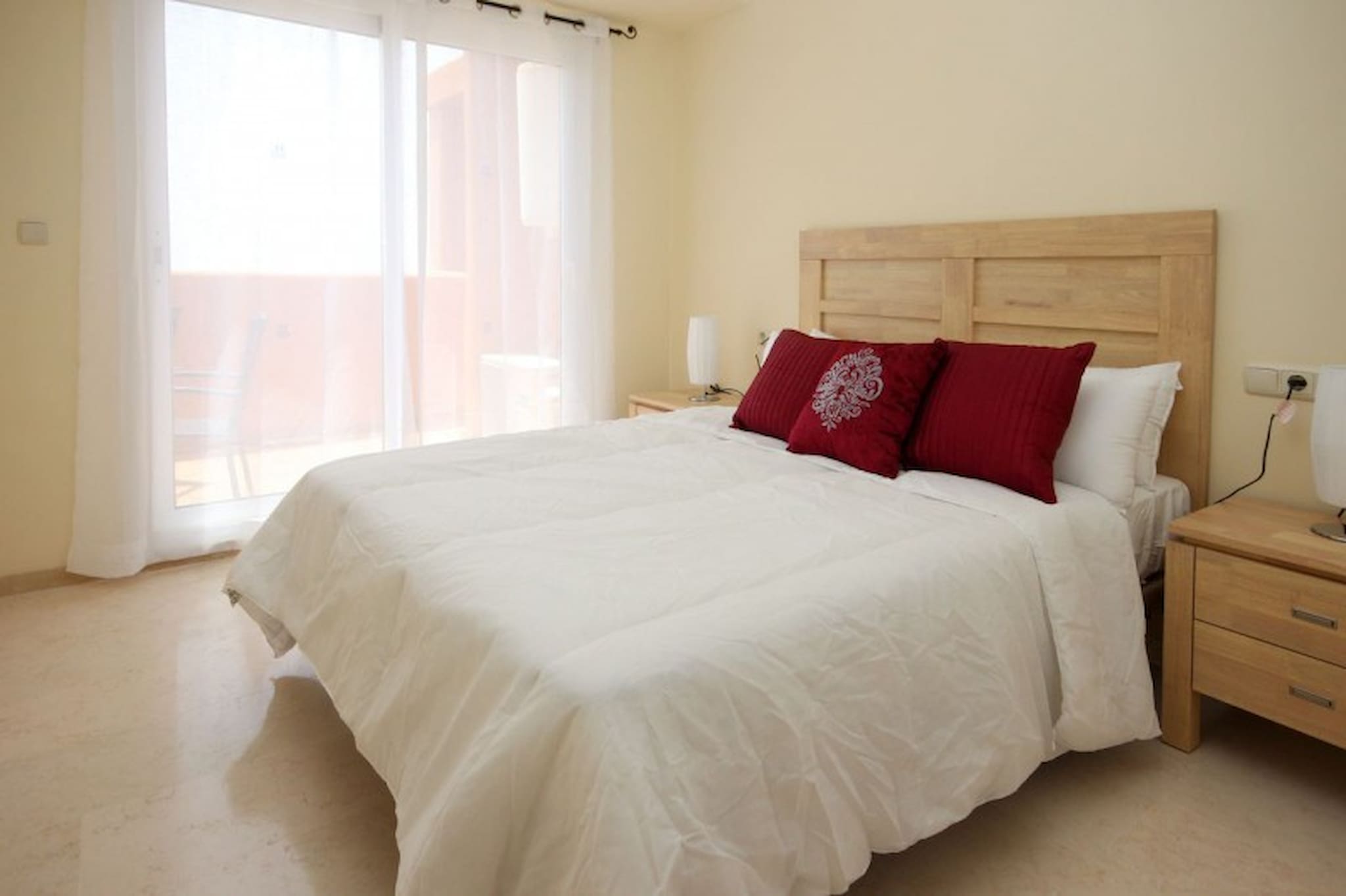 At the end of the hall is the master bedroom with a double bed, bedside cabinets and fitted wardrobes, this bedroom benefits from an ensuite bathroom with a bath and shower. The guest bedroom is furnished with two single beds, a bedside cabinet and fitted wardrobes, this room has the use of the guest bathroom equipped with a bath and shower.