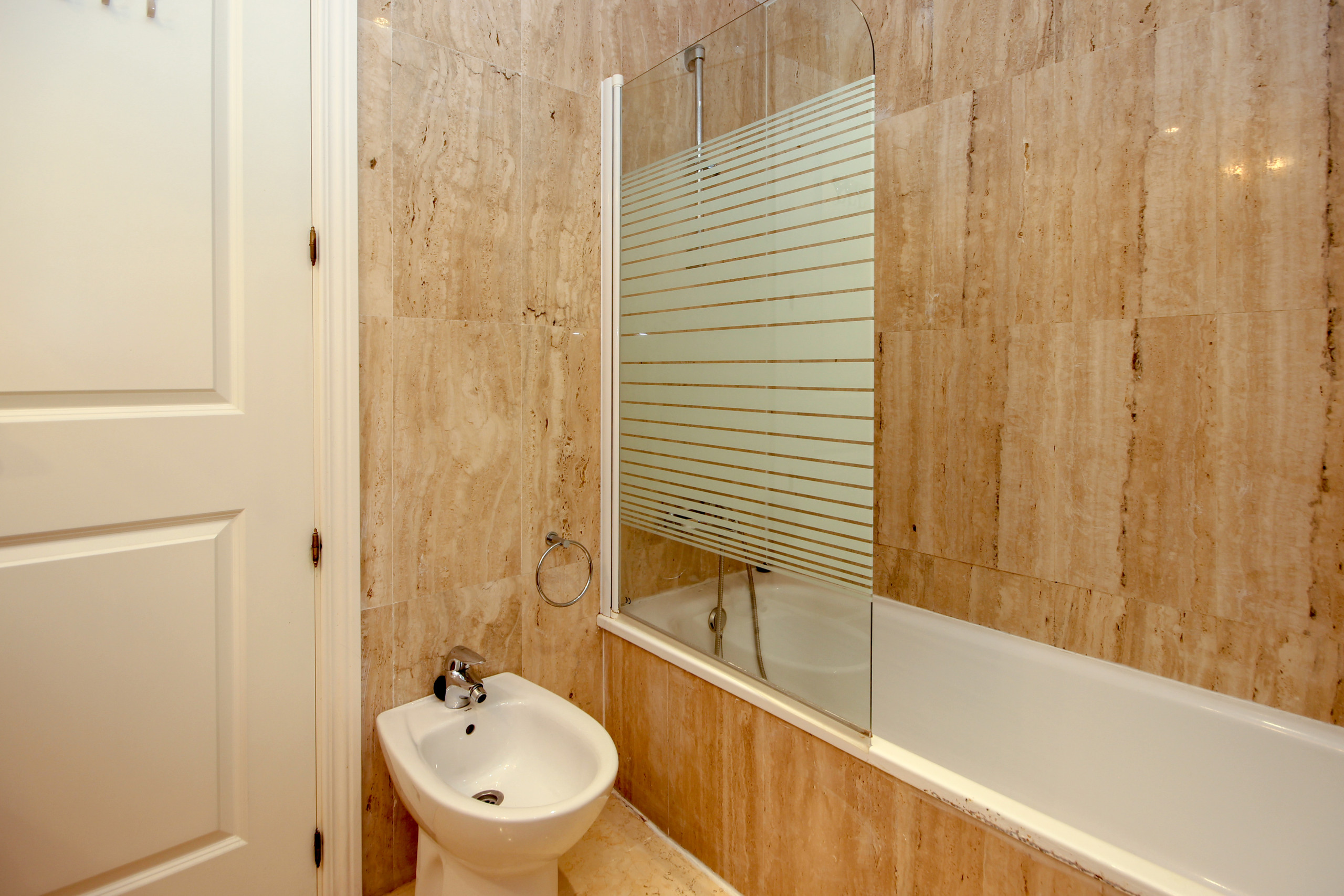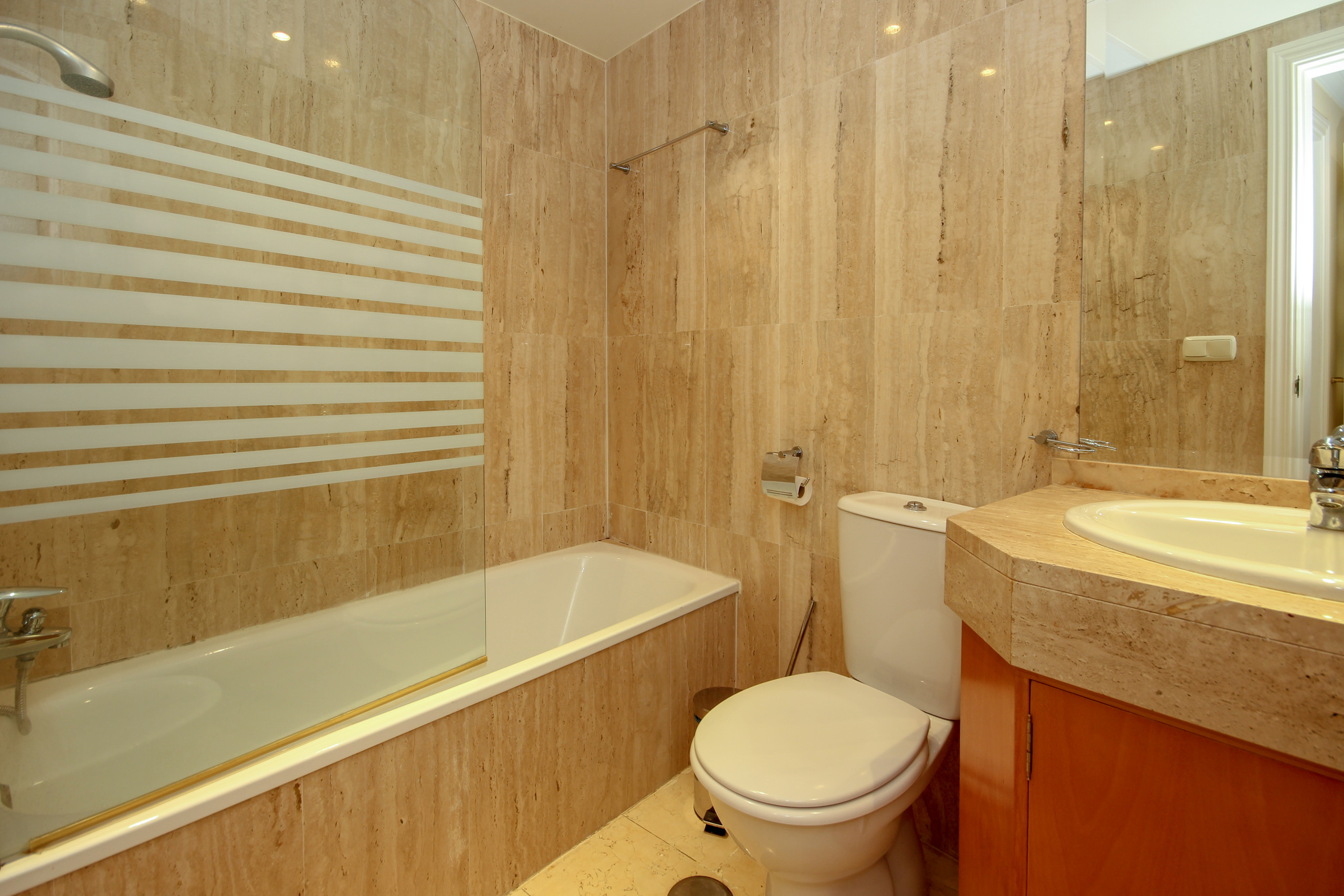 The master bedroom is furnished with a king size bed and benefits from a full en suite bathroom. The second bedroom is fitted with twin beds and a further full guest bathroom. Both bedrooms have built-in wardrobes.
