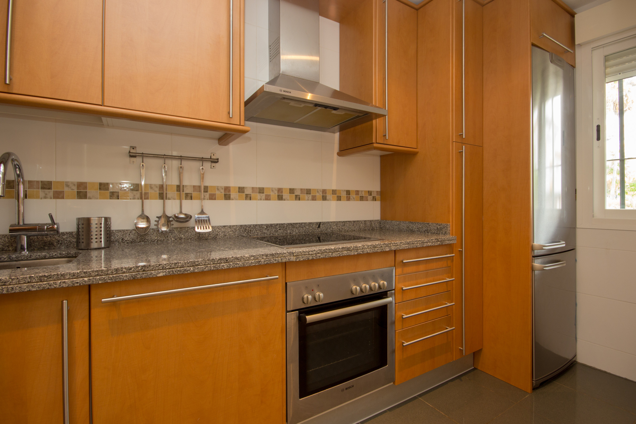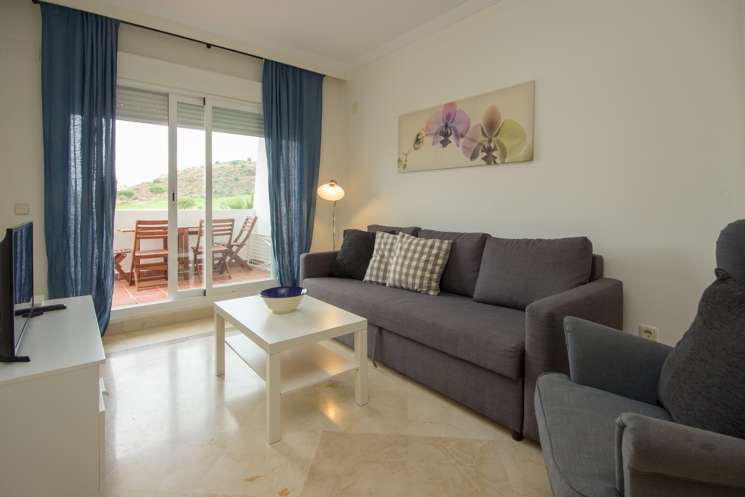 This apartment has been stylishly furnished and accessorised throughout. The covered terrace is furnished with a dining table and chairs to enjoy al fresco dining with wonderful views. The lounge is fitted with a double sofa bed. The galley kitchen is fully fitted.