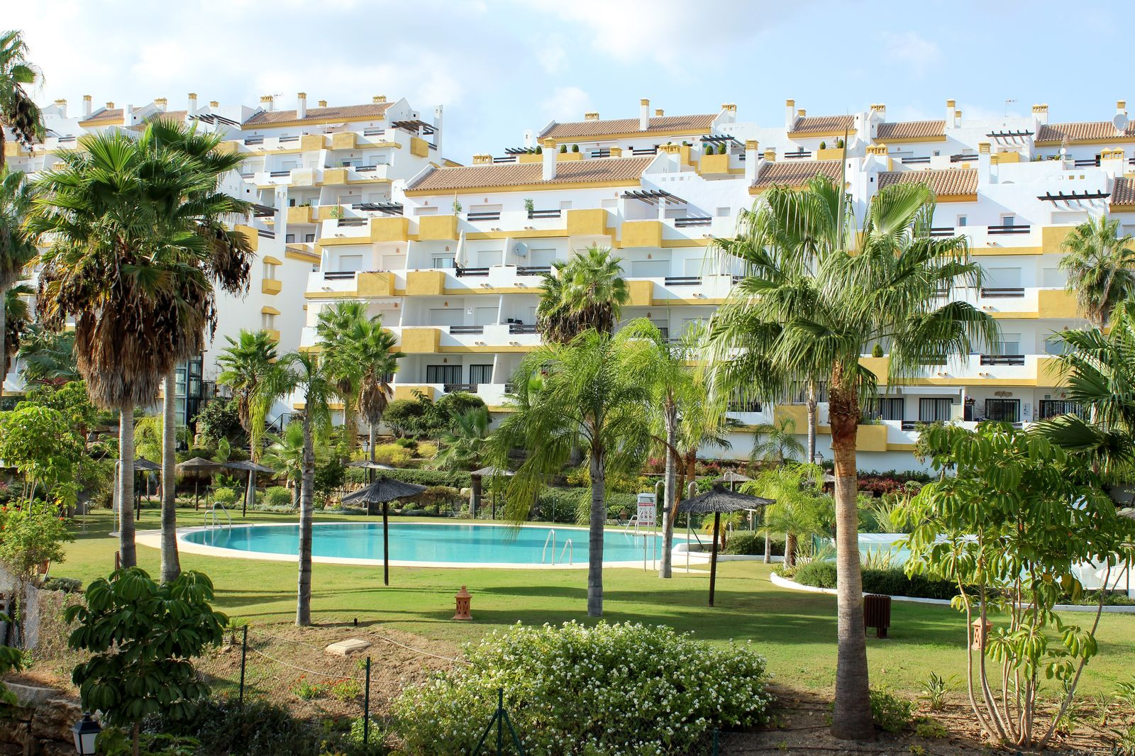 This comfortable 2 bedroom garden apartment is located in the beachside complex of Rocas del Mar, Riviera del Sol. The complex offers gated parking and a lovely pool area with views directly to the sea and beach. The complex is only 300m away from a store and just a few minutes drive to the Miraflores Golf Course, Bowls Club and many shops, supermarkets and bars.